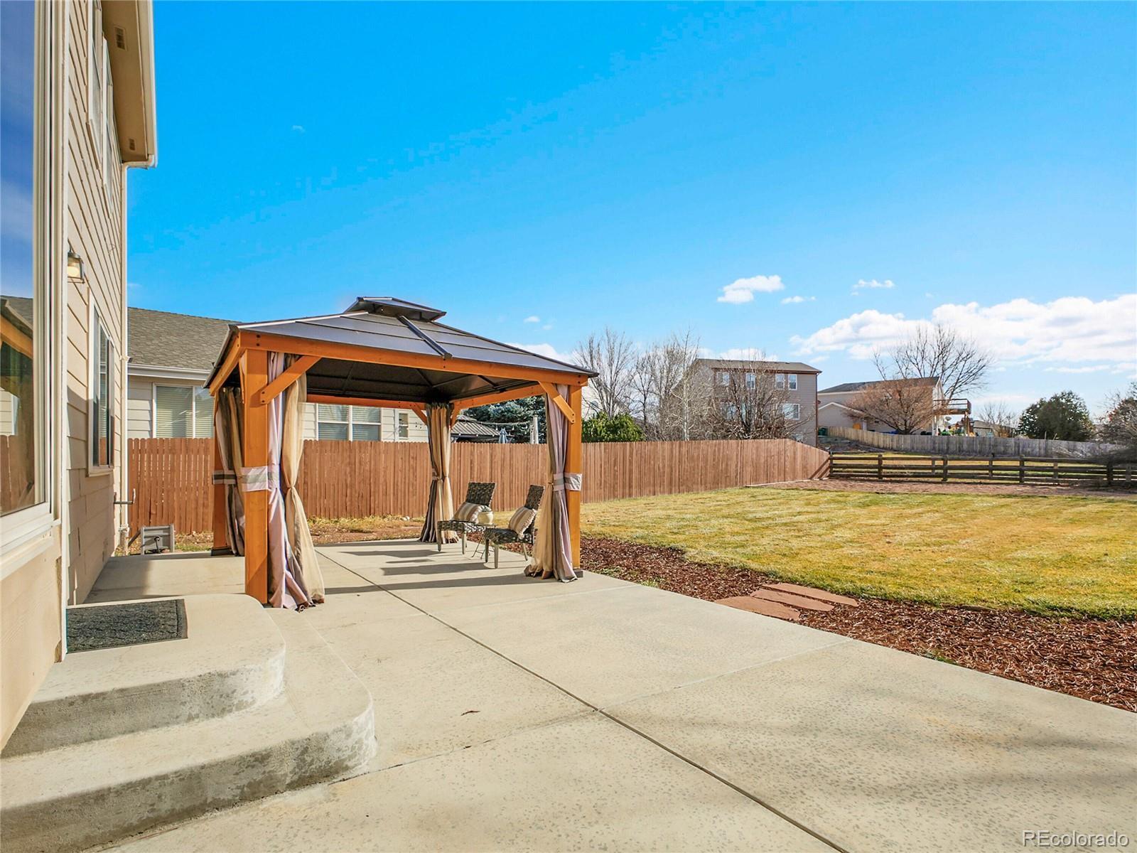 Welcome home to this beautifully maintained residence in Parker, Colorado - located in desirable Douglas County. Offering comfort, functionality, and outdoor living, this home is thoughtfully designed for everyday living and entertaining alike. The spacious main level features an open and inviting layout with abundant natural light. The primary suite is a true retreat, highlighted by French door entry, a generous walk-in closet, and a private five-piece bathroom—perfect for unwinding at the end of the day. Secondary bedrooms are well-sized and conveniently served by a full bathroom. Downstairs, the unfinished basement provides over 600 square feet of clean, versatile flex space, ideal for a future recreation room, home gym, office, or guest suite. The basement also includes a water softener system and ample room for storage. Step outside to enjoy a fully fenced backyard with a large concrete patio and charming gazebo—an ideal setup for outdoor dining, relaxing, or hosting gatherings. The expansive lawn offers space to play, garden, or simply enjoy Colorado’s sunshine. Residents also enjoy access to community parks, playgrounds, trails, sports courts, and a resort-style community pool, making this neighborhood a standout for active lifestyles and outdoor enjoyment. Conveniently located near Downtown Parker, shopping, dining, schools, and major commuter routes, this home offers the perfect blend of suburban tranquility and everyday convenience. A wonderful opportunity to own a move-in ready home in one of Douglas County’s most sought-after communities.