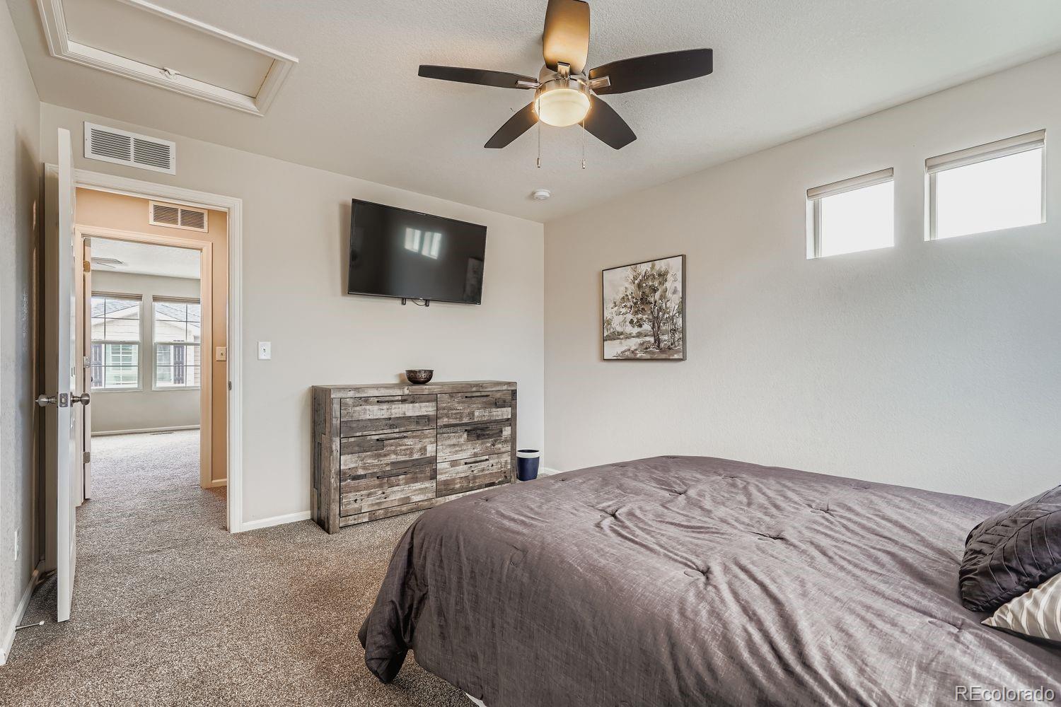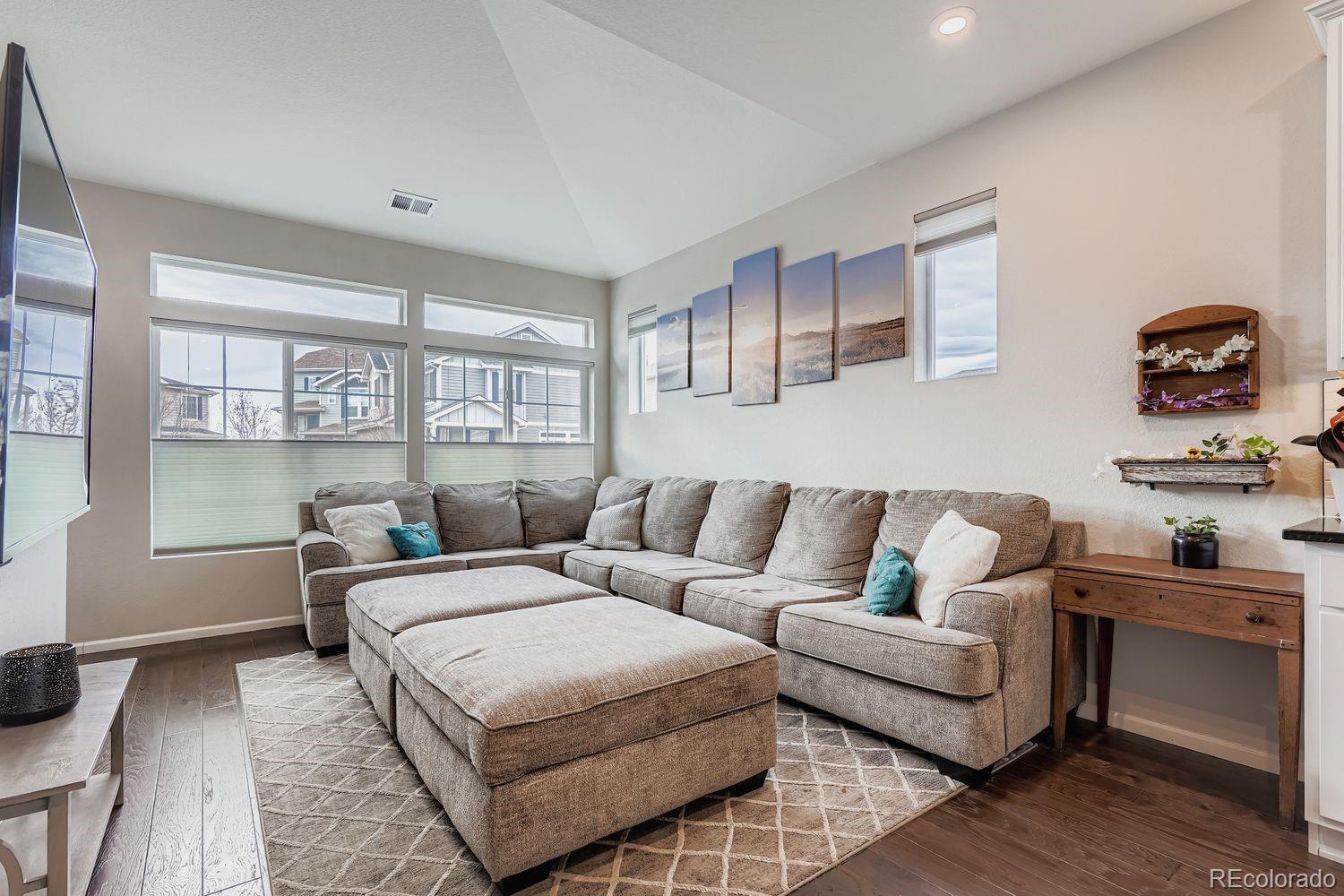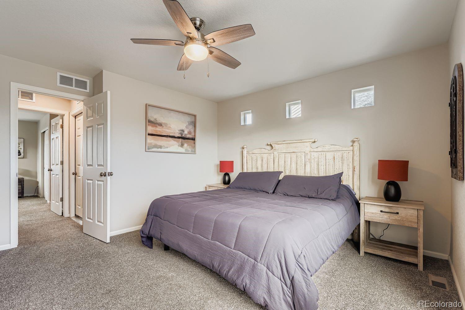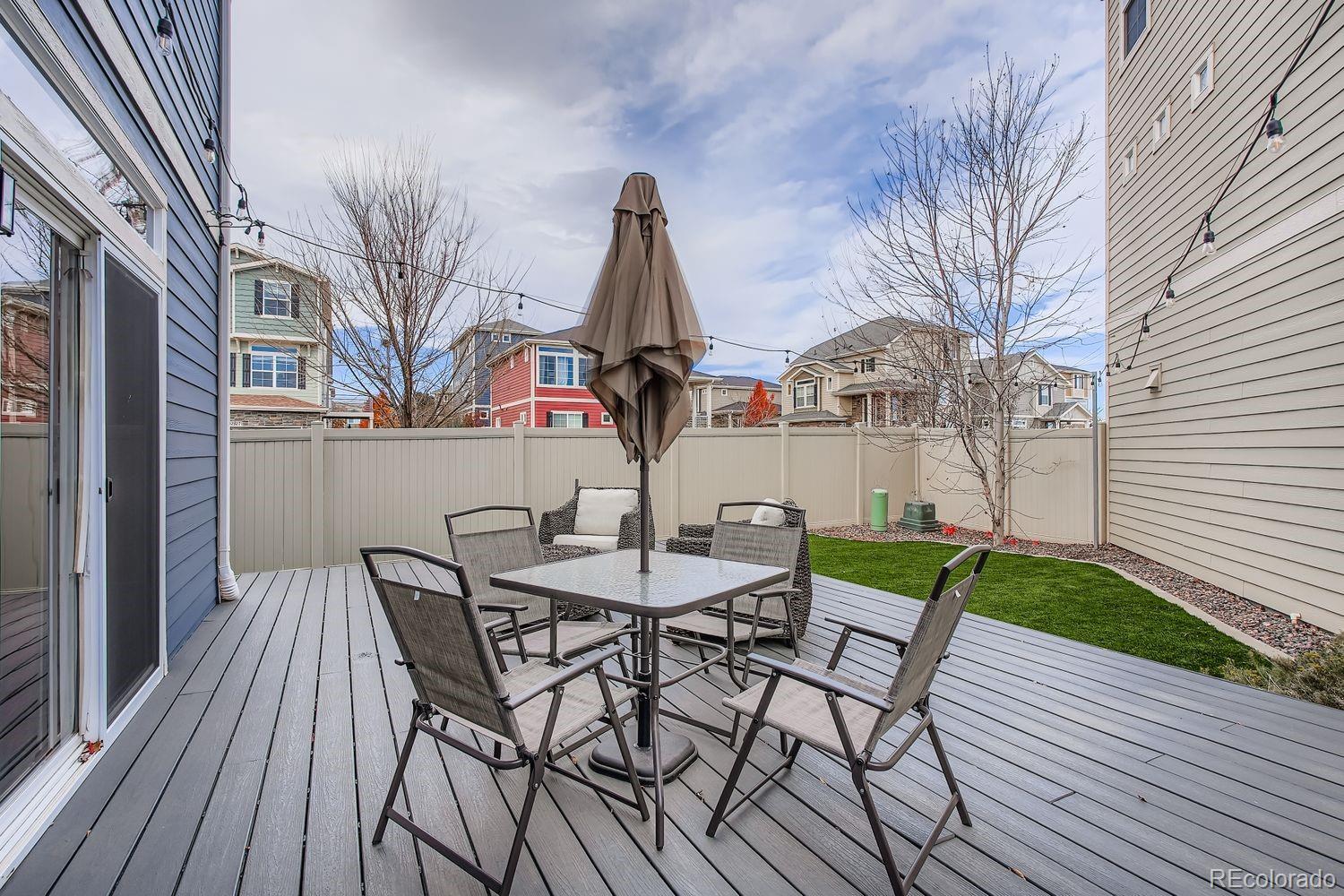 Welcome home to this beautiful, turnkey 2 bedroom, 2.5-bathroom home in Thornton. Located at the entrance to a quiet cul-de-sac in the Villages at Riverdale, this home has been meticulously maintained and is ready for you to make it your own. Featuring granite countertops, newer Range/Oven, Refrigerator, Dishwasher with an island sink with seating, you'll be right at home. The HOA takes care of maintenance of areas outside the enclosed back yard, where you'll find a spacious deck with plenty of room for entertaining or relaxing. The back yard is complete with a synthetic lawn, meaning no mowing! With up/down adjustable blinds you'll be able to let in as much or as little light as you'd like in the living room and in the upstairs bedrooms... Both of which have their own private bathroom! The 2-car attached garage is roomy and boasts plenty of storage overhead as well. Close to parks, walking trails, shopping, and with easy access to 470, I-25, I-76 and Hwy 85, you're close to everything, but away from it all. The home has 3 flat screen televisions (1 in the living room, and each bedroom) which will stay with the home, and all furnishings are negotiable as well.