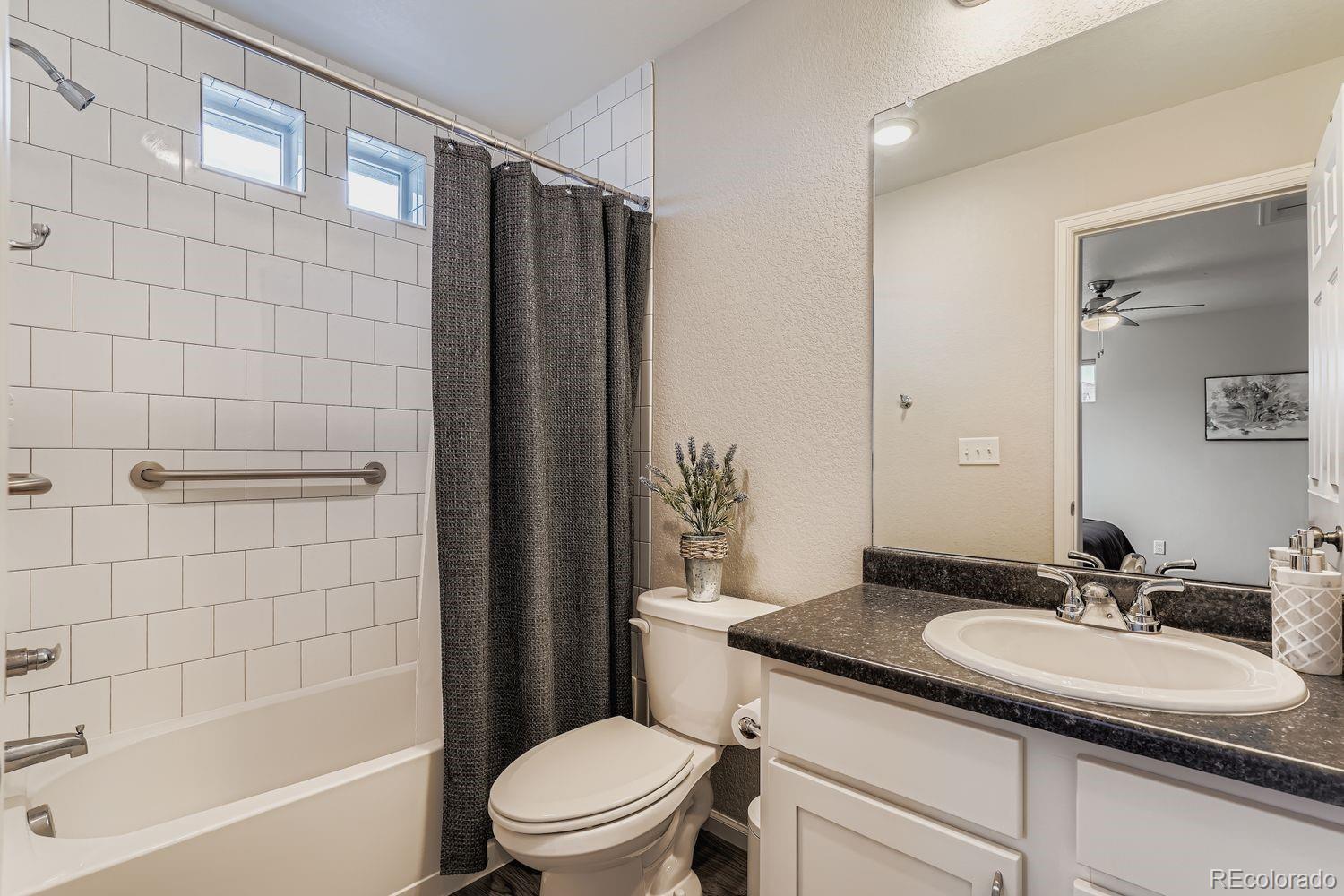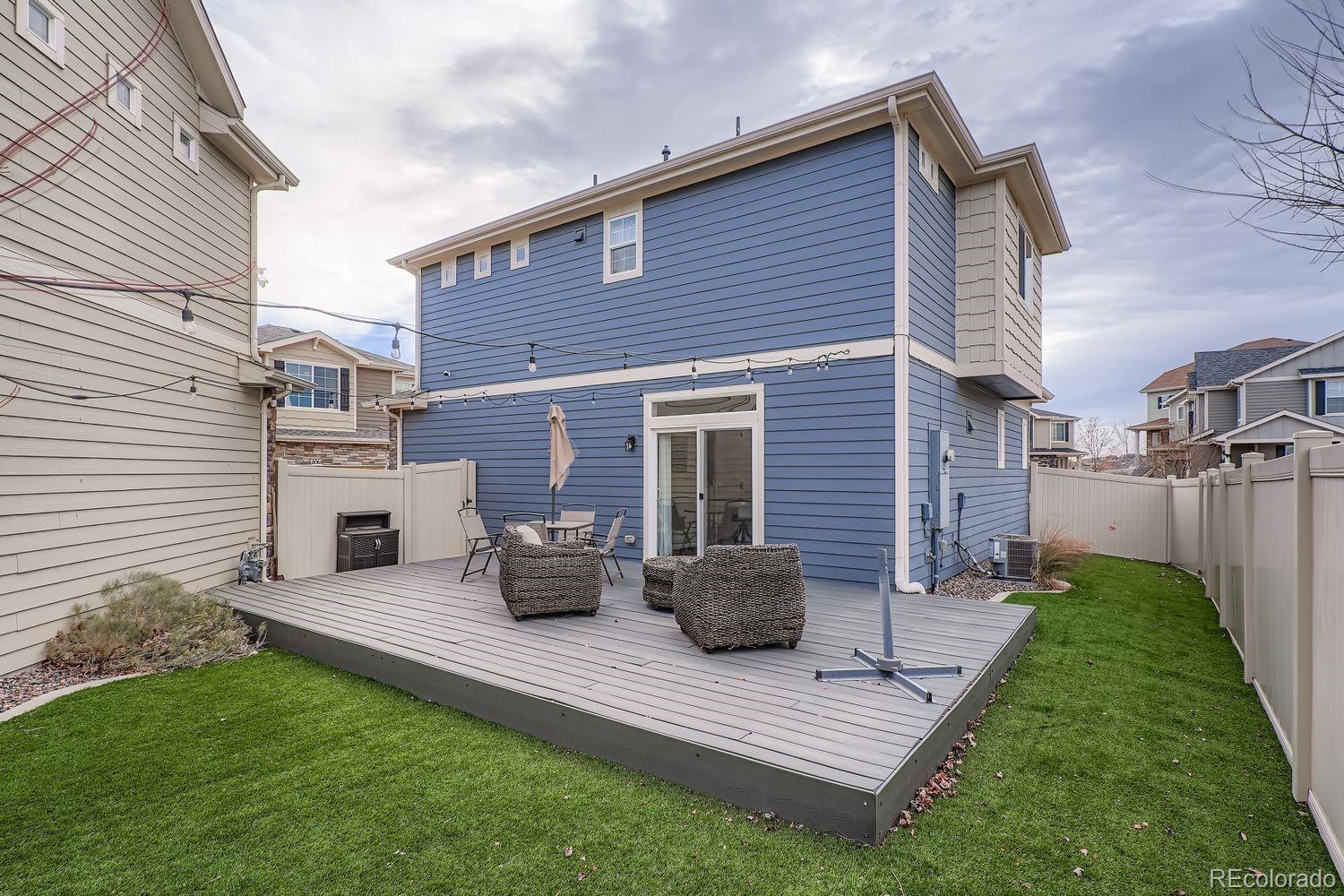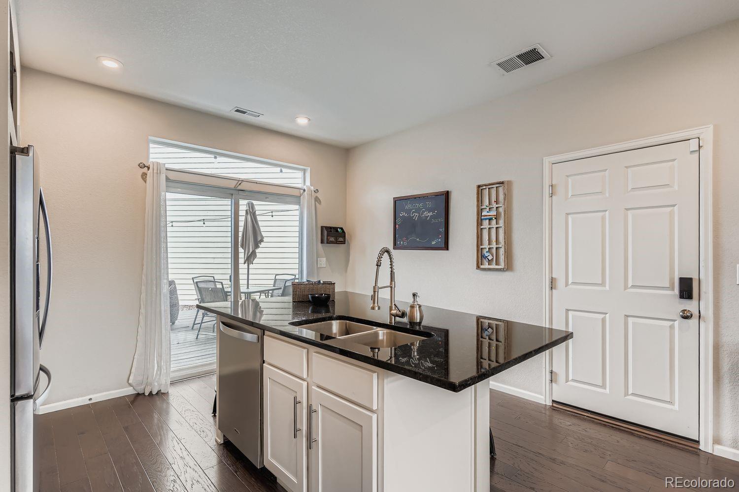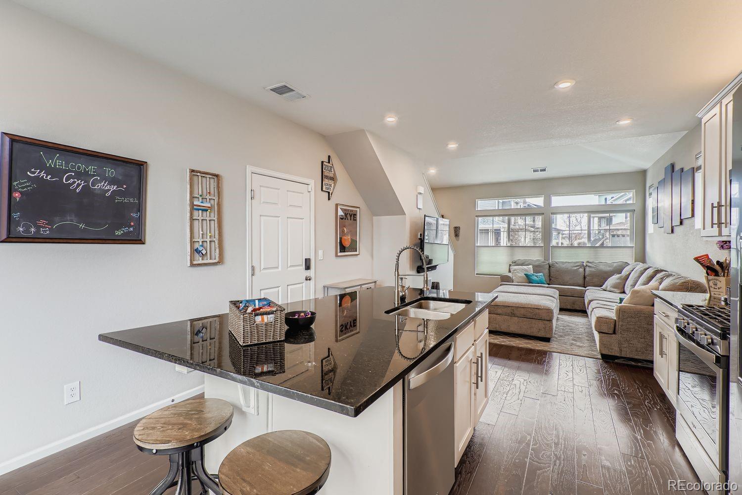 Welcome home to this beautiful, turnkey 2 bedroom, 2.5-bathroom home in Thornton. Located at the entrance to a quiet cul-de-sac in the Villages at Riverdale, this home has been meticulously maintained and is ready for you to make it your own. Featuring granite countertops, newer Range/Oven, Refrigerator, Dishwasher with an island sink with seating, you'll be right at home. The HOA takes care of maintenance of areas outside the enclosed back yard, where you'll find a spacious deck with plenty of room for entertaining or relaxing. The back yard is complete with a synthetic lawn, meaning no mowing! With up/down adjustable blinds you'll be able to let in as much or as little light as you'd like in the living room and in the upstairs bedrooms... Both of which have their own private bathroom! The 2-car attached garage is roomy and boasts plenty of storage overhead as well. Close to parks, walking trails, shopping, and with easy access to 470, I-25, I-76 and Hwy 85, you're close to everything, but away from it all. The home has 3 flat screen televisions (1 in the living room, and each bedroom) which will stay with the home, and all furnishings are negotiable as well.
