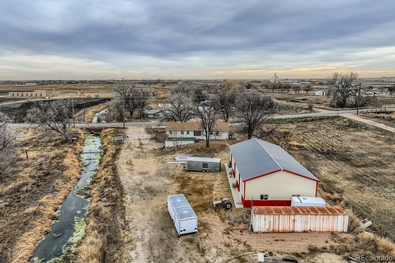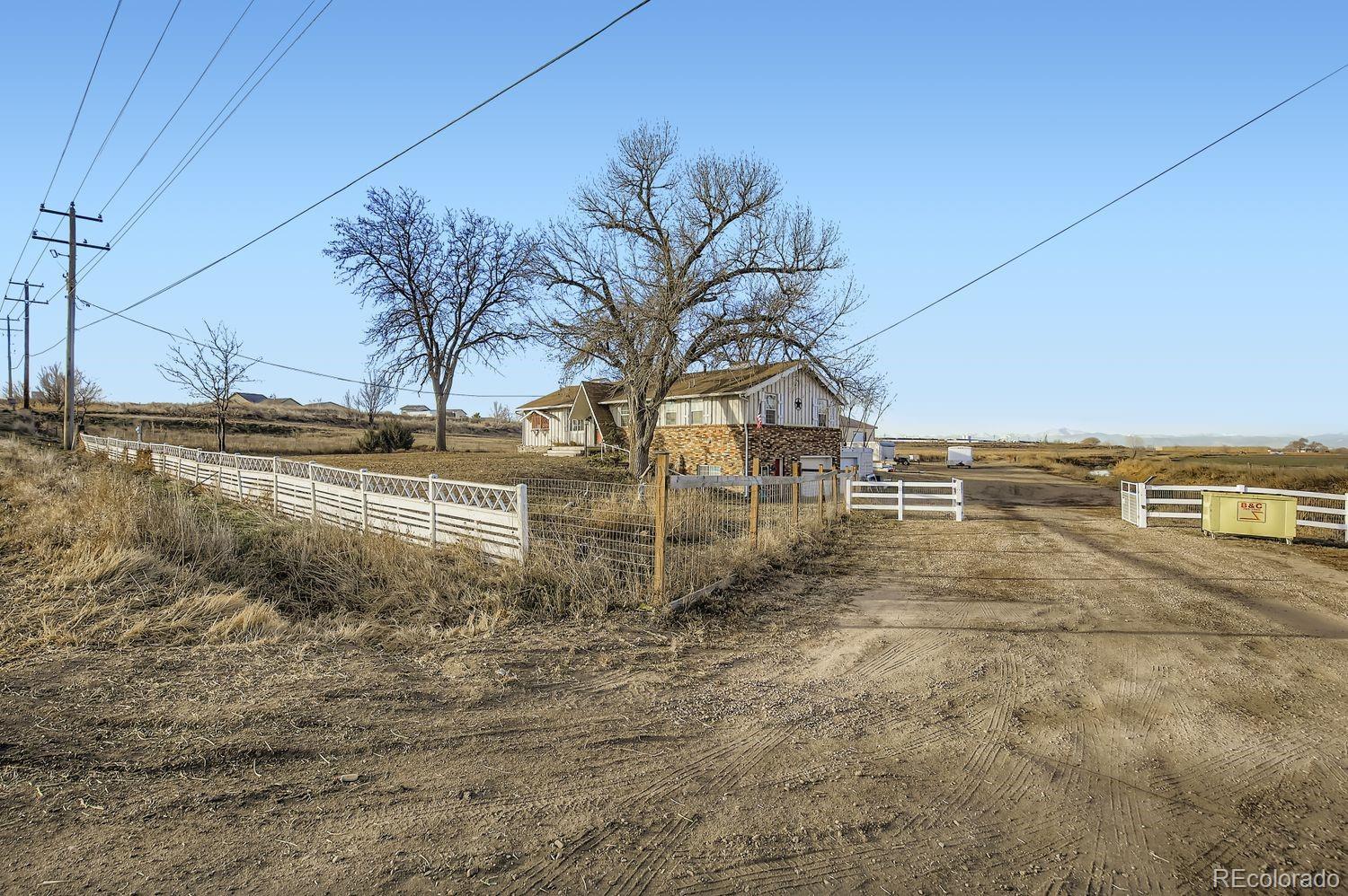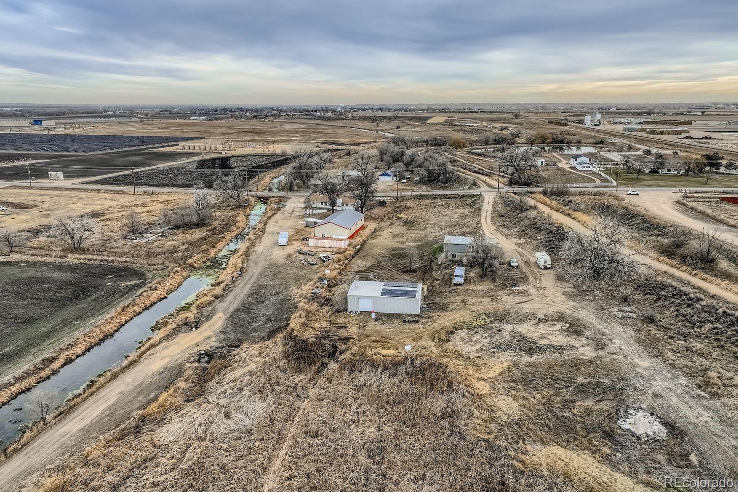 A "River" runs through it! (Ok-it's really a ditch which is fed from a naturally warm spring so it flows year-round, but it sounds like a river and you'll enjoy the waterfowl it attracts.) Updated one level cottage w/ a DREAMY shop offers a private piece of rural paradise. The gorgeous farm-style kitchen offers white cabinets, gorgeous lighting, updated appliances (including newer dishwasher) & plenty of beautiful granite counter space. The mountain views from the living room, primary suite & secondary bedroom are stunning at all times of year. Both baths have been updated with walk-in showers, new flooring, lighting & charm. Both furnaces have been recently serviced (one is dedicated to the primary bedroom for ultimate control of sleeping temperatures). A custom "Closet by Design" system has been added to the primary walk-in closet. A nice mud-room & laundry area can be closed off to the kitchen. LVP flooring t/o and new carpet added to the stairs leading to the bright open basement w/ epoxy style floor coating. New trex style patios have been added to both the front & back entrances plus mature trees offer comfortable shade in the summer. If you're looking for a detached garage/shop that will easily hold 10+ vehicles or up to 3 large RVs--this 2,592 sf mechanic's dream is THE ONE; three oversized 12x12 foot doors w/ electric openers this shop is perfect for the car enthusiast, toy collector, hobby farmer & more! The attached garage areas add room for shop/workspace, tandem parking, boat, motorcycle or toy parking and room for a deep freeze or additional storage as needed and the solar powered electric entrance gate adds security. The current owners have poured over $200k in improvements since they purchased in 2024 (including foundation/basement stabilization) & the house is definitely move-in ready, yet there's still opportunity for sweat equity. No HOA & low taxes for all that is offered. Hurry to call this dreamy small acreage in Weld County yours today!