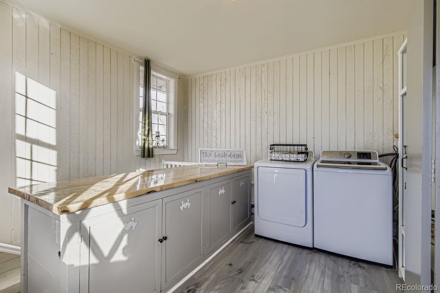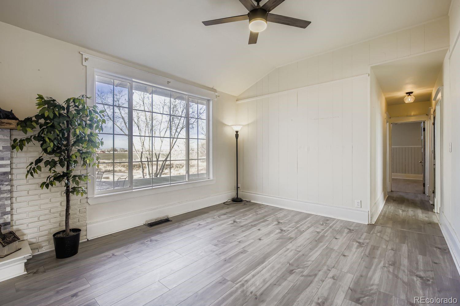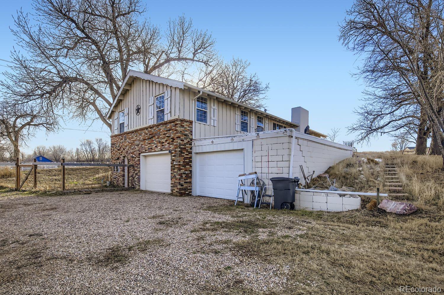 A "River" runs through it! (Ok-it's really a ditch which is fed from a naturally warm spring so it flows year-round, but it sounds like a river and you'll enjoy the waterfowl it attracts.) Updated one level cottage w/ a DREAMY shop offers a private piece of rural paradise. The gorgeous farm-style kitchen offers white cabinets, gorgeous lighting, updated appliances (including newer dishwasher) & plenty of beautiful granite counter space. The mountain views from the living room, primary suite & secondary bedroom are stunning at all times of year. Both baths have been updated with walk-in showers, new flooring, lighting & charm. Both furnaces have been recently serviced (one is dedicated to the primary bedroom for ultimate control of sleeping temperatures). A custom "Closet by Design" system has been added to the primary walk-in closet. A nice mud-room & laundry area can be closed off to the kitchen. LVP flooring t/o and new carpet added to the stairs leading to the bright open basement w/ epoxy style floor coating. New trex style patios have been added to both the front & back entrances plus mature trees offer comfortable shade in the summer. If you're looking for a detached garage/shop that will easily hold 10+ vehicles or up to 3 large RVs--this 2,592 sf mechanic's dream is THE ONE; three oversized 12x12 foot doors w/ electric openers this shop is perfect for the car enthusiast, toy collector, hobby farmer & more! The attached garage areas add room for shop/workspace, tandem parking, boat, motorcycle or toy parking and room for a deep freeze or additional storage as needed and the solar powered electric entrance gate adds security. The current owners have poured over $200k in improvements since they purchased in 2024 (including foundation/basement stabilization) & the house is definitely move-in ready, yet there's still opportunity for sweat equity. No HOA & low taxes for all that is offered. Hurry to call this dreamy small acreage in Weld County yours today!