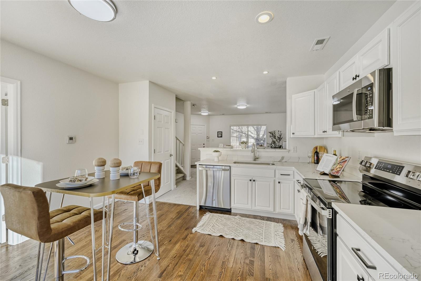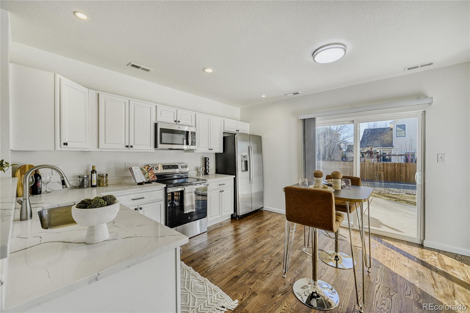 Receive up to $16,692 in Down Payment & Closing Costs Assistance! - Beautifully Updated 3-Bedroom Home with Large Yard, Patio & Attached Garage This move-in-ready 3-bedroom, 2.5-bath home offers 1,200 square feet of thoughtfully updated living space with an open floorplan designed for comfortable everyday living. Recent renovations include brand-new paint, new flooring, updated light fixtures, and a refreshed kitchen featuring quartz countertops, wood floors, and brand-new stainless steel appliances and much much more. The large family room flows seamlessly into the kitchen and dining area, creating an ideal space for entertaining and relaxing. The functional main floor also includes a convenient half bathroom, perfect for guests, and laundry room with washer and dryer included. Upstairs, the primary bedroom features an ensuite bathroom, providing a private retreat, while two additional bedrooms offer flexibility for guests, a home office, or additional living space. Outside, enjoy a spacious back patio and large yard with garden boxes, ideal for outdoor dining, gardening, or enjoying warm evenings. An attached garage adds everyday convenience, and all appliances—including washer and dryer—are included, making this home truly move-in ready.