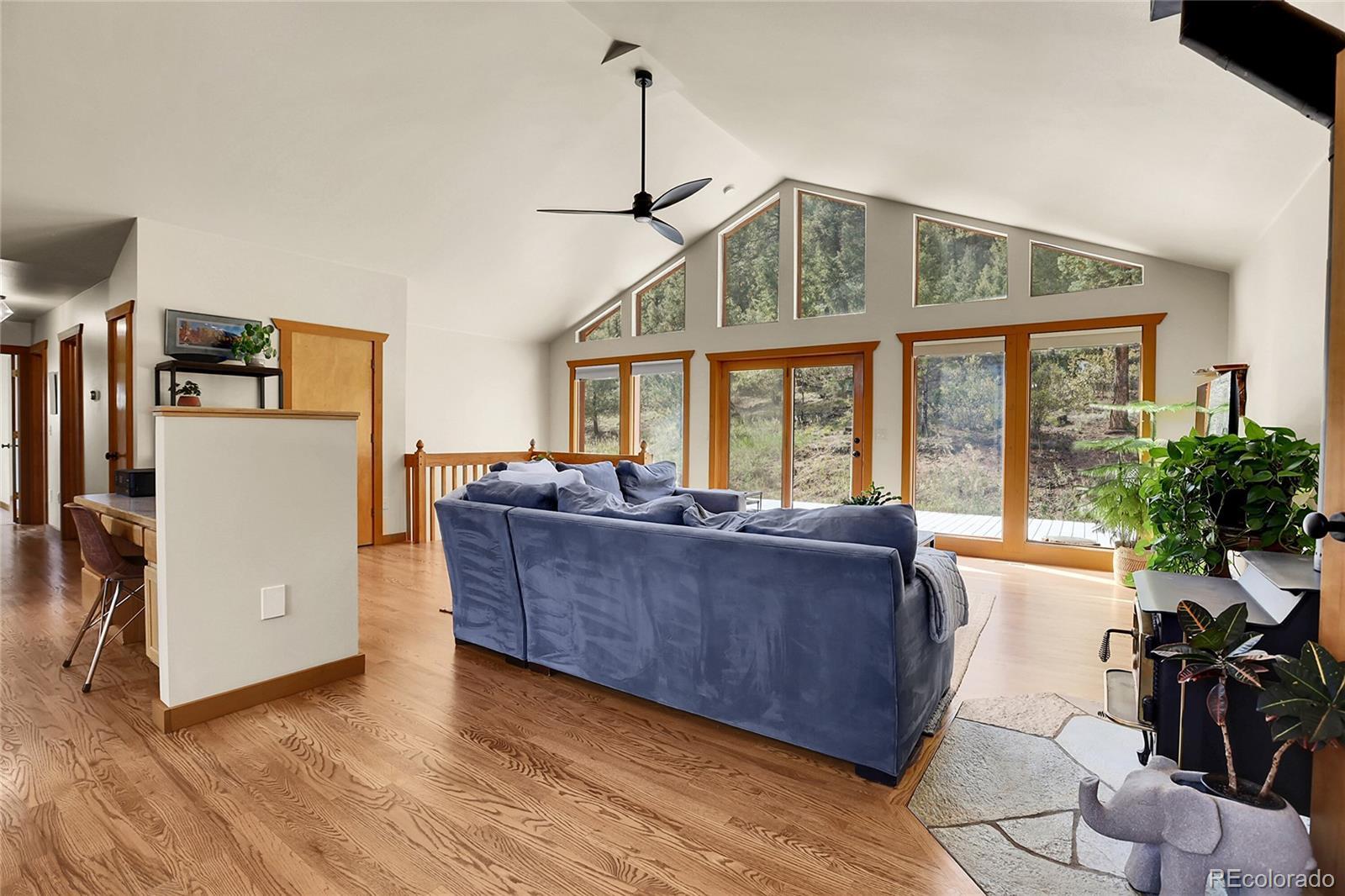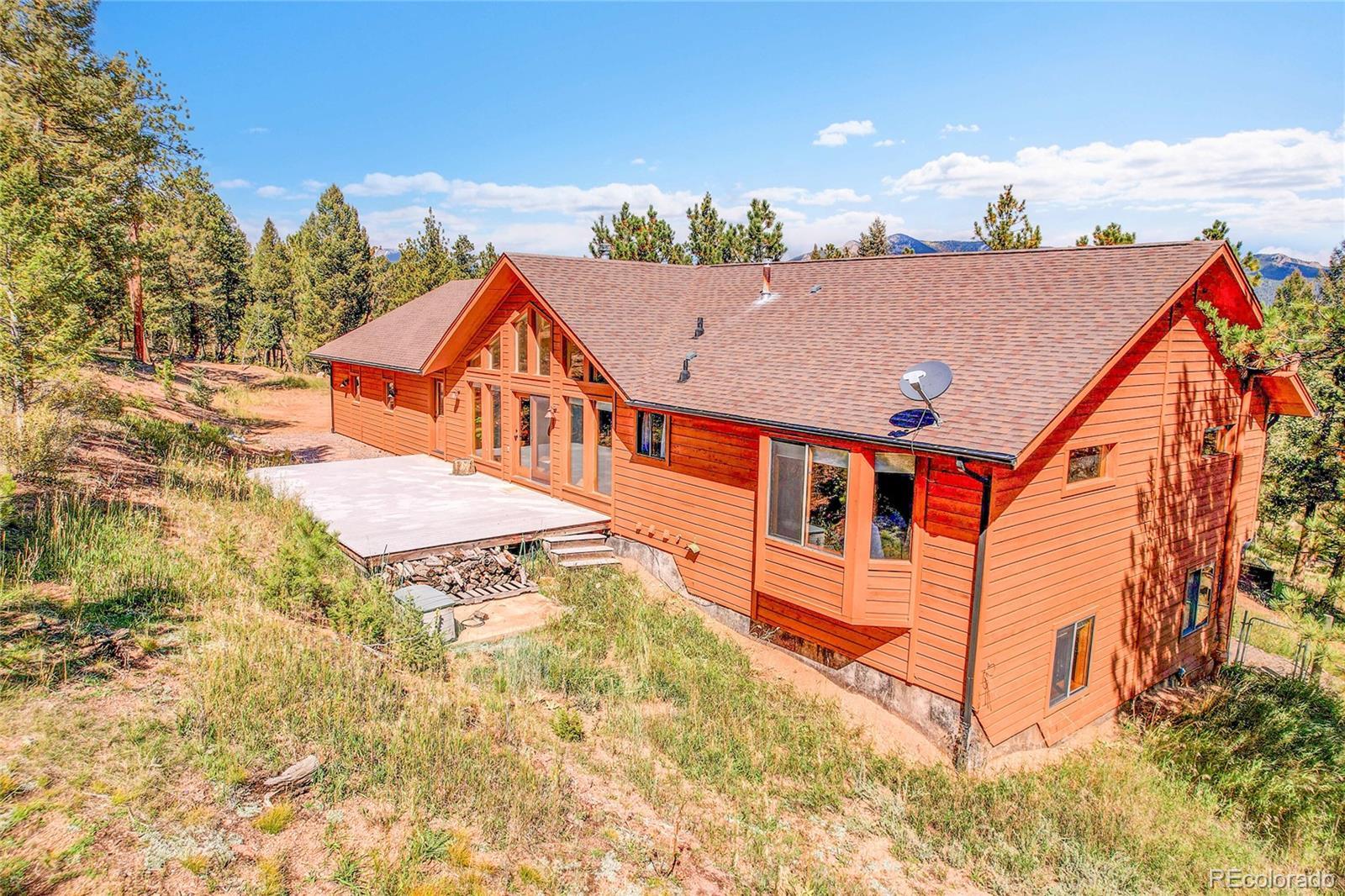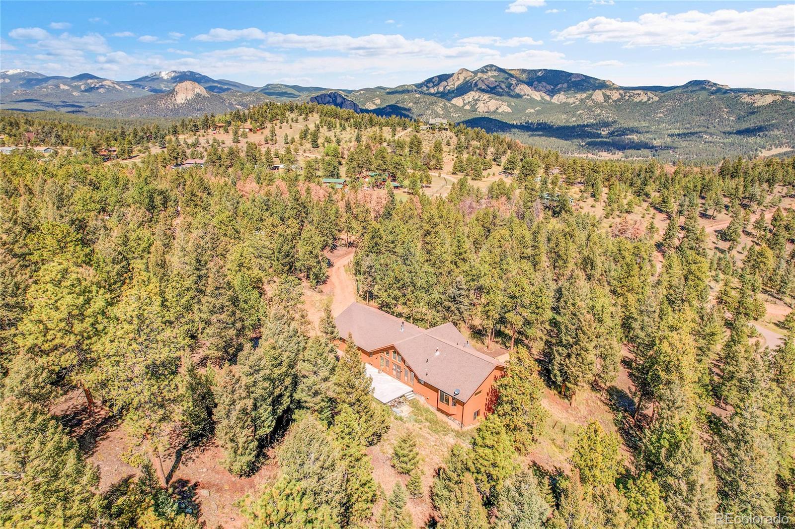 This beautiful mountain home offers the perfect blend of comfort, space, and Colorado living. Set on 5 acres, with an oversized 3 car garage the property provides endless opportunities—whether you’re looking for room to garden, space for animals, or simply a peaceful retreat surrounded by nature. The land is fully fenced, level in many areas, and ideal for entertaining, recreation, or enjoying frequent visits from local wildlife. Inside, you’ll find a bright and spacious great room with floor-to-ceiling windows that frame stunning views, hardwood floors, and a cozy wood-burning stove. The open floor plan flows into a roomy kitchen with abundant cabinet space, a breakfast bar, and a dining area perfect for gatherings. Main-level living is effortless with a comfortable primary suite, two additional bedrooms, and a full bathroom all on the ground floor. The fully finished walk-out basement offers incredible additional living space, featuring a huge family room, a non-conforming 4th bedroom or den, and a full bath—perfect for guests, a home office, or a media room. Practical features include a central vacuum, mudroom, newer carpet, and an oversized 3-car garage. Outdoor living shines with a large composite deck for entertaining, a firepit for cool mountain evenings, and a spacious parking pad with plenty of room for multiple vehicles, trailers, or even an RV. Best of all, while you’ll feel like you’re worlds away on your private 5-acre retreat, quick and easy access to Highway 285 makes commuting and trips to town a breeze. Insurance is always a factor in the Mountains, and this home has been verified eligible for insurance. The Listing agent has many resources for this area to help with any transition to the mountain area.