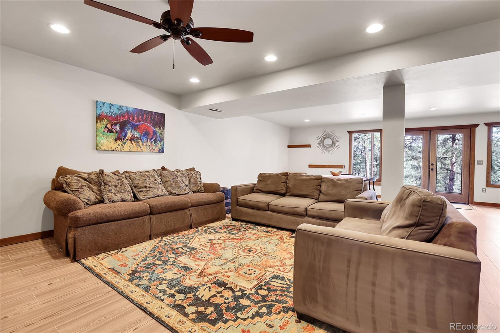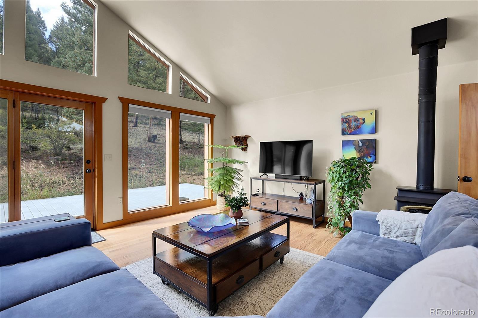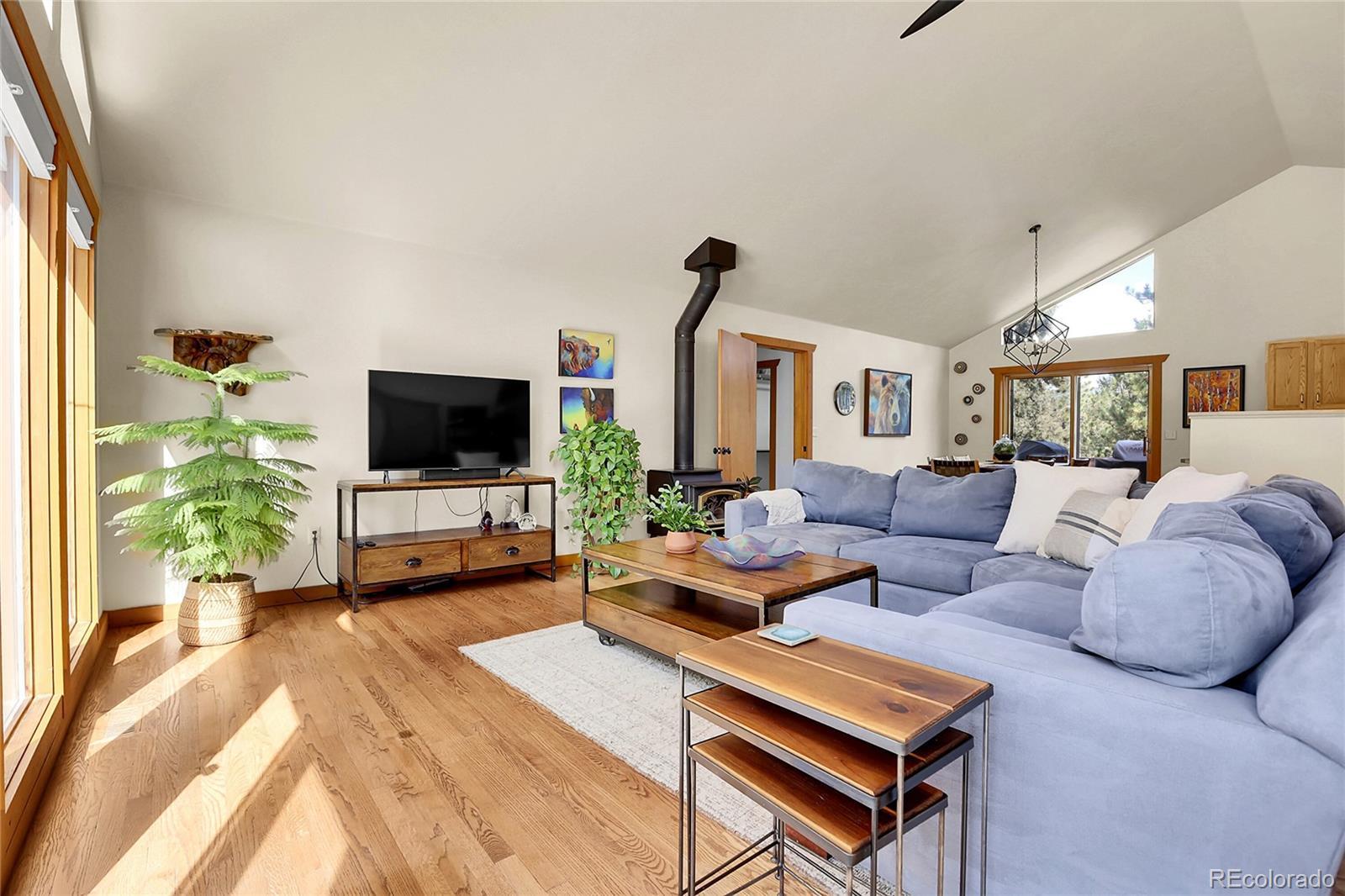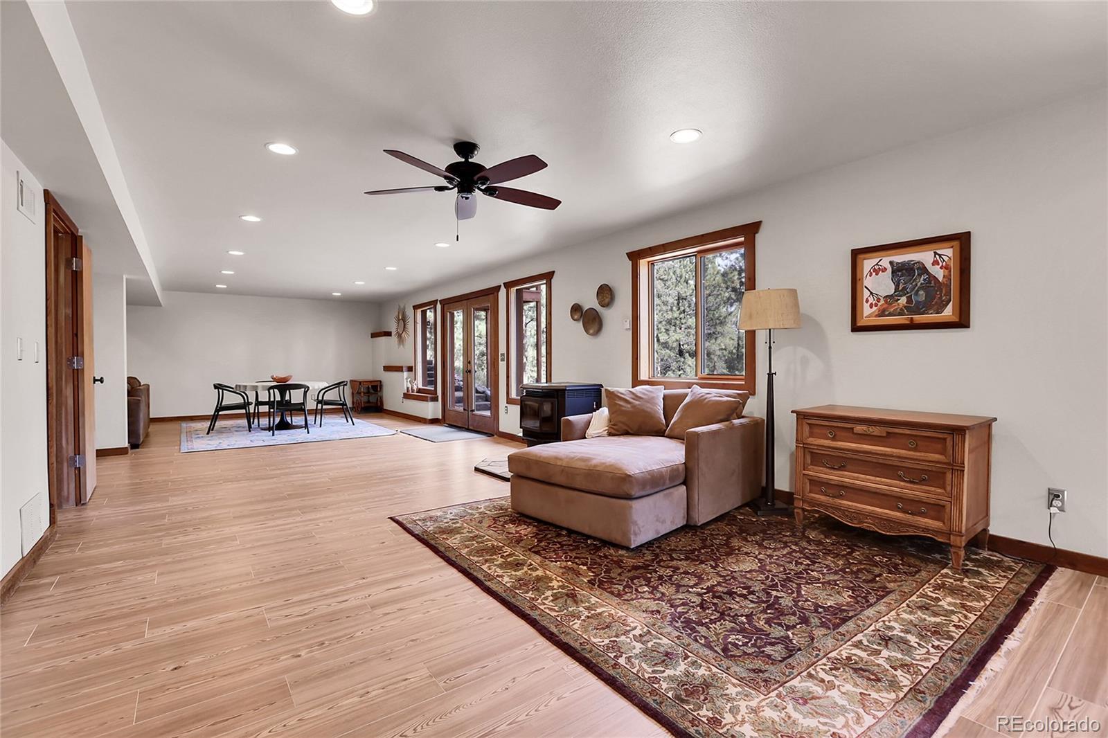 This beautiful mountain home offers the perfect blend of comfort, space, and Colorado living. Set on 5 acres, with an oversized 3 car garage the property provides endless opportunities—whether you’re looking for room to garden, space for animals, or simply a peaceful retreat surrounded by nature. The land is fully fenced, level in many areas, and ideal for entertaining, recreation, or enjoying frequent visits from local wildlife. Inside, you’ll find a bright and spacious great room with floor-to-ceiling windows that frame stunning views, hardwood floors, and a cozy wood-burning stove. The open floor plan flows into a roomy kitchen with abundant cabinet space, a breakfast bar, and a dining area perfect for gatherings. Main-level living is effortless with a comfortable primary suite, two additional bedrooms, and a full bathroom all on the ground floor. The fully finished walk-out basement offers incredible additional living space, featuring a huge family room, a non-conforming 4th bedroom or den, and a full bath—perfect for guests, a home office, or a media room. Practical features include a central vacuum, mudroom, newer carpet, and an oversized 3-car garage. Outdoor living shines with a large composite deck for entertaining, a firepit for cool mountain evenings, and a spacious parking pad with plenty of room for multiple vehicles, trailers, or even an RV. Best of all, while you’ll feel like you’re worlds away on your private 5-acre retreat, quick and easy access to Highway 285 makes commuting and trips to town a breeze. Insurance is always a factor in the Mountains, and this home has been verified eligible for insurance. The Listing agent has many resources for this area to help with any transition to the mountain area.