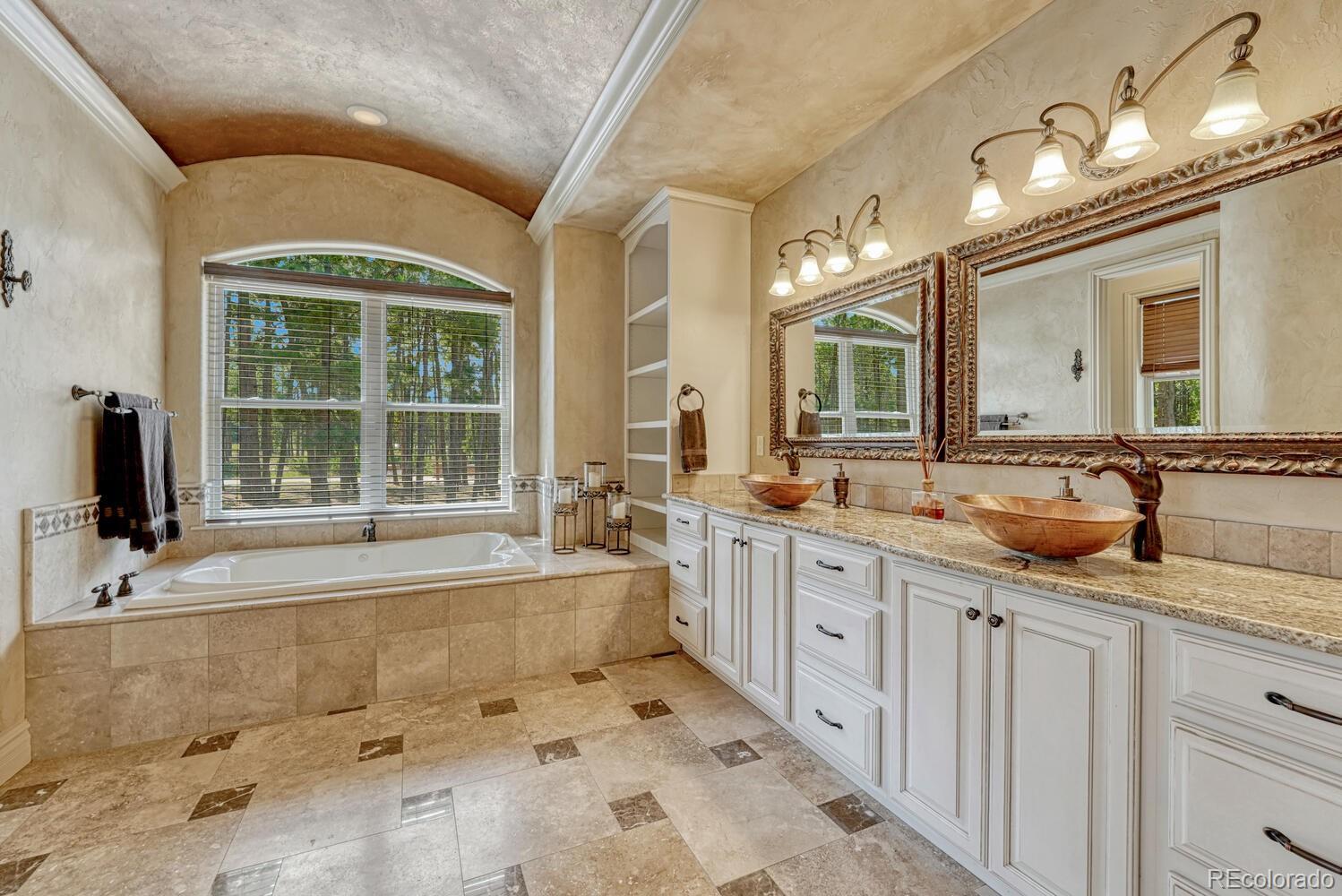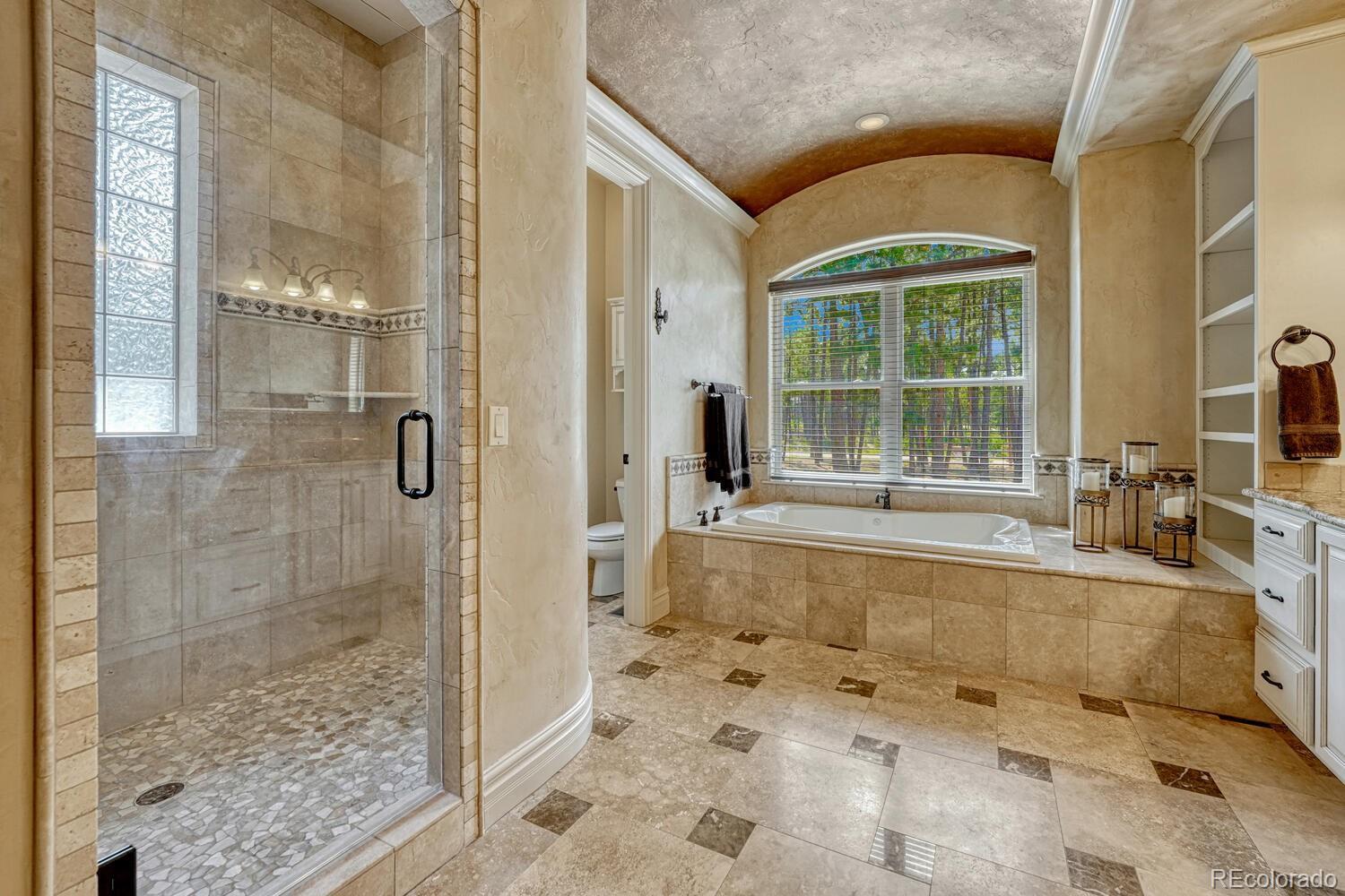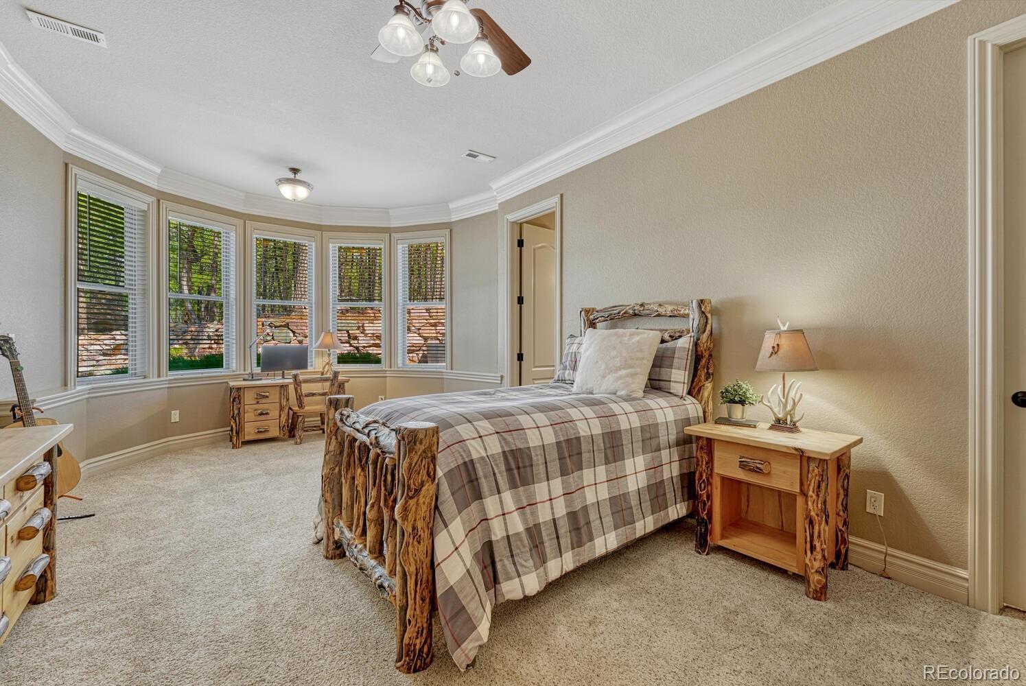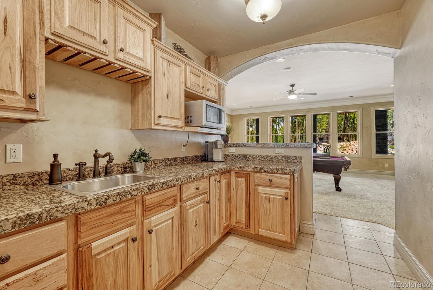 1360 Trumpeters Court offers an exceptional Colorado living experience! 5 bedrooms,6 bathrooms and 5 car garage located in the highly sought after Hilltop Pines neighborhood & Lewis Palmer School District 38! This open floor plan features a large primary suite with french doors, amazing windows, vaulted ceilings, luxurious 5-piece bathroom & soaking tub, a glass-enclosed shower and two generous walk-in closets. All 4 bedrooms feature walk-in closets and private full baths with jet tubs. The spacious dining room has cathedral ceiling and lots of sunlight. Gourmet kitchen is a chef’s dream equipped with top-of the line appliances, new Subzero refrigerator, double oven and gas cooktop, newer Wolf microwave. Granite countertops and newly refinished wood floors throughout. The sunroom is warm & cozy & provides amazing views of the beautiful backyard. Walk-in pantry, mud room w/ laundry, utility sink & storage. The living room features a beautiful stone fireplace, soaring ceilings, a wall of windows letting plenty of natural light & views of the soaring Ponderosa Pines. The walk-out lower level features a spacious family room with a floor to ceiling stone fireplace, full size wet bar & a hidden walk in safe room, media & game room! Seamless indoor/outdoor access flows to the covered patio. Situated on 2.59 acre treed lot, this home offers privacy, natural beauty & a serene environment. The outdoor living at its finest with an amazing stone fire place and a multi -level outdoor water feature like no other! Fully landscaped, large stamped cement patio & fire pit for entertaining. Extra features & upgrades: Central Vacuum System, Smart home controls throughout, new class 4 roof, new HVAC, new Wolf appliances, new water heater, whole house water filter, whole house humidifier, PetSafe wireless dog fence, exterior fully repainted, rubber floor in workout room & equipment stays! Easy access to I-25, COS & Denver. Don't miss this opportunity to own this one-of-a-kind property!