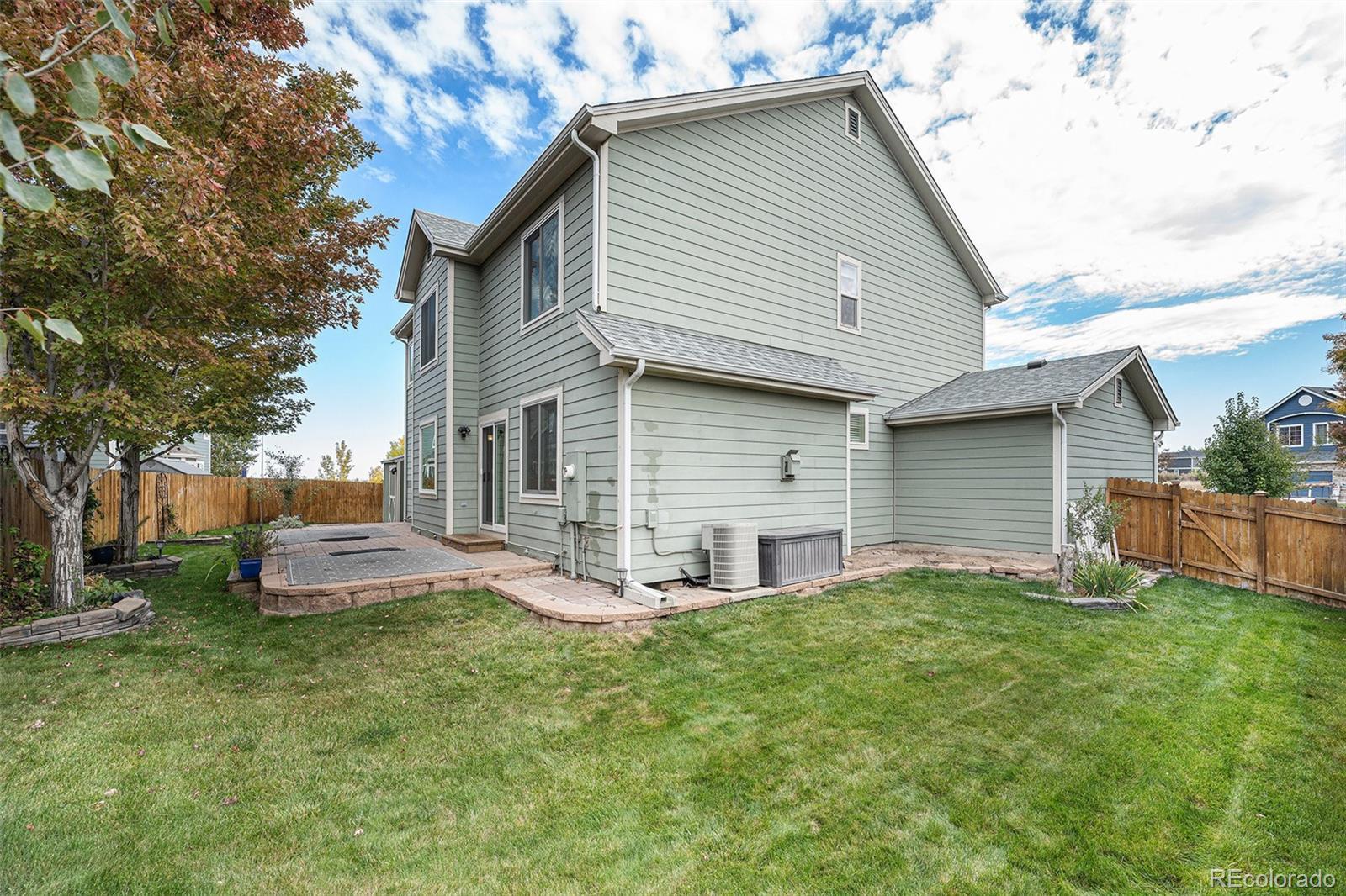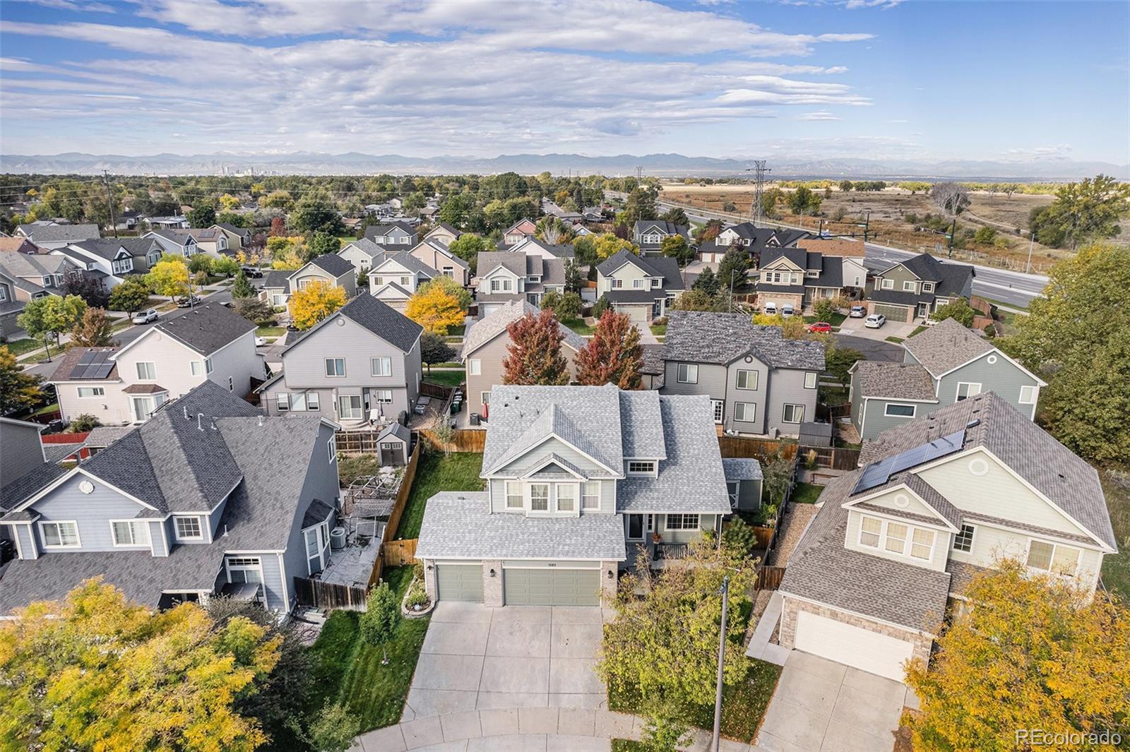 This beautiful home features 4 spacious bedrooms, 3 bathrooms, 3 car garage providing ample space for you and your family. The layout includes both a living room with vaulted ceilings and a cozy family room with fireplace, perfect for relaxation or entertaining guests. Located in a quiet cul-de-sac, this home offers easy access to shopping, dining, and DIA, making it a convenient choice for your lifestyle. The kitchen boasts hardwood floors, along with newer stainless steel appliances and a breakfast nook. The backyard is a true gem, featuring a large patio surrounded by trees for privacy, ideal for hosting gatherings with a custom shed for extra storage. Click the Virtual Tour link to view the 3D walkthrough. Discounted rate options and no lender fee future refinancing may be available for qualified buyers of this home.