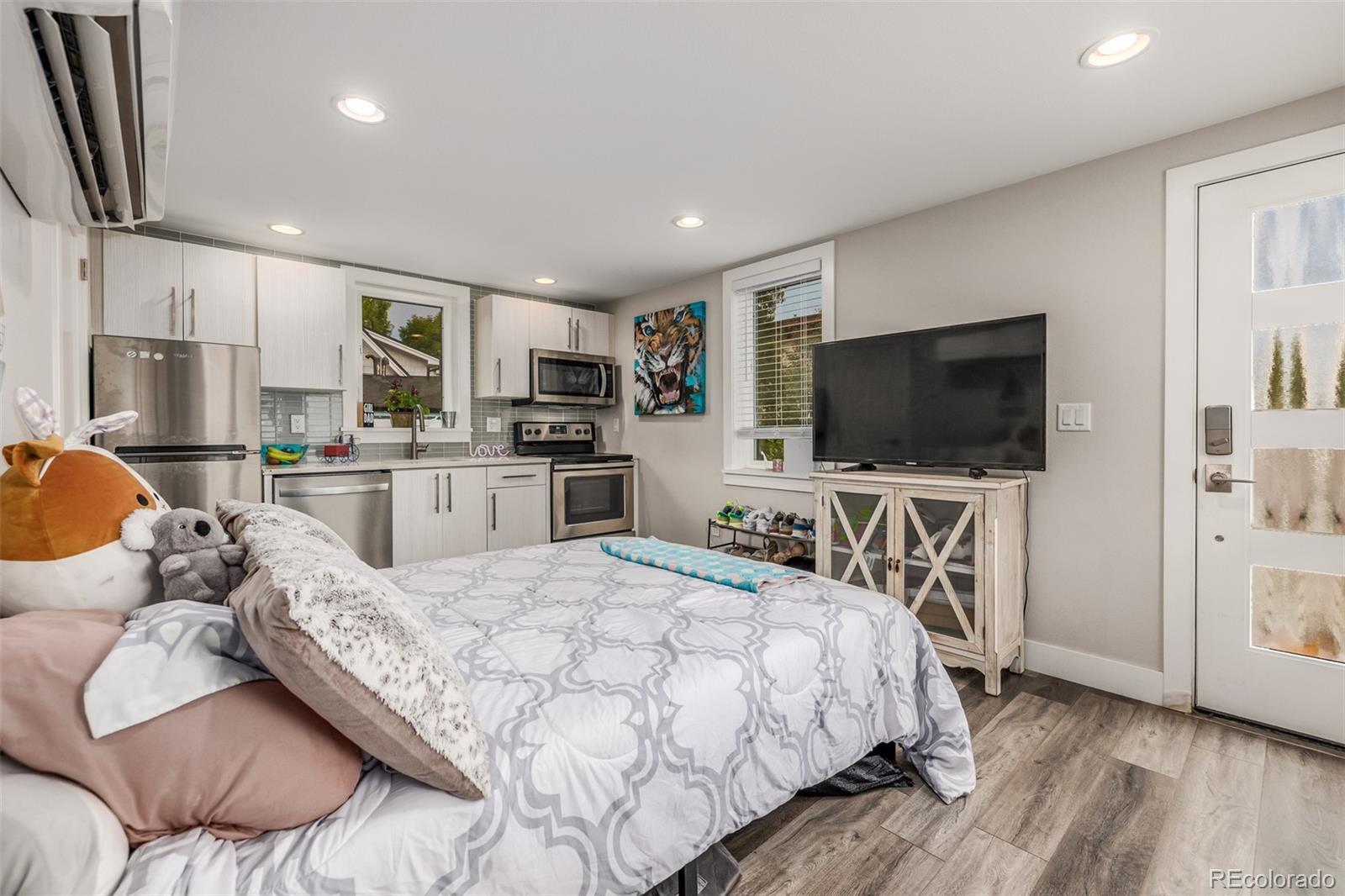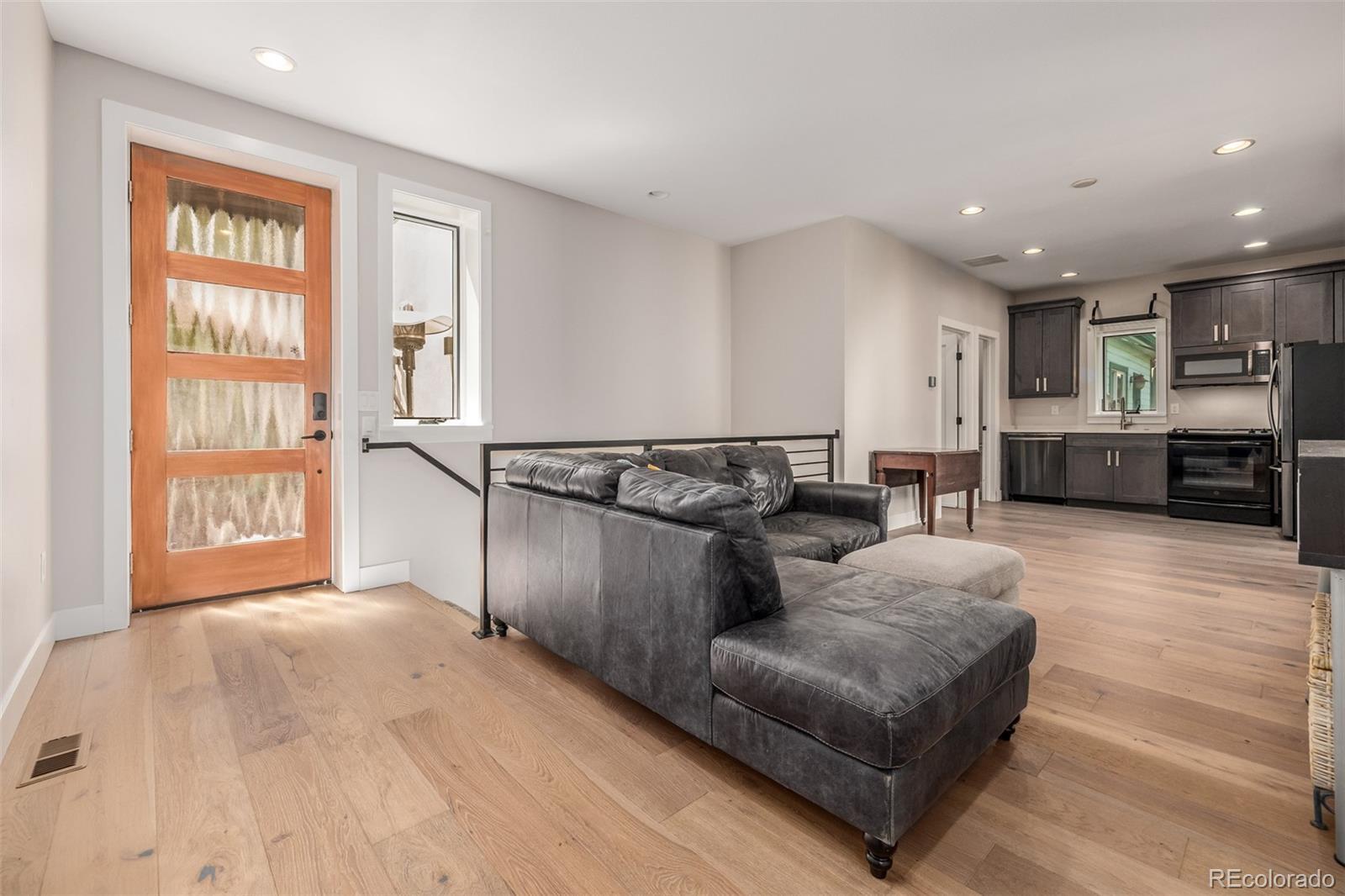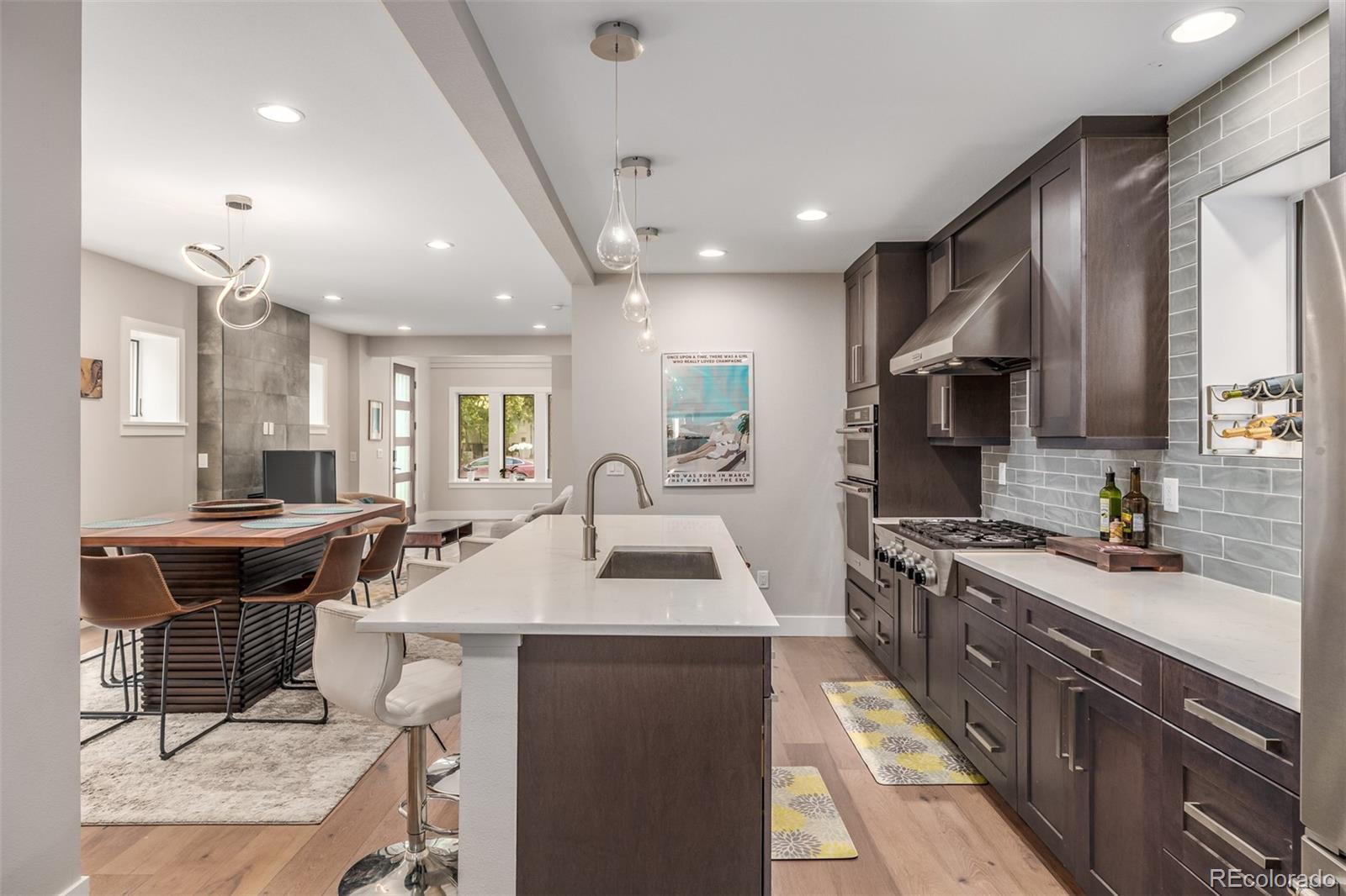 Presenting an exquisite and remarkably detailed property that boasts charm from the front to the back! Starting with an enchanting front patio that sets the tone for the sublime craftsmanship displayed throughout this home. Lush, verdant landscaping creates an inviting first impression, providing a sanctuary where you can relax and enjoy the peaceful Platt Park neighborhood not to mention this home is one block away from all the restaurants and bars on South Pearl. Discover an interior showcasing wood flooring, soothing color palette, dazzling light fixtures, and a lovely fireplace that adds an element of coziness to the living room. Serving as the heart of the home is a chef's dream kitchen outfitted with modern cabinetry, sleek quartz counters, and high-quality stainless steel appliances including a convenient wall oven. The grand kitchen island doubles as a breakfast bar, perfect for casual dining or entertaining. Primary bedroom includes carpet, large bathroom with dual sinks, and a generously-sized walk-in closet. The upstairs is rounded out with 2 more bedrooms and an oversized bathroom. Towards the back of the main house you’ll find the fantastic guest quarters with a fully equipped kitchen and 2 bathroom rooms, providing guests or live-in family members a comfortable and private living space with private entrance. BONUS ADU on top of the garage completed in 2020 adds an extra element of potential rental income to this home! Completing the layout of this home is a cozy backyard. Designed with tranquility in mind, it’s a perfect spot to unwind at the end of the day.
