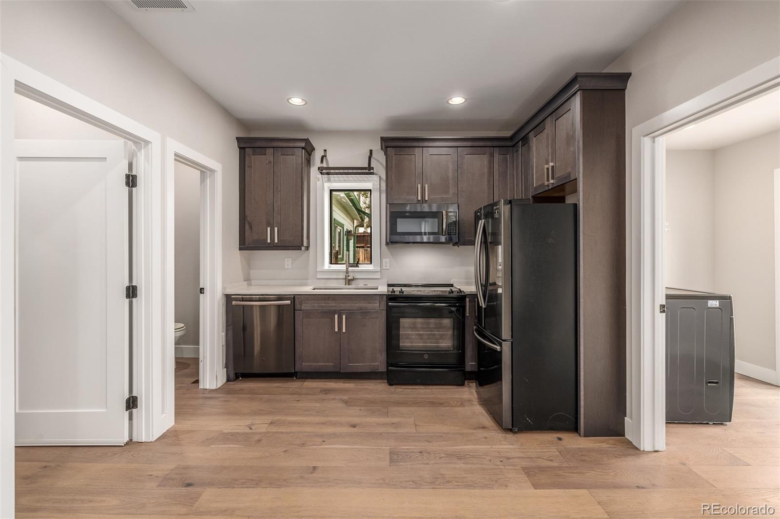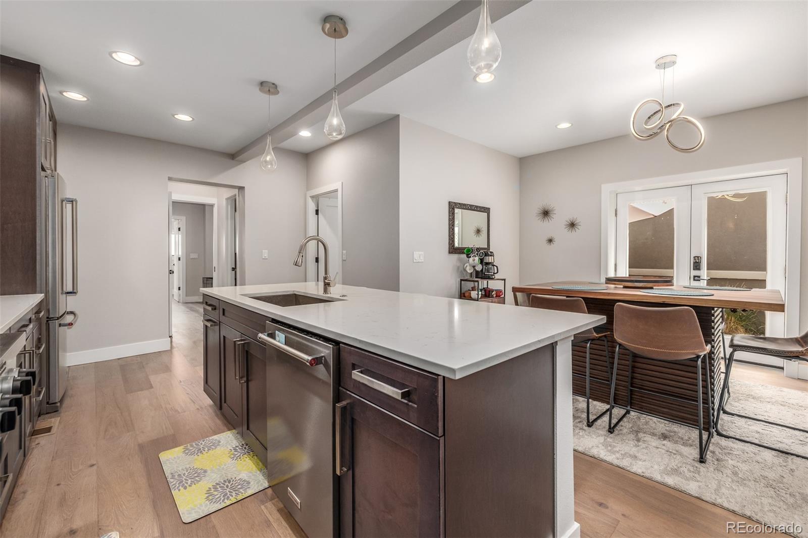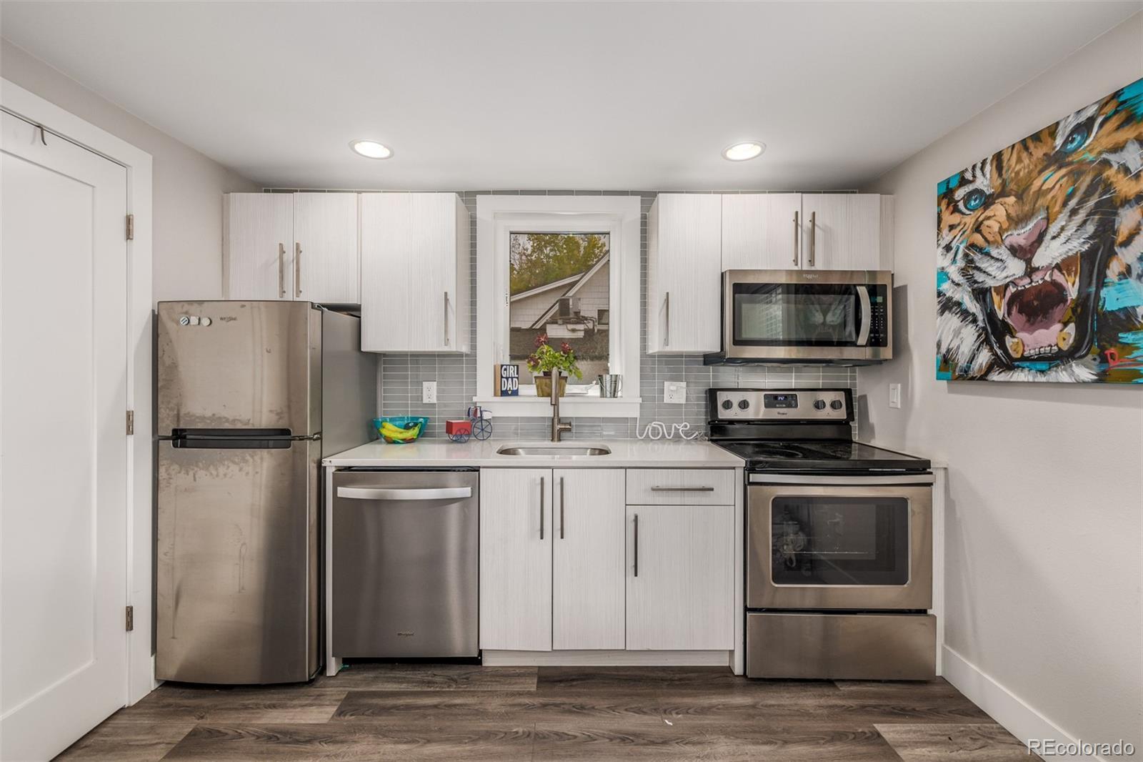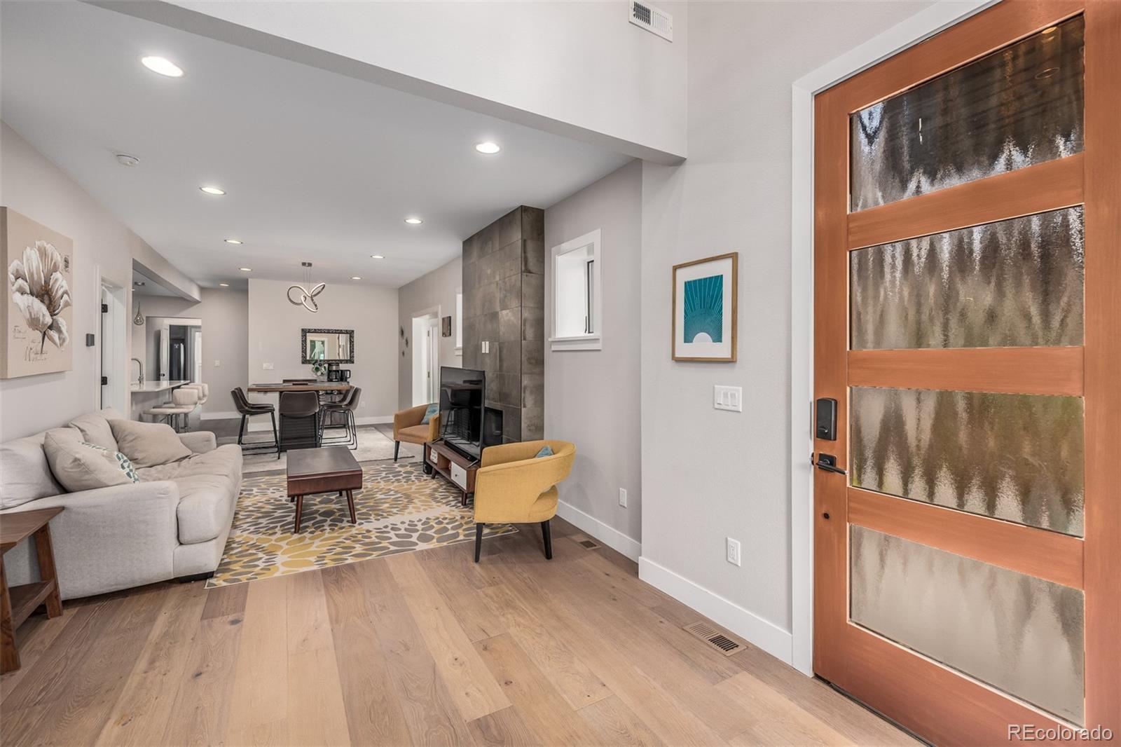 Presenting an exquisite and remarkably detailed property that boasts charm from the front to the back! Starting with an enchanting front patio that sets the tone for the sublime craftsmanship displayed throughout this home. Lush, verdant landscaping creates an inviting first impression, providing a sanctuary where you can relax and enjoy the peaceful Platt Park neighborhood not to mention this home is one block away from all the restaurants and bars on South Pearl. Discover an interior showcasing wood flooring, soothing color palette, dazzling light fixtures, and a lovely fireplace that adds an element of coziness to the living room. Serving as the heart of the home is a chef's dream kitchen outfitted with modern cabinetry, sleek quartz counters, and high-quality stainless steel appliances including a convenient wall oven. The grand kitchen island doubles as a breakfast bar, perfect for casual dining or entertaining. Primary bedroom includes carpet, large bathroom with dual sinks, and a generously-sized walk-in closet. The upstairs is rounded out with 2 more bedrooms and an oversized bathroom. Towards the back of the main house you’ll find the fantastic guest quarters with a fully equipped kitchen and 2 bathroom rooms, providing guests or live-in family members a comfortable and private living space with private entrance. BONUS ADU on top of the garage completed in 2020 adds an extra element of potential rental income to this home! Completing the layout of this home is a cozy backyard. Designed with tranquility in mind, it’s a perfect spot to unwind at the end of the day.