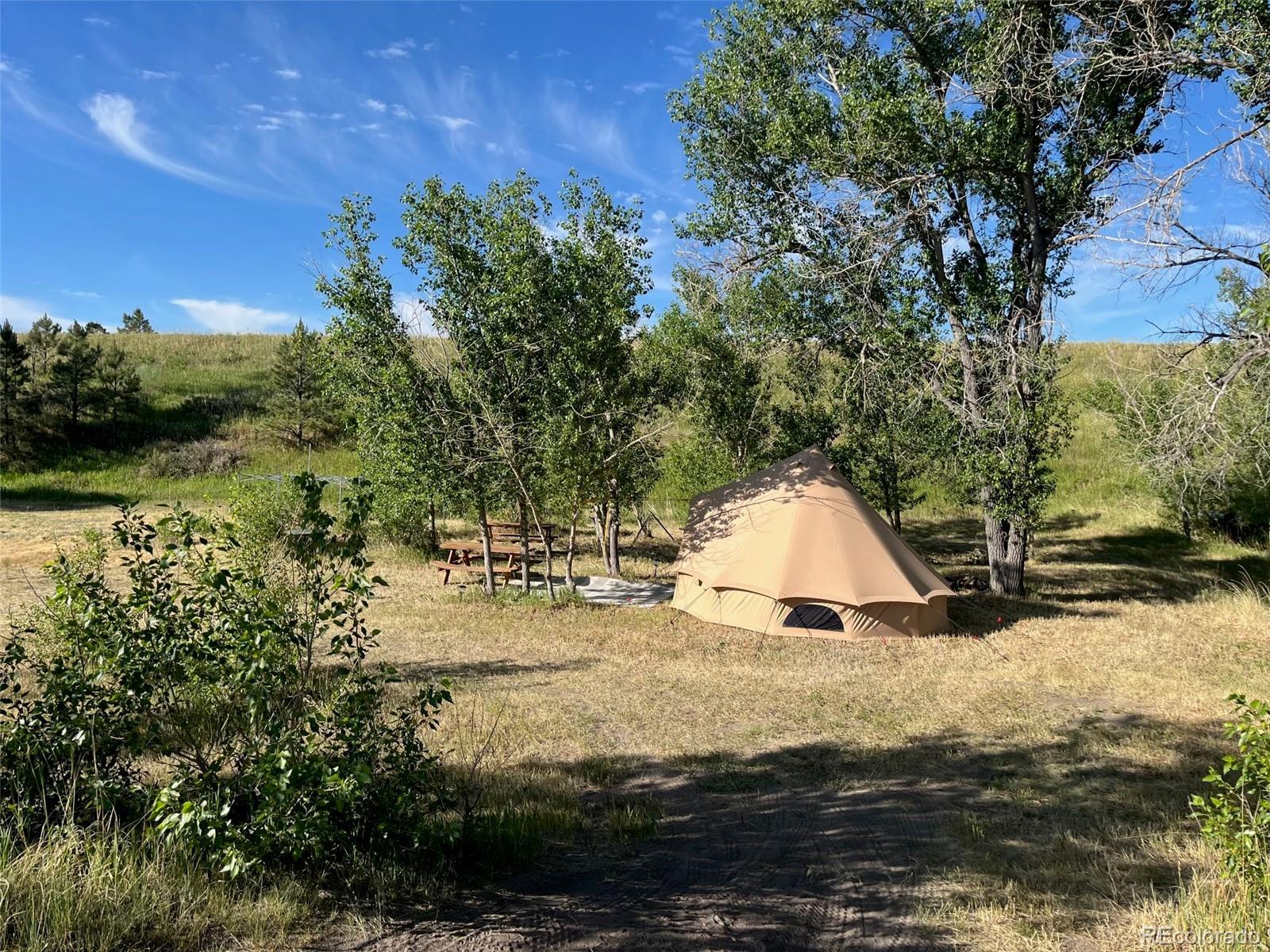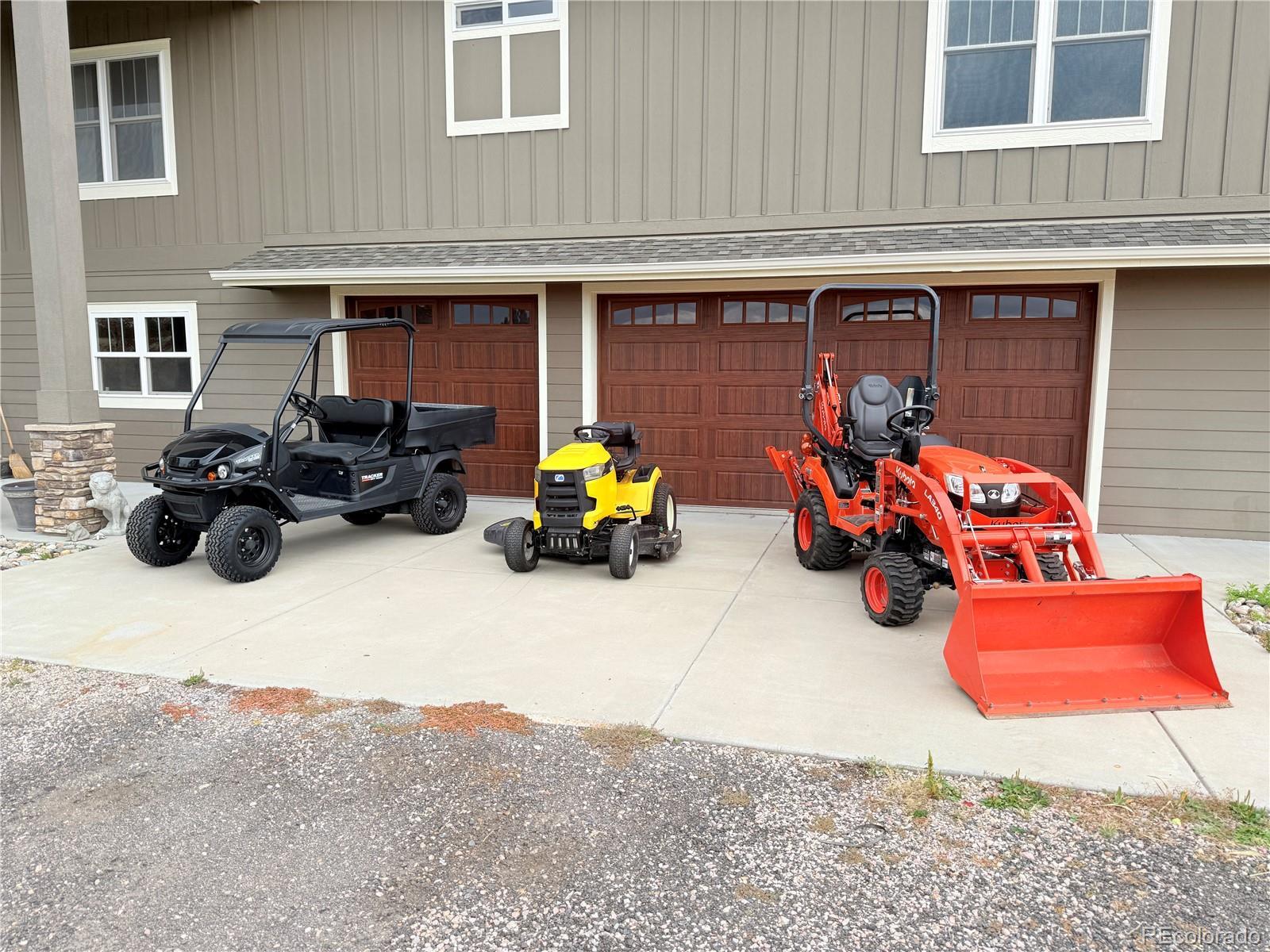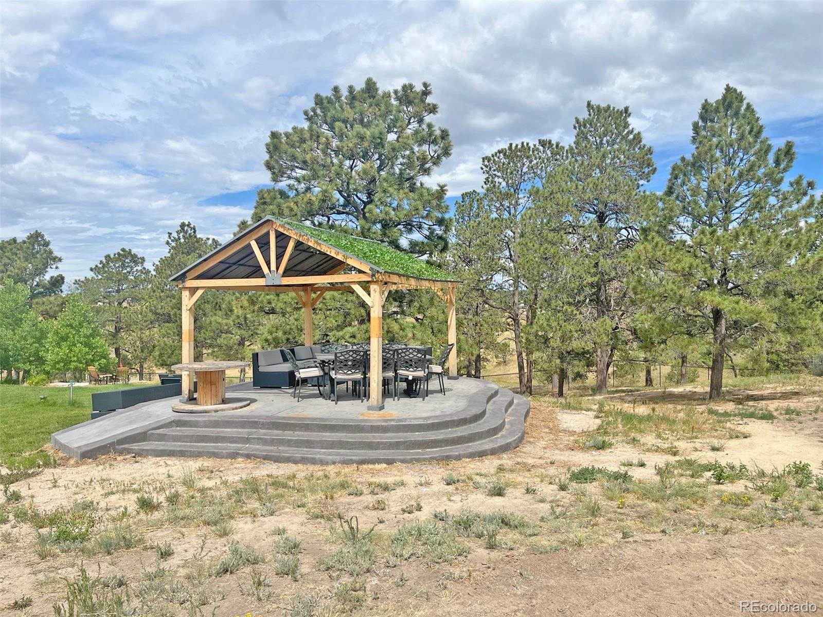 Move in ready. Close to the town of Elizabeth. Don't miss out on this amazing 43.5 acre property.With full price offer the following gently used ranch equipment is included: Kubota LA340 Tractor; Cub Cadet XT1 Enduro Series Riding Mower and Tracker OX400 Off Road Utility Vehicle. Experience country living at its best with this 5 bedroom, 4 bath, 2 story custom home, with a breathtaking view of Pikes Peak. The amazing main floor entrance is complimented by a 25 foot ceiling and flows into the large dining room that exits to the private side patio with hot tub (included) and flowing water feature. The updated eat-in kitchen will delight the chef enthusiast with granite counters, stainless steel appliances, an abundance of cabinets (all cabinets and drawers thru out house are slow close) and a walk-in pantry. The main floor primary suite features a gas fireplace (framed by stone) walk-in closet, private bath and exits to the private side patio. Stairs lead to the second floor where you are greeted by an enormous family room with an incredible gas fireplace (surrounded by stone) and a mini kitchen. There is a second master suite, 3 additional bedrooms and 2 Jack and Jill bathrooms. All bedrooms have walk-in closets. Exit the second floor into the back yard with 3 acres (fenced for private use) and a gazebo perfect for entertaining. The house also boast central air with 3 zones, new roof, all house fan, ethernet wired throughout and sprinklers in both front and back. The oversized 3 car garage is incredible with 30-amp RV hookup. Feel free to explore the property it is worth your time. Discover the seasonal pond (formally Russell Reservoir) and a hidden treed park area with solar lighting ideal for camping out. There is a 12x12 foot workshop with electric that is perfect for your crafts or special projects. Fully fenced with a loafing shed, Bring your horses, cows or llamas, no HOA’s or restrictions. 64.82 sq. ft. of adjudicated Water Rights included.