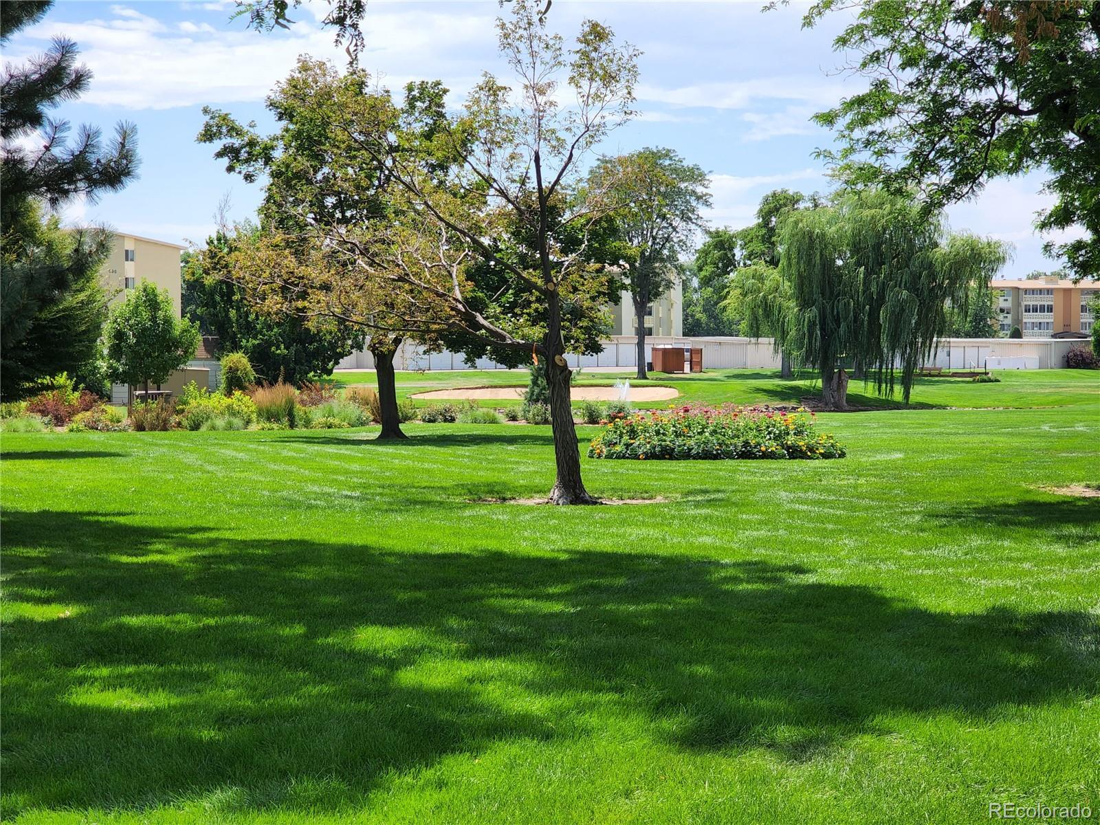 "JUST REDUCED - MODERN REMODEL- QUIET LOCATION- STEPS TO LAUNDRY!" Welcome to 595 S Alton Way #7B, a tastefully updated condo in the heart of Denver’s premier 55+ community—Windsor Gardens. This inviting home offers a perfect blend of comfort, style, and convenience, all within one of the city's most desirable active adult neighborhoods. Step inside and immediately notice the rich CoreTec Pro Plus luxury vinyl plank flooring that runs throughout the living areas, providing a sleek and durable foundation. The kitchen is a showstopper—featuring warm cherry cabinets, quartz countertops, a travertine tile backsplash, stainless steel appliances, and a bar-height counter perfect for casual meals or entertaining. Both bathrooms have been thoughtfully remodeled with modern quartz vanities, tiled floors, and stunning shower surrounds—subway tile in the main bath and river rock tile in the primary ensuite. A custom barn door adds style and function between the living area and second bedroom, while the primary suite features a spacious California Closet walk-in and brand-new plush carpet for added comfort. Additional perks include: Garage space #28 in Lot-15, conveniently located right next to the building entrance Just steps from the laundry room Fresh finishes and thoughtful updates throughout Enjoy all the incredible amenities Windsor Gardens has to offer—indoor/outdoor pools, a fitness center, golf course, restaurant, walking trails, and a community center with countless clubs and activities. Don’t miss your chance to live in a community where lifestyle, location, and low-maintenance living all come together. Schedule your showing today—this one won't last!