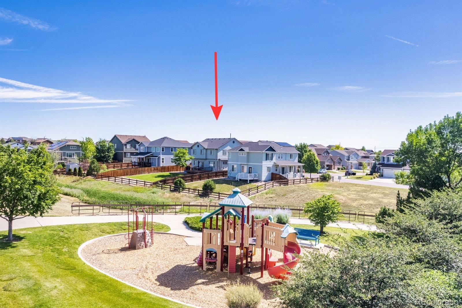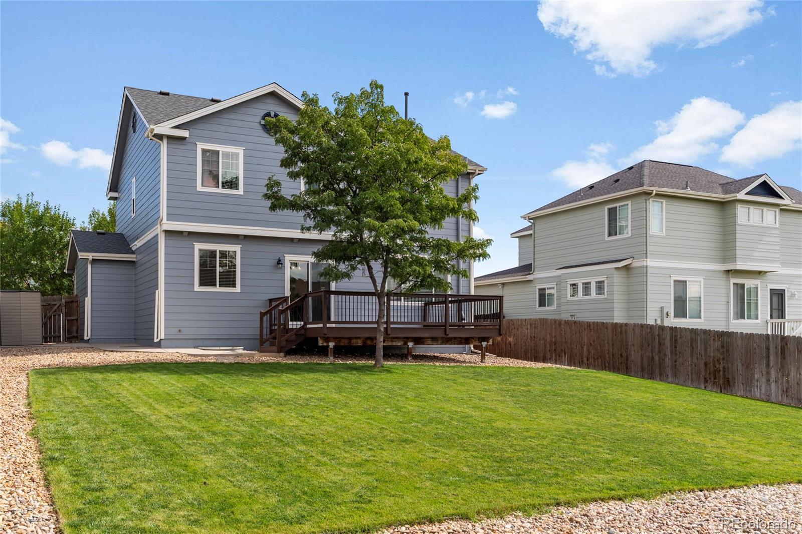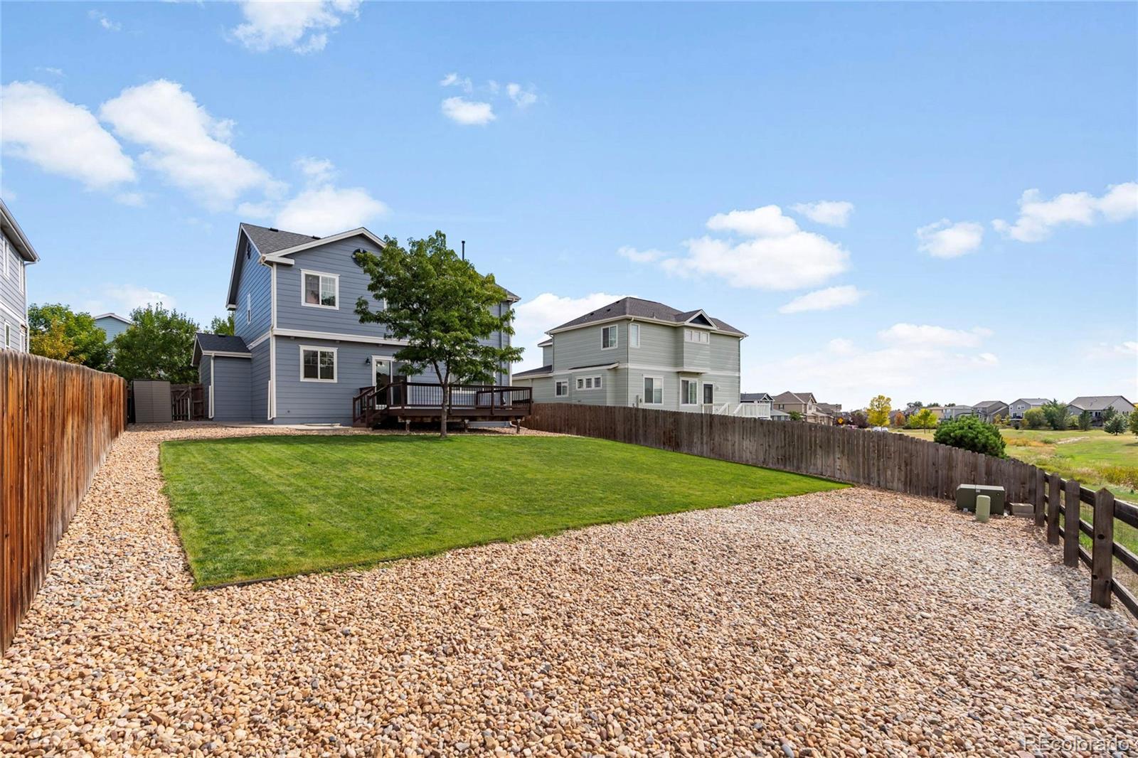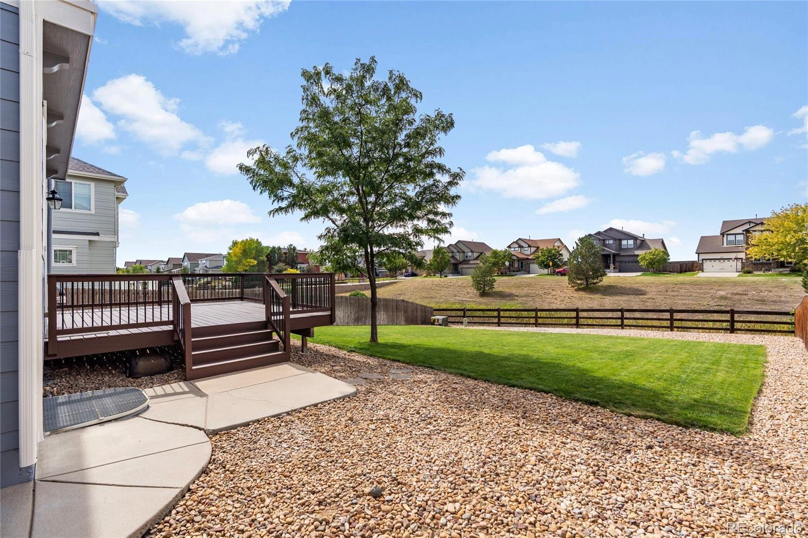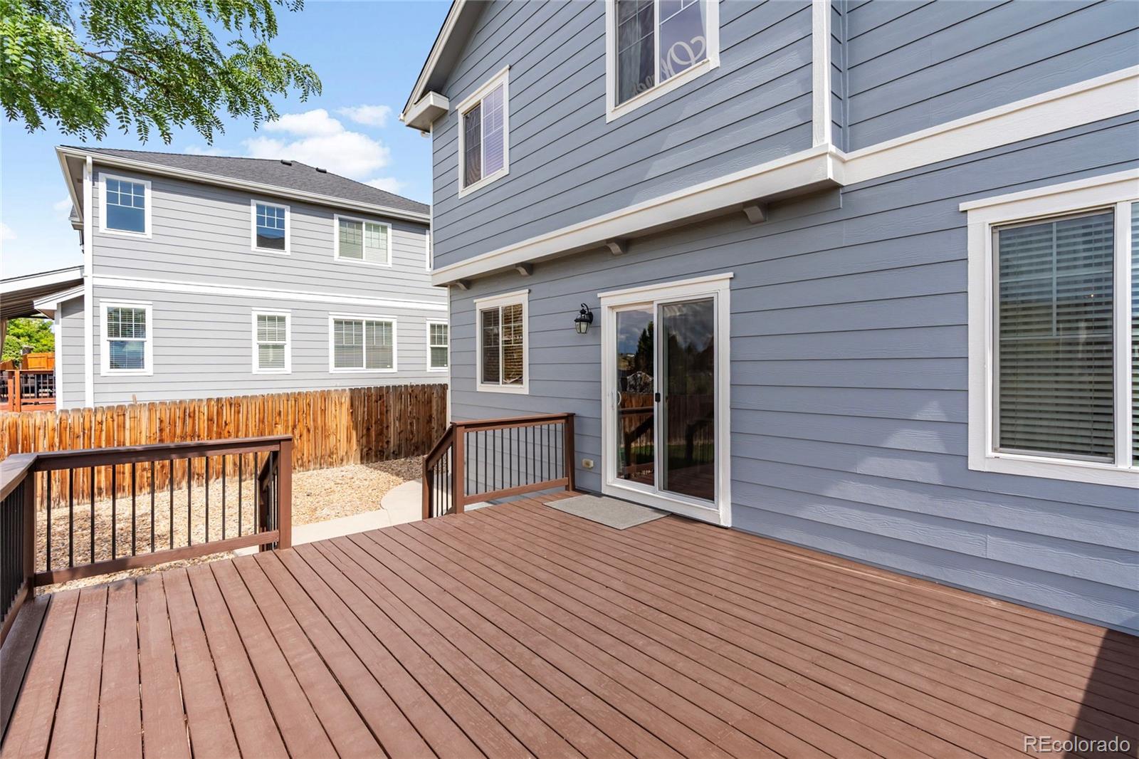 PREMIUM LOT, NEW ROOF, MOVE-IN READY! This beautifully maintained 3-bedroom, 3-bathroom home combines modern style with everyday comfort. FRESHLY PAINTED inside and out in bright, neutral tones, the home feels light and airy from the moment you enter. The spacious main living area features HARDWOOD FLOORS and an inviting OPEN LAYOUT, with a cozy gas FIREPLACE, built-in shelving, and large windows that flood the room with natural light. The kitchen and dining area are ideal for both daily living and entertaining, boasting rich wood cabinetry, STAINLESS STEEL APPLIANCES, and a convenient KITCHEN ISLAND for additional prep space. The adjoining dining area offers seamless access to the BACKYARD DECK, perfect for summer barbecues and outdoor gatherings. The BACKYARD OASIS is truly special, backing directly to OPEN SPACE and the neighborhood park, offering UNOBSTRUCTED VIEWS and a sense of privacy rarely found in suburban settings. Enjoy the expansive lawn, low-maintenance landscaping, and large elevated deck perfect for entertaining, grilling, or simply unwinding while watching the sunset over the park. With no neighbors directly behind you, it’s your own slice of serenity. Upstairs, you’ll find multiple living and relaxation spaces, including a generous LOFT or family room with warm wood accents and plenty of space for lounging or media use. The primary suite is a true retreat, offering a large, open layout with an attached en-suite, complete with a dual-sink vanity, soaking tub, and separate glass-enclosed shower. Additional bedrooms are spacious and bright, with ample closet space, complete with MOUNTAIN VIEWS, and comfort for family or guests, or even a home office. Located in a peaceful neighborhood surrounded by OPEN SPACE and WALKING TRAILS, this home offers the perfect blend of modern living and suburban tranquility, with NO METRO DISTRICT TAXES! Come experience the pride of ownership and effortless charm of this move-in ready gem, YOUR NEXT CHAPTER BEGINS HERE!
