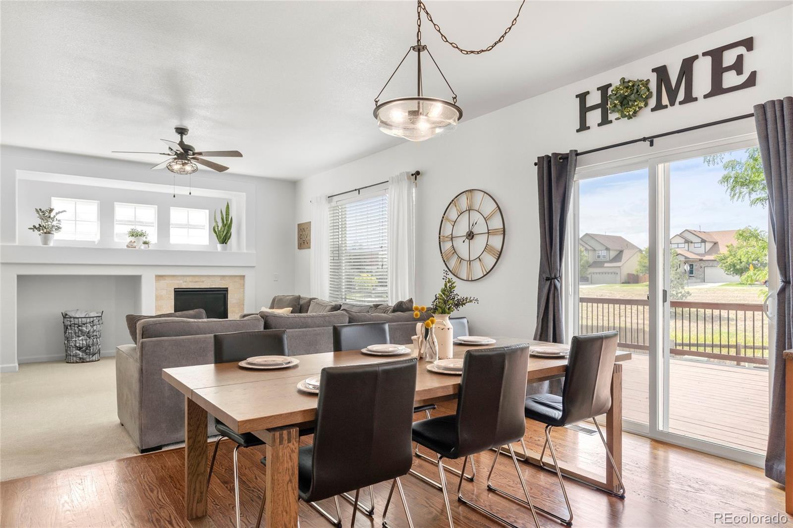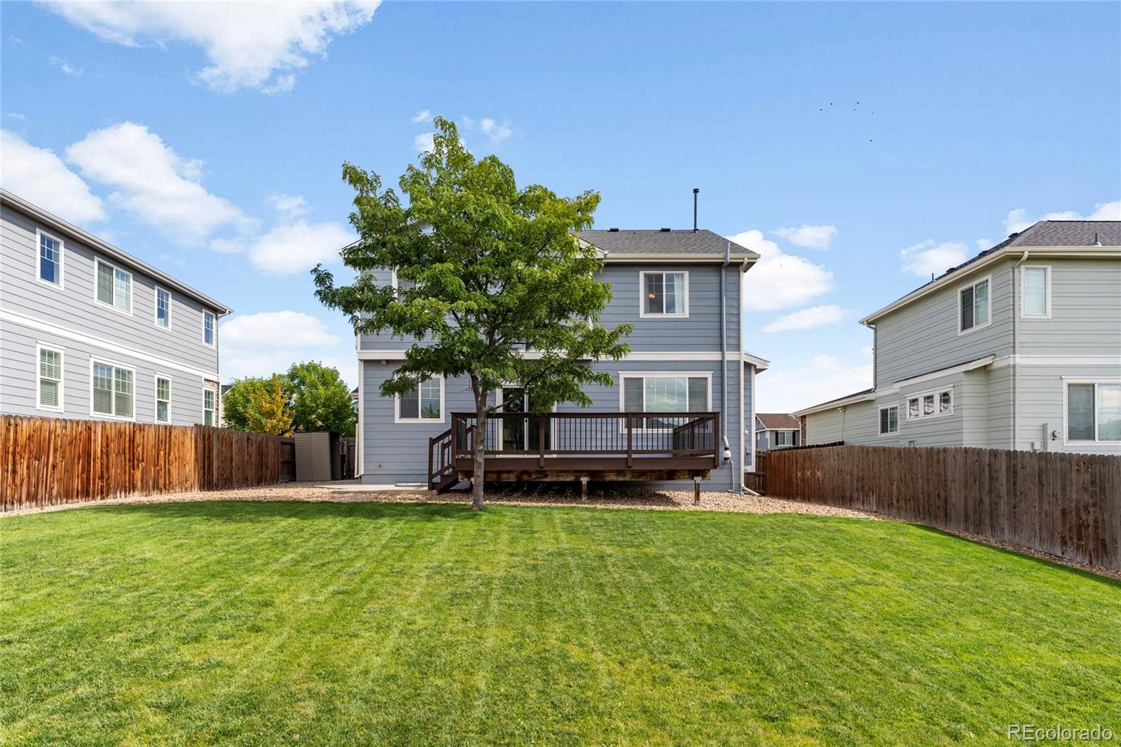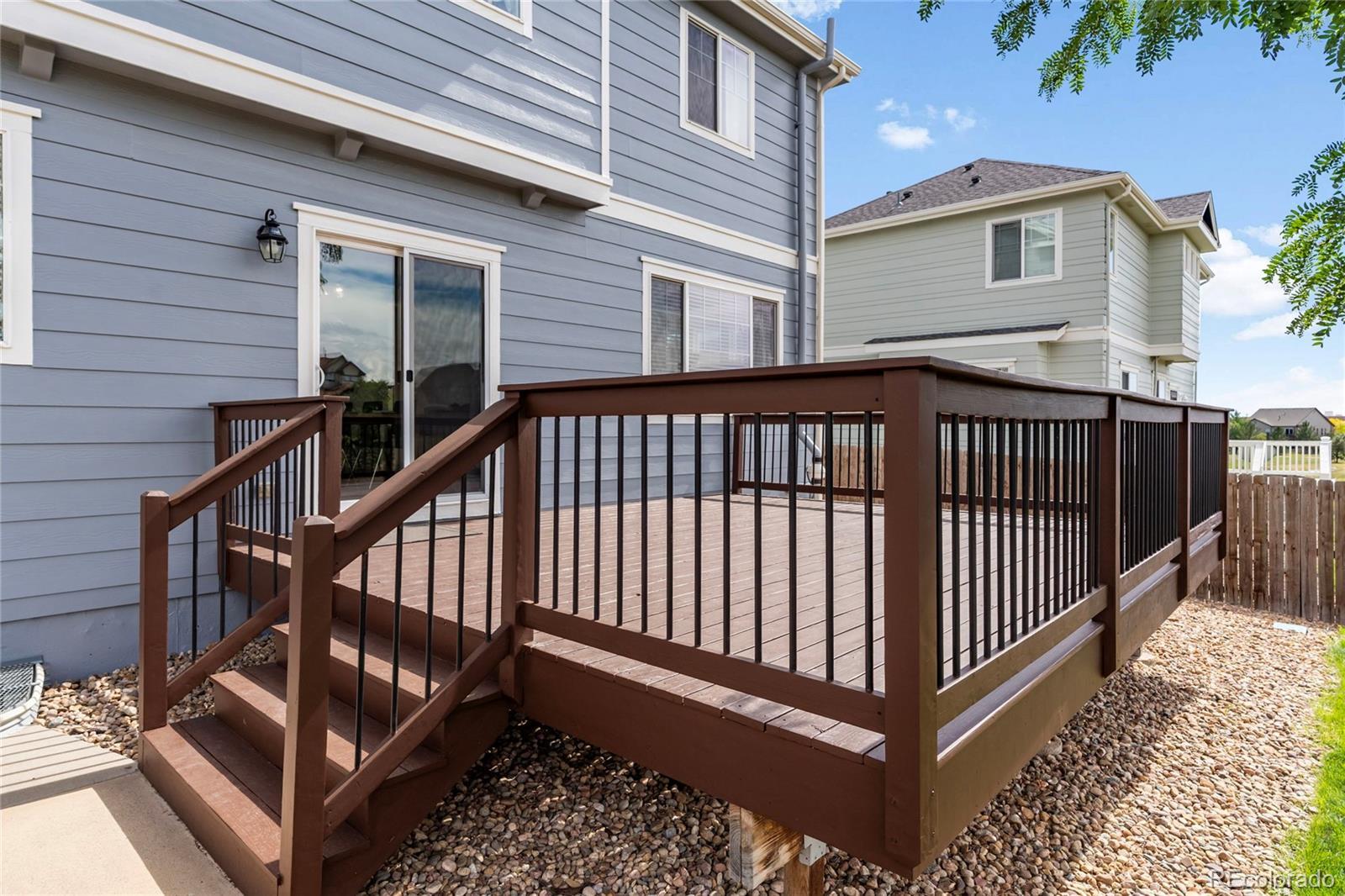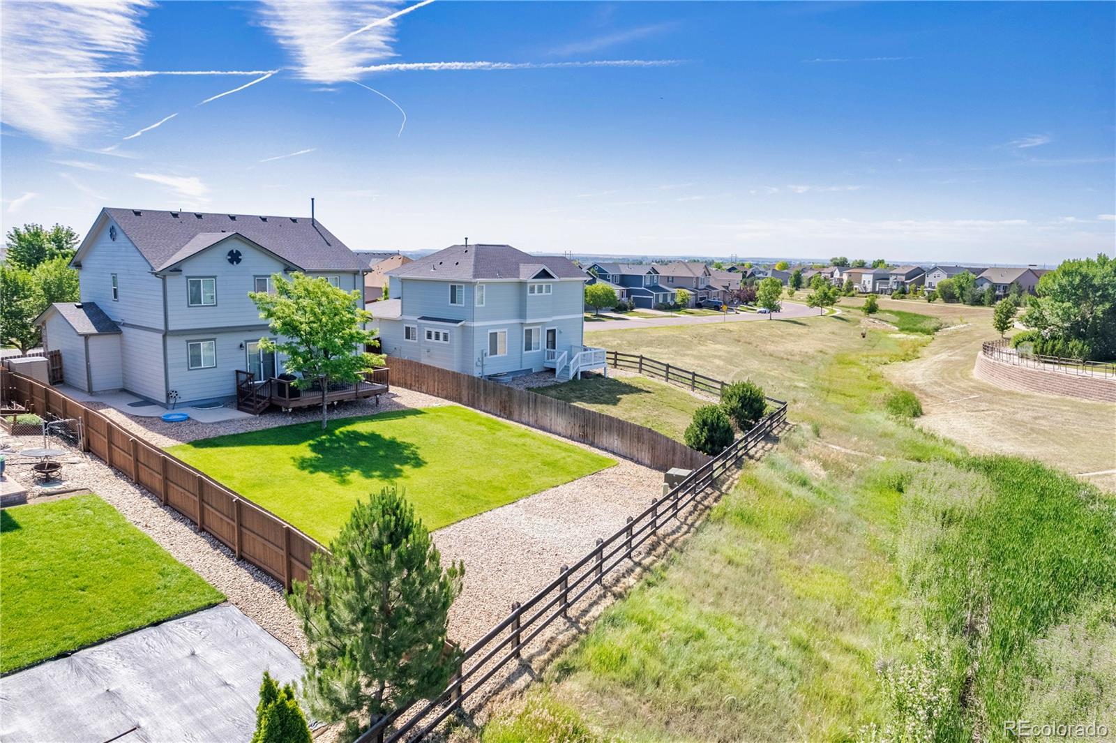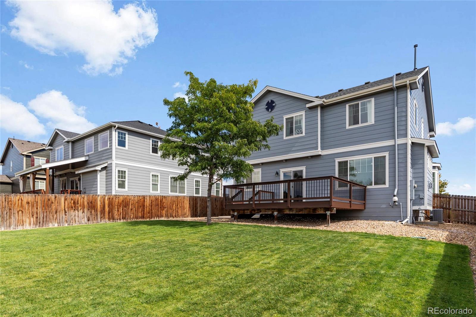 PREMIUM LOT, NEW ROOF, MOVE-IN READY! This beautifully maintained 3-bedroom, 3-bathroom home combines modern style with everyday comfort. FRESHLY PAINTED inside and out in bright, neutral tones, the home feels light and airy from the moment you enter. The spacious main living area features HARDWOOD FLOORS and an inviting OPEN LAYOUT, with a cozy gas FIREPLACE, built-in shelving, and large windows that flood the room with natural light. The kitchen and dining area are ideal for both daily living and entertaining, boasting rich wood cabinetry, STAINLESS STEEL APPLIANCES, and a convenient KITCHEN ISLAND for additional prep space. The adjoining dining area offers seamless access to the BACKYARD DECK, perfect for summer barbecues and outdoor gatherings. The BACKYARD OASIS is truly special, backing directly to OPEN SPACE and the neighborhood park, offering UNOBSTRUCTED VIEWS and a sense of privacy rarely found in suburban settings. Enjoy the expansive lawn, low-maintenance landscaping, and large elevated deck perfect for entertaining, grilling, or simply unwinding while watching the sunset over the park. With no neighbors directly behind you, it’s your own slice of serenity. Upstairs, you’ll find multiple living and relaxation spaces, including a generous LOFT or family room with warm wood accents and plenty of space for lounging or media use. The primary suite is a true retreat, offering a large, open layout with an attached en-suite, complete with a dual-sink vanity, soaking tub, and separate glass-enclosed shower. Additional bedrooms are spacious and bright, with ample closet space, complete with MOUNTAIN VIEWS, and comfort for family or guests, or even a home office. Located in a peaceful neighborhood surrounded by OPEN SPACE and WALKING TRAILS, this home offers the perfect blend of modern living and suburban tranquility, with NO METRO DISTRICT TAXES! Come experience the pride of ownership and effortless charm of this move-in ready gem, YOUR NEXT CHAPTER BEGINS HERE!