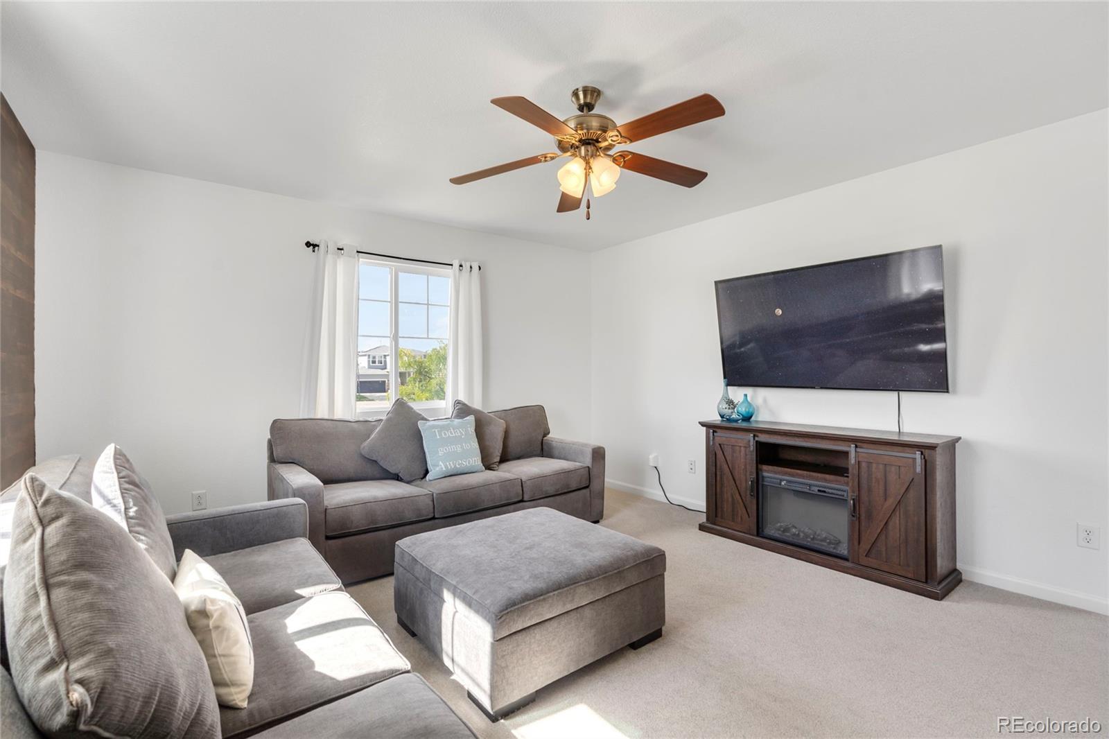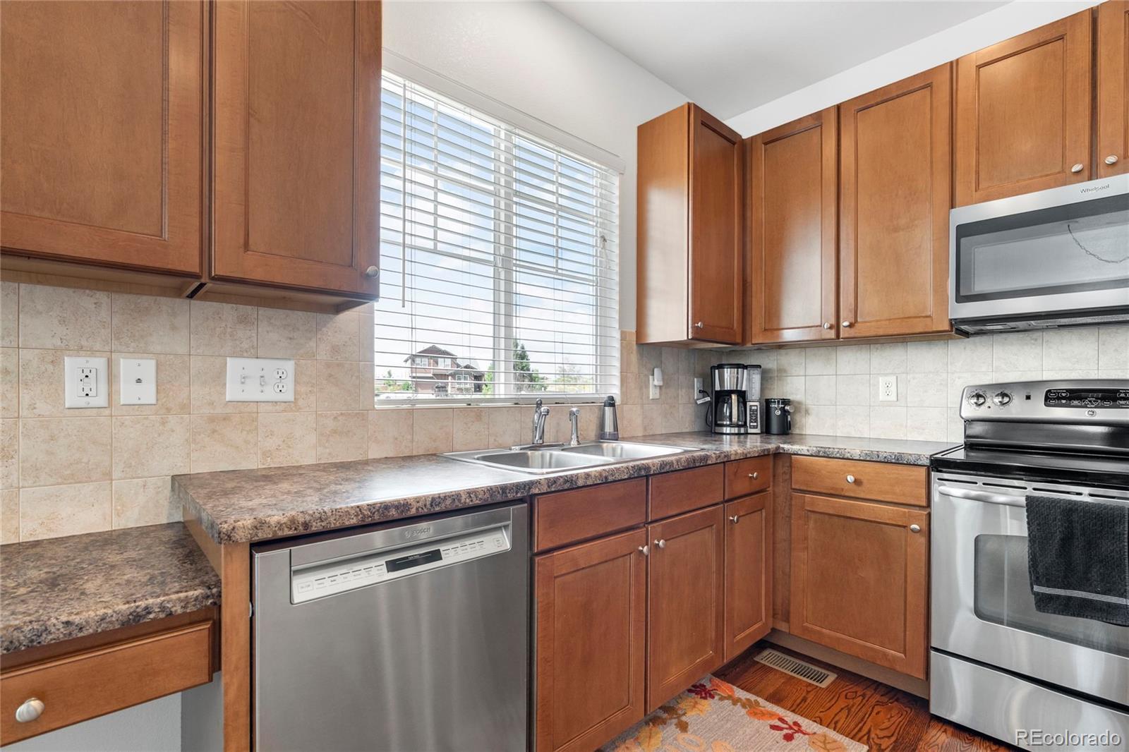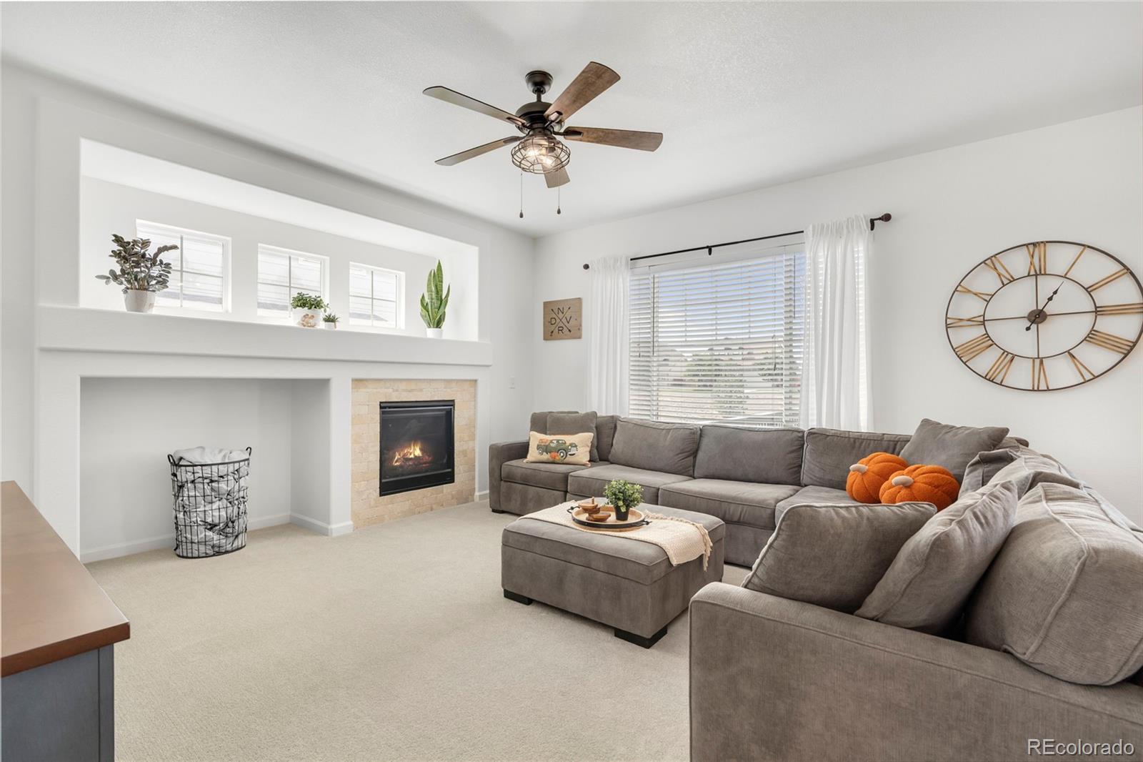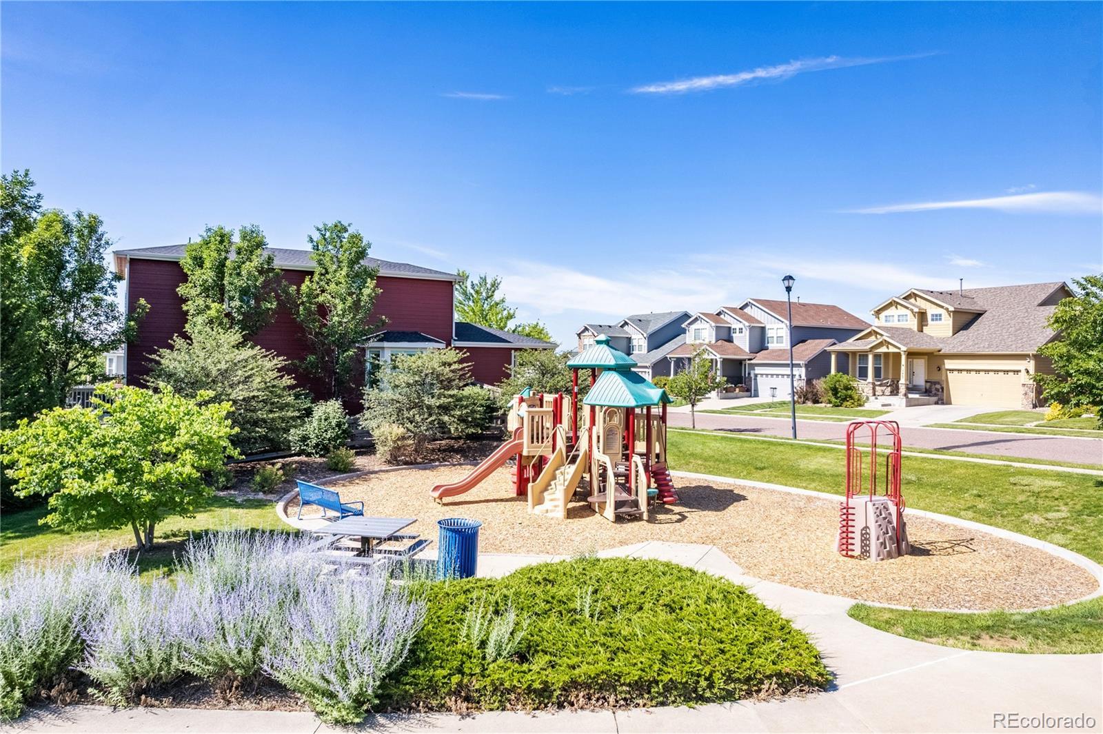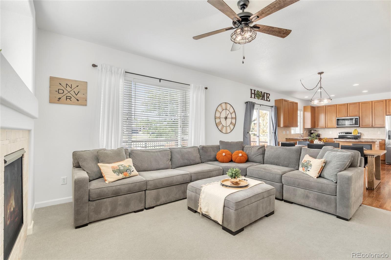PREMIUM LOT, NEW ROOF, MOVE-IN READY! This beautifully maintained 3-bedroom, 3-bathroom home combines modern style with everyday comfort. FRESHLY PAINTED inside and out in bright, neutral tones, the home feels light and airy from the moment you enter. The spacious main living area features HARDWOOD FLOORS and an inviting OPEN LAYOUT, with a cozy gas FIREPLACE, built-in shelving, and large windows that flood the room with natural light. The kitchen and dining area are ideal for both daily living and entertaining, boasting rich wood cabinetry, STAINLESS STEEL APPLIANCES, and a convenient KITCHEN ISLAND for additional prep space. The adjoining dining area offers seamless access to the BACKYARD DECK, perfect for summer barbecues and outdoor gatherings. The BACKYARD OASIS is truly special, backing directly to OPEN SPACE and the neighborhood park, offering UNOBSTRUCTED VIEWS and a sense of privacy rarely found in suburban settings. Enjoy the expansive lawn, low-maintenance landscaping, and large elevated deck perfect for entertaining, grilling, or simply unwinding while watching the sunset over the park. With no neighbors directly behind you, it’s your own slice of serenity. Upstairs, you’ll find multiple living and relaxation spaces, including a generous LOFT or family room with warm wood accents and plenty of space for lounging or media use. The primary suite is a true retreat, offering a large, open layout with an attached en-suite, complete with a dual-sink vanity, soaking tub, and separate glass-enclosed shower. Additional bedrooms are spacious and bright, with ample closet space, complete with MOUNTAIN VIEWS, and comfort for family or guests, or even a home office. Located in a peaceful neighborhood surrounded by OPEN SPACE and WALKING TRAILS, this home offers the perfect blend of modern living and suburban tranquility, with NO METRO DISTRICT TAXES! Come experience the pride of ownership and effortless charm of this move-in ready gem, YOUR NEXT CHAPTER BEGINS HERE!