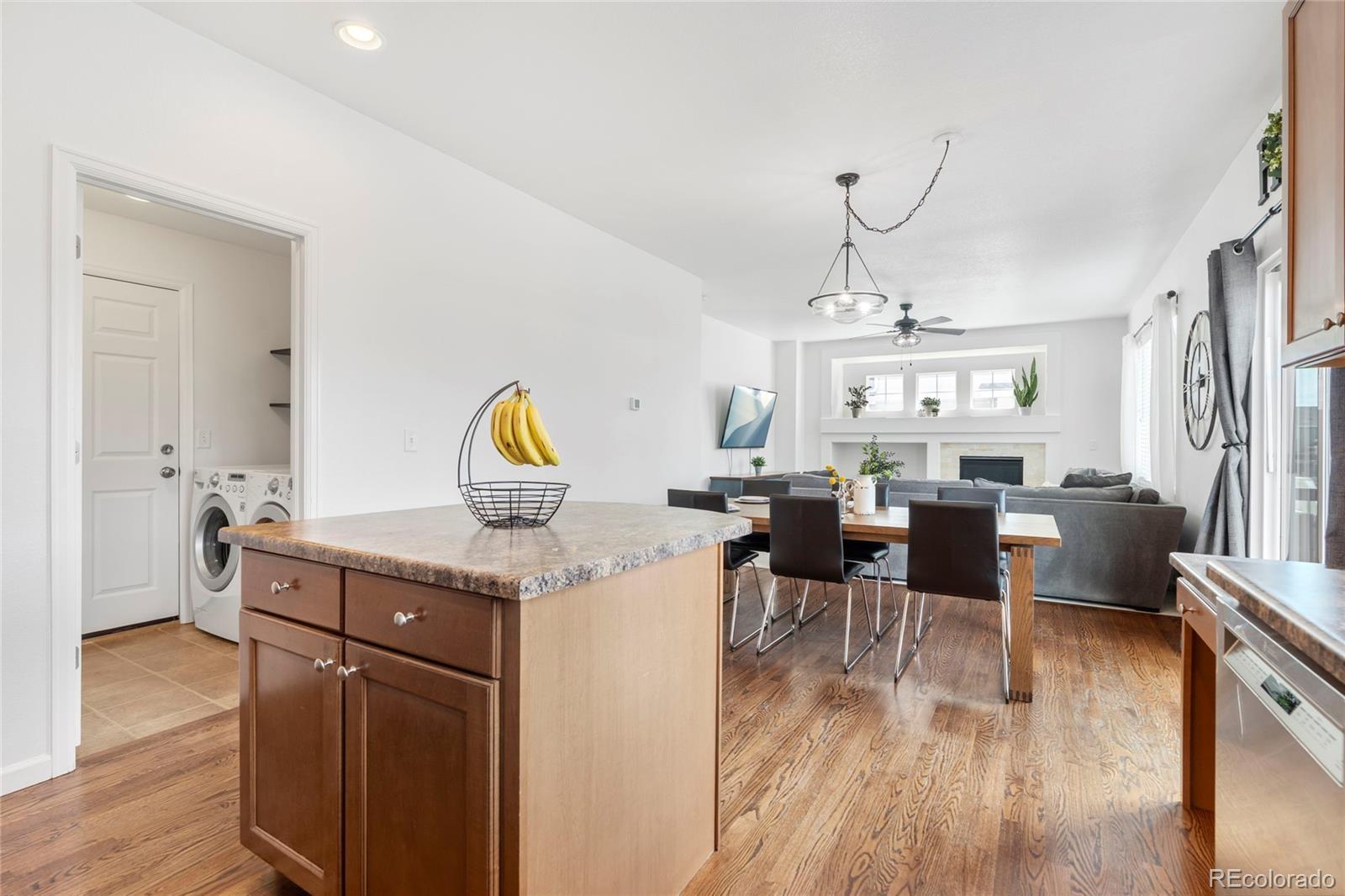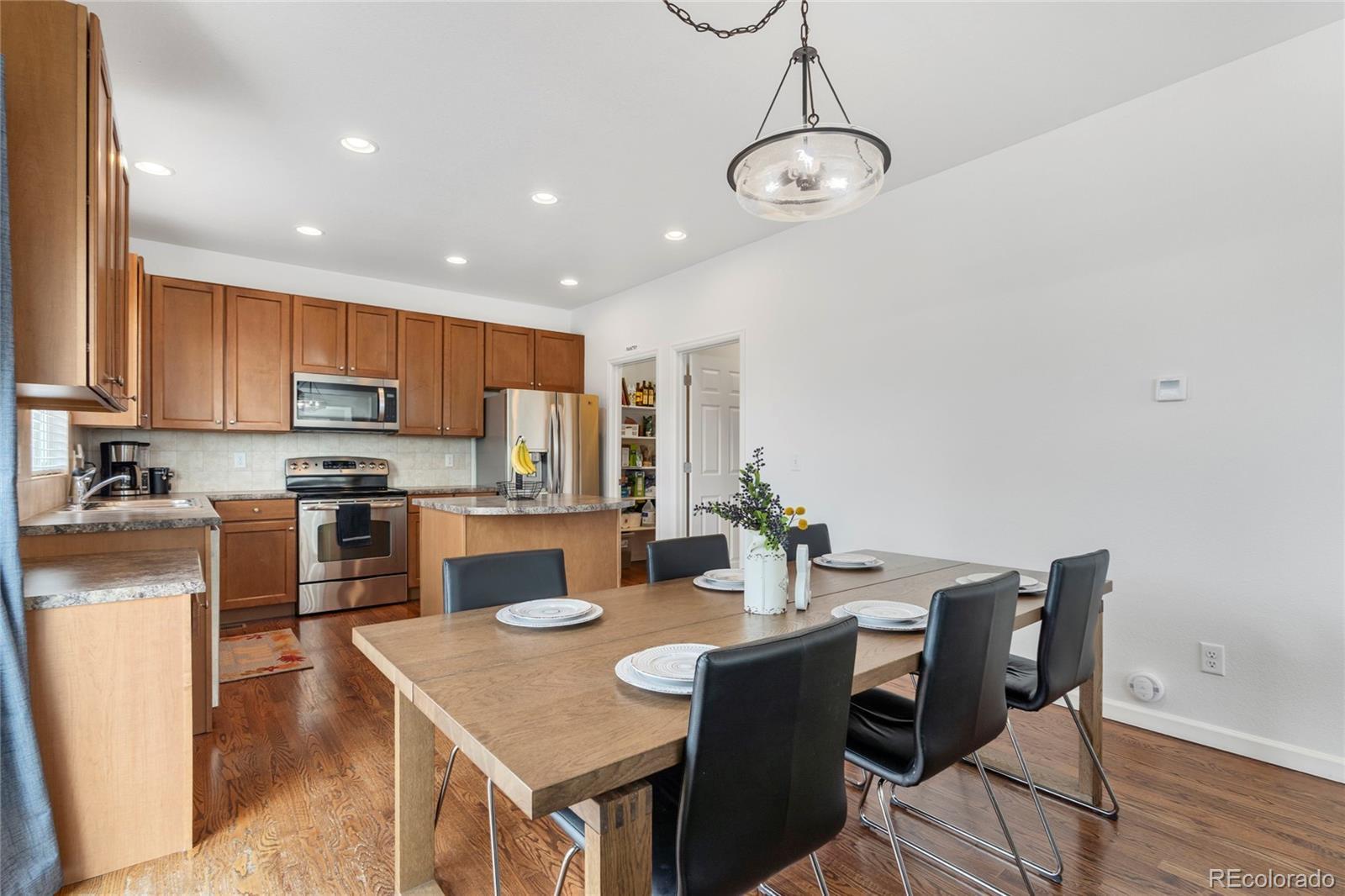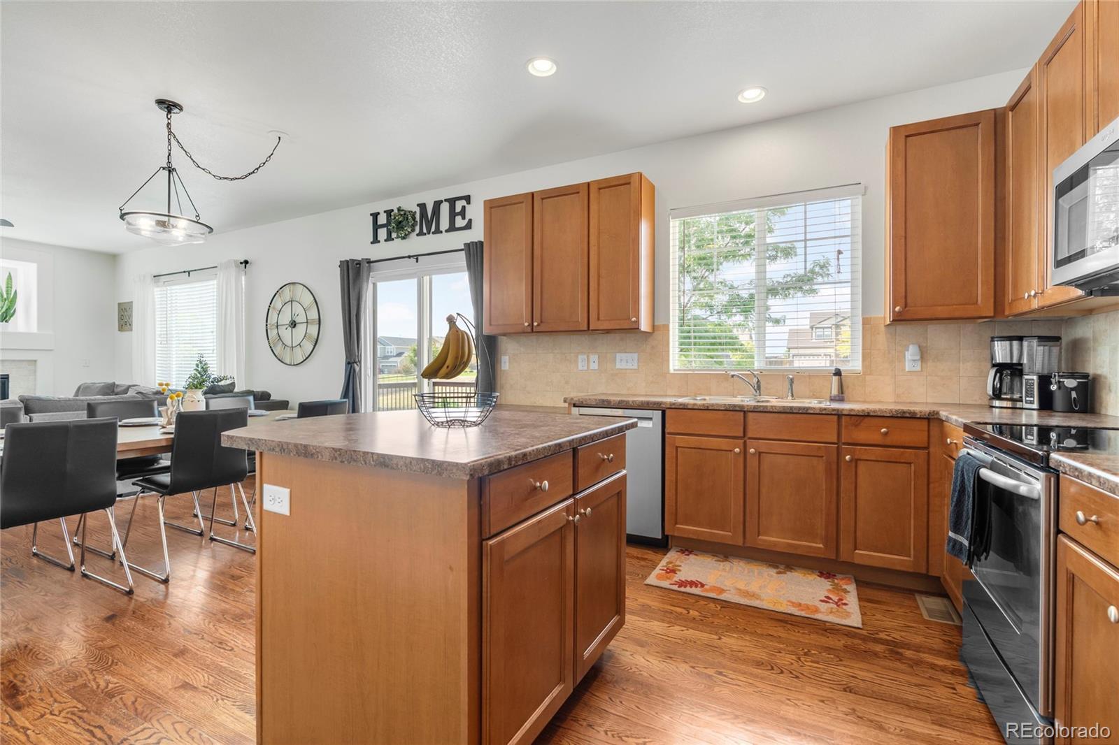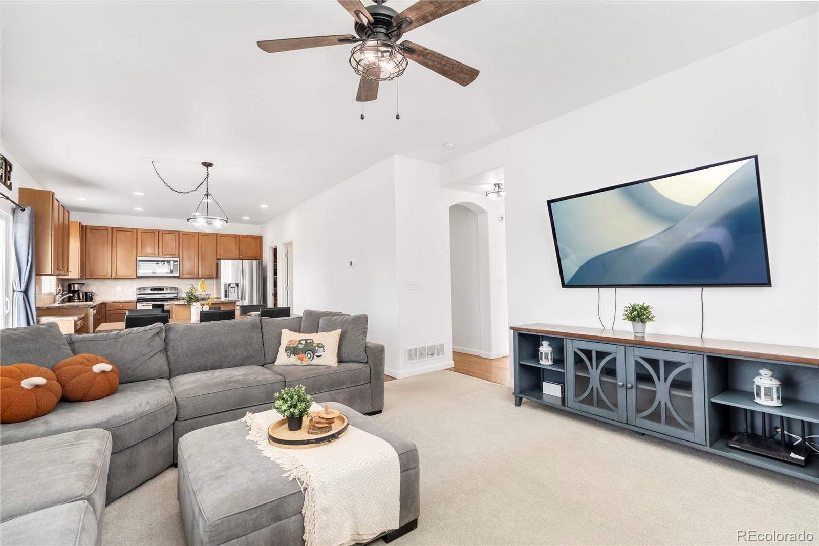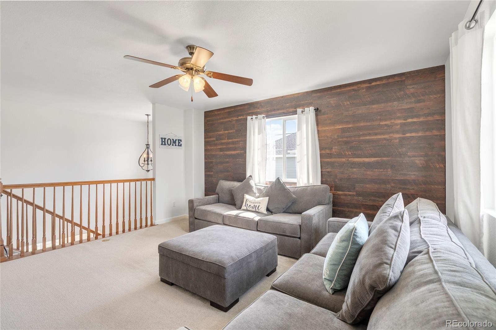 PREMIUM LOT, NEW ROOF, MOVE-IN READY! This beautifully maintained 3-bedroom, 3-bathroom home combines modern style with everyday comfort. FRESHLY PAINTED inside and out in bright, neutral tones, the home feels light and airy from the moment you enter. The spacious main living area features HARDWOOD FLOORS and an inviting OPEN LAYOUT, with a cozy gas FIREPLACE, built-in shelving, and large windows that flood the room with natural light. The kitchen and dining area are ideal for both daily living and entertaining, boasting rich wood cabinetry, STAINLESS STEEL APPLIANCES, and a convenient KITCHEN ISLAND for additional prep space. The adjoining dining area offers seamless access to the BACKYARD DECK, perfect for summer barbecues and outdoor gatherings. The BACKYARD OASIS is truly special, backing directly to OPEN SPACE and the neighborhood park, offering UNOBSTRUCTED VIEWS and a sense of privacy rarely found in suburban settings. Enjoy the expansive lawn, low-maintenance landscaping, and large elevated deck perfect for entertaining, grilling, or simply unwinding while watching the sunset over the park. With no neighbors directly behind you, it’s your own slice of serenity. Upstairs, you’ll find multiple living and relaxation spaces, including a generous LOFT or family room with warm wood accents and plenty of space for lounging or media use. The primary suite is a true retreat, offering a large, open layout with an attached en-suite, complete with a dual-sink vanity, soaking tub, and separate glass-enclosed shower. Additional bedrooms are spacious and bright, with ample closet space, complete with MOUNTAIN VIEWS, and comfort for family or guests, or even a home office. Located in a peaceful neighborhood surrounded by OPEN SPACE and WALKING TRAILS, this home offers the perfect blend of modern living and suburban tranquility, with NO METRO DISTRICT TAXES! Come experience the pride of ownership and effortless charm of this move-in ready gem, YOUR NEXT CHAPTER BEGINS HERE!