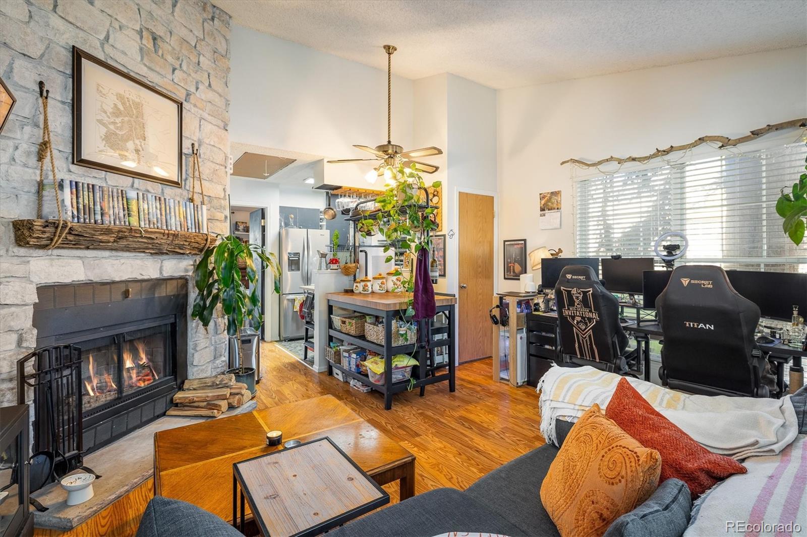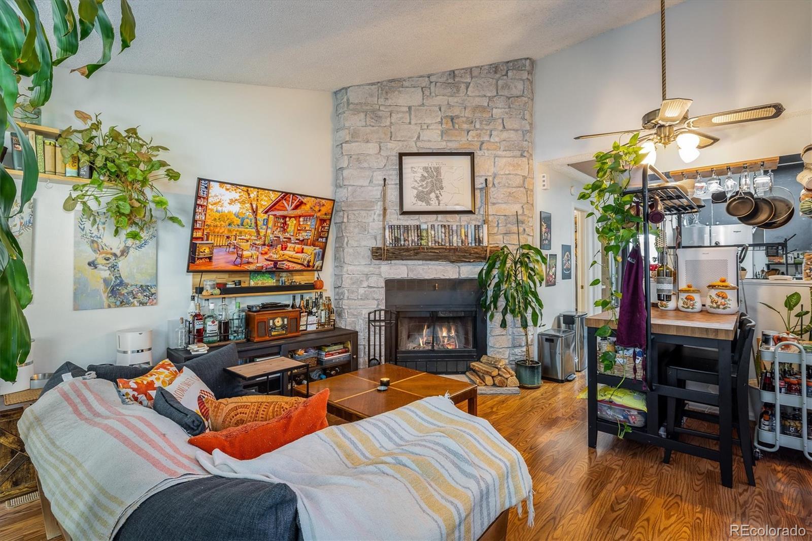 ****Seller offering a $5000 concession for rate buy-down or closing costs!!****Charming 1 bed 1 bath end unit townhome with fantastic, enclosed patio area, backing to community green belt. No one above or below you and the HOA fee includes a great pool! Home has everything you need to be comfortable: fenced private patio, full-size washer/dryer in unit, cozy wood fireplace, vaulted ceilings and brand-new AC unit. All Appliances and shelving included! Reserved parking + additional guest parking. Abundance of storage with a storage shed + a crawl space that runs full length & width of the home with shelves for all your storage needs. Cobblestone Park is directly across the street. Great Location: Close to Downtown and Easy access to HWY 36 and I-25. Come see this home today!