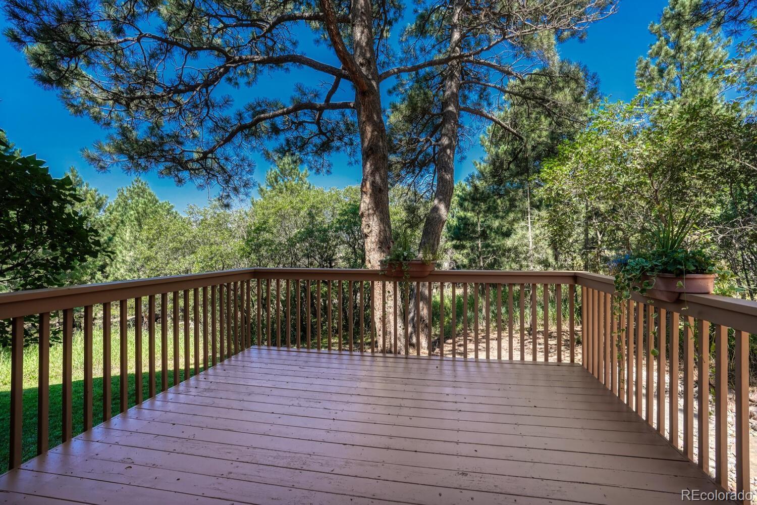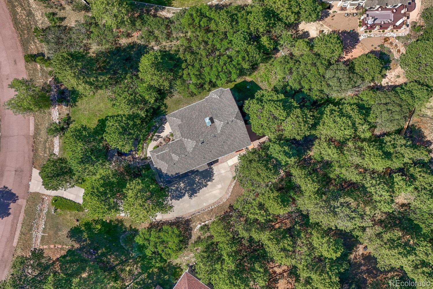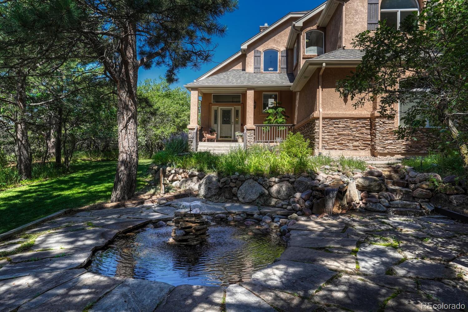 Warm and Welcoming Home with Serene Setting and Mountain Views. Tucked away in a quiet cul-de-sac, this beautiful home offers breathtaking, unobstructed views of Pikes Peak and a rare sense of peace and privacy. Surrounded by mature trees and frequent wildlife sightings, the unique lot provides a perfect balance of shade and natural light throughout the home. Enjoy a professionally landscaped yard featuring a tranquil rock stream and pond—ideal for relaxing or entertaining. Located just outside of Woodmoor with no HOA, the property offers flexibility in a peaceful setting while still being just minutes away from town conveniences. Inside, the oversized primary suite is a true retreat with vaulted ceilings, plant shelves, a cozy gas fireplace, and stunning mountain views. The remodeled ensuite bath boasts heated tile floors, a jetted soaking tub, custom frameless shower, and granite countertops. Upstairs, two additional bedrooms also feature vaulted ceilings and charming plant shelves, while a versatile loft space offers flexibility for a home gym, office, or playroom. The main level welcomes you with beautiful wood floors, a remodeled powder room, and a stunning kitchen designed for both beauty and function. The formal dining room with elegant trayed ceilings is perfect for intimate dinners or entertaining guests. Additional highlights include: *Built-in bookshelves in the home office *South-facing driveway for quick snow melt *New roof and gutters (2024) *Newer furnace and AC *HOT TUB-ready cement pad with electrical already in place With tall ceilings throughout, thoughtful upgrades, and postcard views in nearly every direction, this home is a rare find. Whether you're sipping morning coffee while watching deer wander through the trees, or soaking in mountain views at sunset, this property is more than a home—it’s a sanctuary. Don’t miss the rare opportunity to own a slice of Colorado paradise!