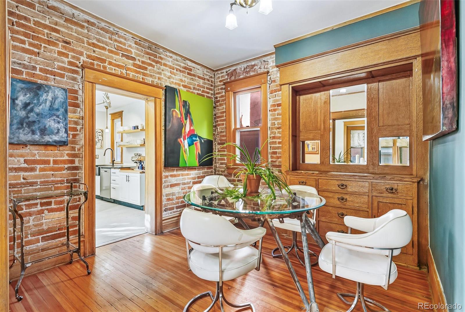 This charming Mission style brick Victorian boasts original stained glass, bay window, oak floors, exposed brick, built-ins and architectural detail. There's a modern, new kitchen with a large pantry, skylight and entry closet, and compliments the vintage aesthetic of this special home perfectly. For entertaining, the glass double doors in the kitchen open out to a large deck and private, low-maintenance yard with garden beds. The main level opens from the foyer to a parlor with the original fireplace and pocket doors, living room with bay window, dining room with built in buffet, exposed brick and a convenient half bath. Upstairs are 3 bedrooms, 2 roof top balconies, and a spacious 5 piece bath with double sinks, walk in shower, footed tub and a skylight. There's plenty of room for storage and/or workshop in the unfinished basement and a detached 2 car garage with newer door and opener. Quiet mid-block location has great access to all the main streets. Walkable location near Congress Park, Botanical Gardens, several shops and restaurants.