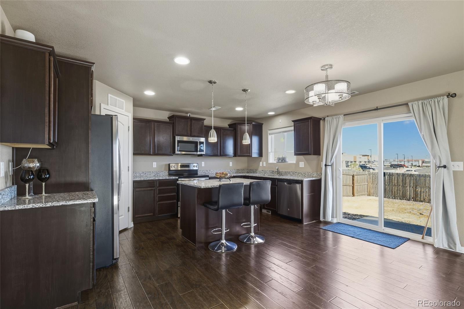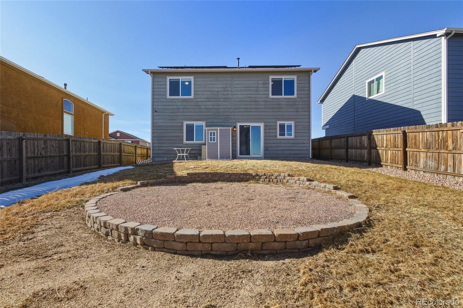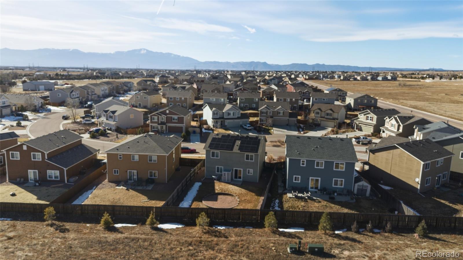Set on a quiet cul-de-sac in Peyton, Colorado, this beautifully maintained two-story home offers space, efficiency, and access to award-winning schools, along with major energy-saving upgrades. Improvements include a brand NEW roof with impact-resistant shingles and fully owned solar panels that greatly reduce your monthly utility costs. Your light-filled living room flows into an open-concept kitchen featuring stainless steel appliances creating a functional layout ideal for everyday living and entertaining. The kitchen features a pantry and an island with seating, ample counter space, and a natural connection to the dining area. Step outside to the expansive backyard, perfect for BBQs, outdoor gatherings, play space, and relaxing in the Colorado sunshine. Upstairs, the primary bedroom provides a private retreat with an en-suite bathroom. Two additional bedrooms, a full bathroom, and an upstairs laundry room with generous storage complete the upper level. Located near award-winning Peyton schools, shopping, grocery stores, and Highway 24, this home also offers exclusive access to neighborhood amenities including a clubhouse, indoor and outdoor pools, and a fitness center. This is your fantastic opportunity to own a well-appointed home in one of Peyton’s most desirable communities. Schedule your showing today!