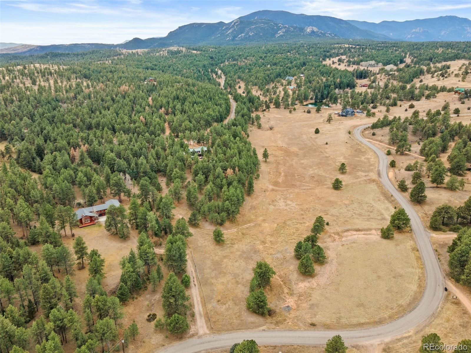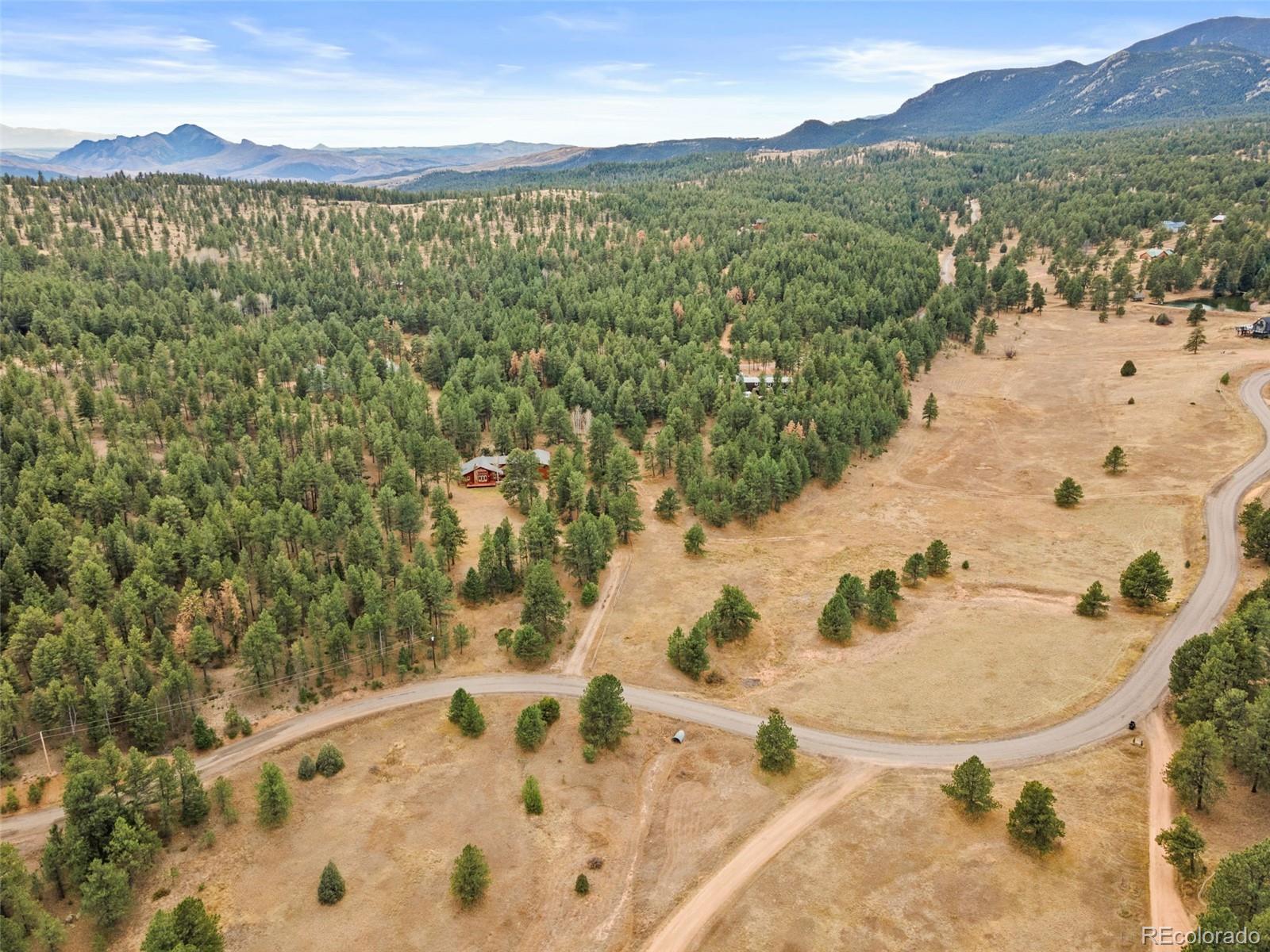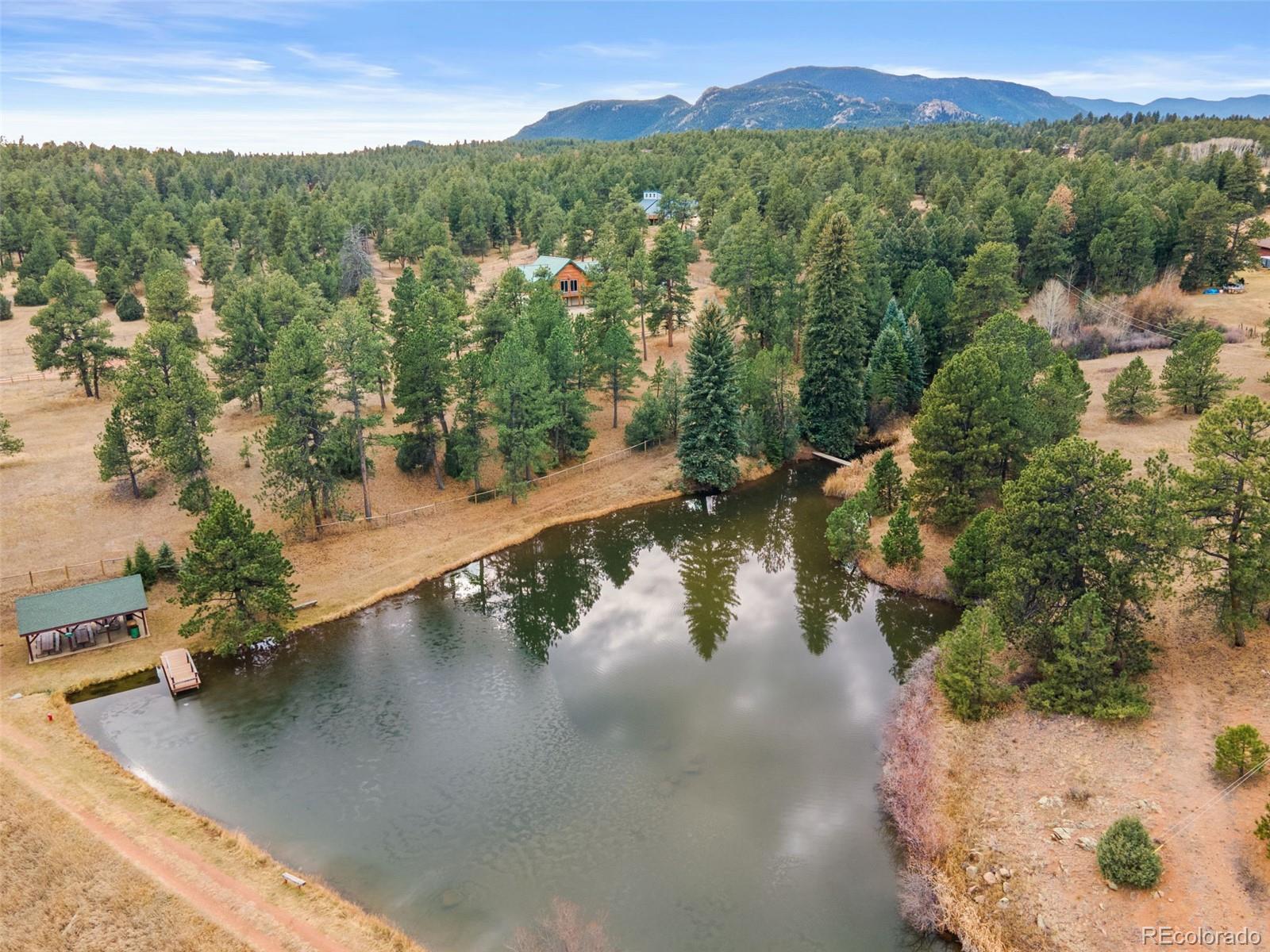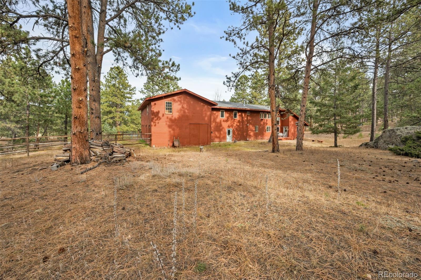 Welcome to Wagley Ranch, a rare 10-acre retreat in Spring Creek Ranch near Buffalo Creek. Surrounded by Pike–San Isabel National Forest with direct access to the Colorado Trail, this property offers privacy, scenery, and usable land with a blend of pasture and mature ponderosa pines. The home sits at the end of a wide meadow with views of Long Scraggy Peak and Cathedral Spires from generous front and rear decks. The 2-story, 5-bed, 3-bath home features a vaulted great room with full-height windows, a corner fireplace, and a bay window overlooking the meadow. Bedrooms and kitchen flank the great room, with stairs leading to a loft-style study and upper-level bedrooms over the attached oversized 2-car garage. The home connects directly to the barn for easy access through all structures. The impressive 24’ x 48’ two-story barn includes a 1,200 sq ft loft, three stalls opening to a corral and pasture, and a 12’ wide drive-through lane large enough for tractors or RVs. Ideal for horses, equipment, workshop space, or future creative use. The oversized garage offers even more storage and workspace. Community amenities include a stocked pond for fishing, canoeing, paddle boarding, picnics, and neighborhood events—all a short walk away. A rare opportunity to own acreage, views, and functional ranch infrastructure in a peaceful mountain setting