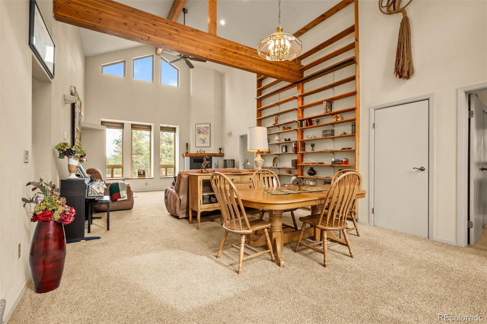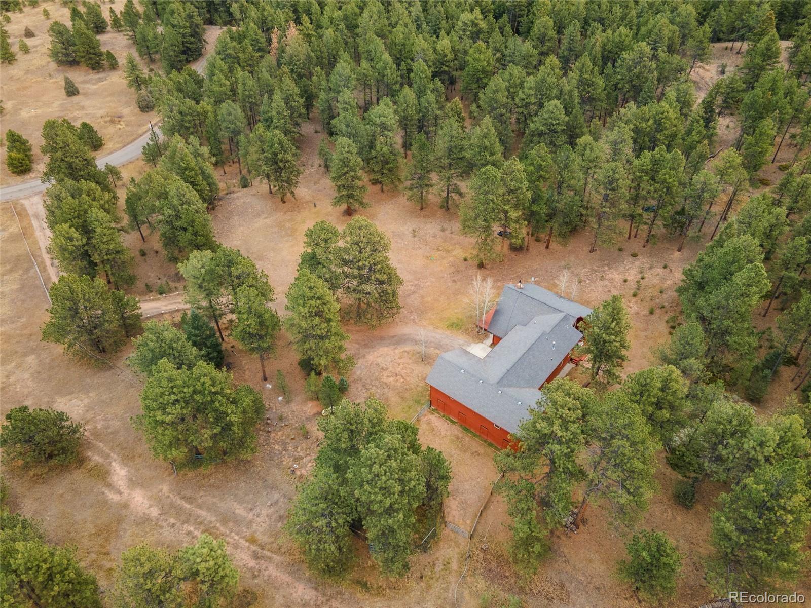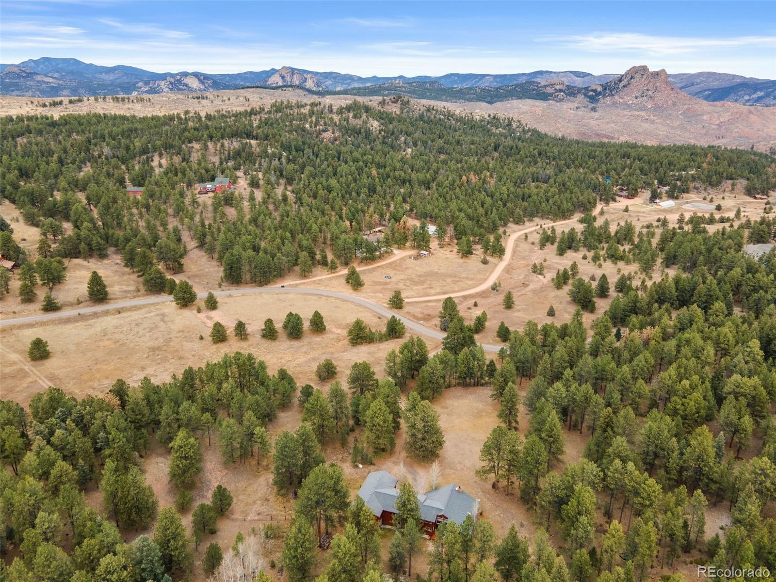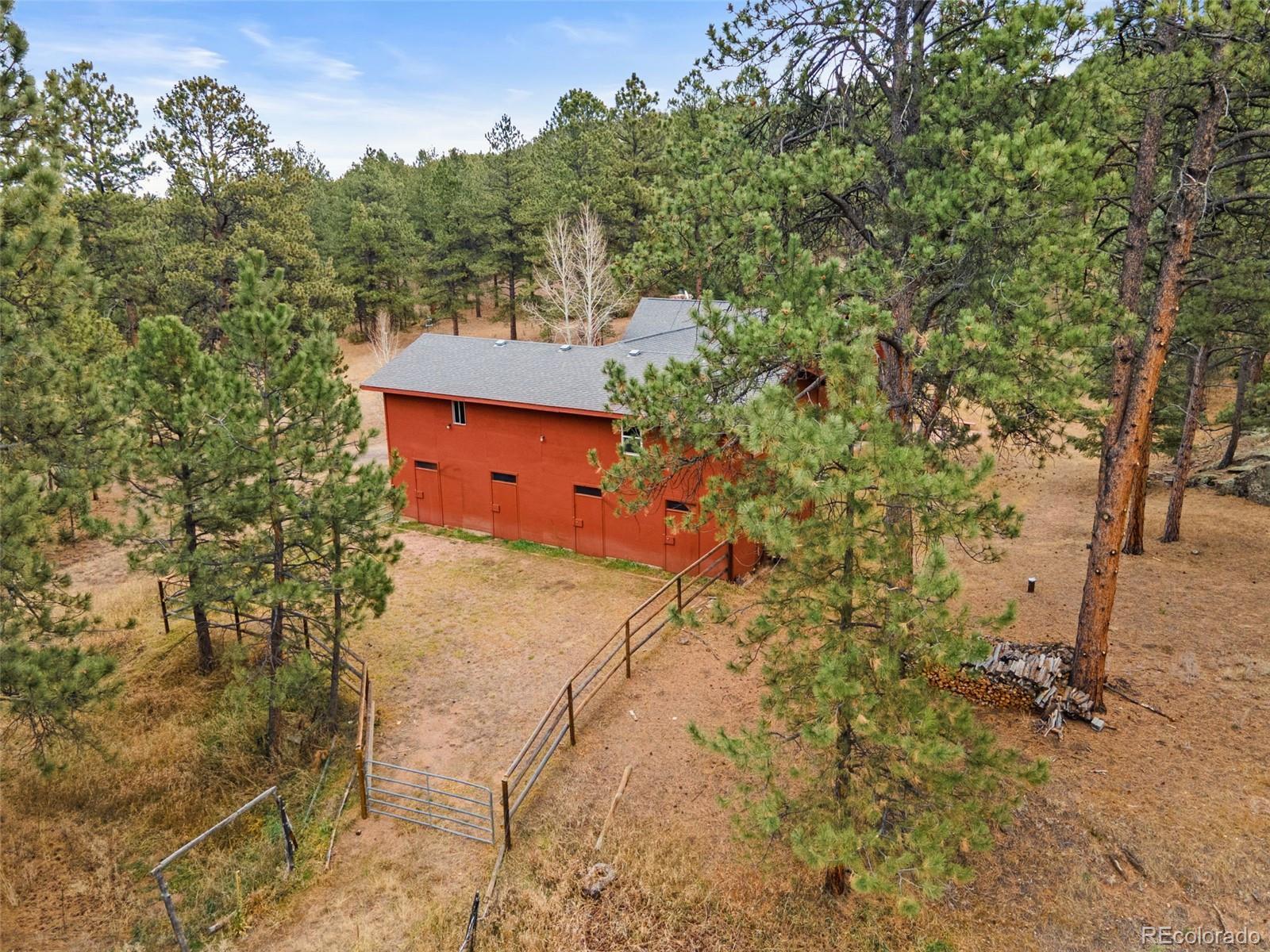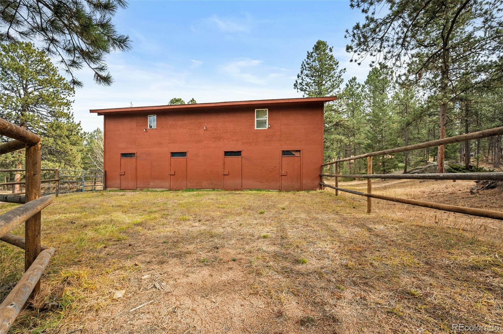 Welcome to Wagley Ranch, a rare 10-acre retreat in Spring Creek Ranch near Buffalo Creek. Surrounded by Pike–San Isabel National Forest with direct access to the Colorado Trail, this property offers privacy, scenery, and usable land with a blend of pasture and mature ponderosa pines. The home sits at the end of a wide meadow with views of Long Scraggy Peak and Cathedral Spires from generous front and rear decks. The 2-story, 5-bed, 3-bath home features a vaulted great room with full-height windows, a corner fireplace, and a bay window overlooking the meadow. Bedrooms and kitchen flank the great room, with stairs leading to a loft-style study and upper-level bedrooms over the attached oversized 2-car garage. The home connects directly to the barn for easy access through all structures. The impressive 24’ x 48’ two-story barn includes a 1,200 sq ft loft, three stalls opening to a corral and pasture, and a 12’ wide drive-through lane large enough for tractors or RVs. Ideal for horses, equipment, workshop space, or future creative use. The oversized garage offers even more storage and workspace. Community amenities include a stocked pond for fishing, canoeing, paddle boarding, picnics, and neighborhood events—all a short walk away. A rare opportunity to own acreage, views, and functional ranch infrastructure in a peaceful mountain setting