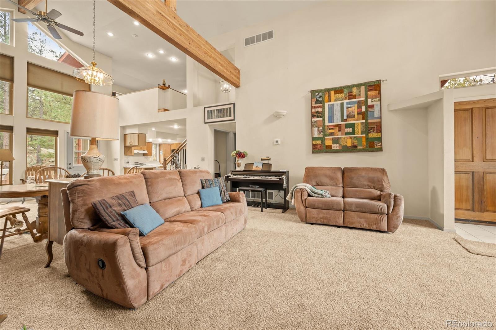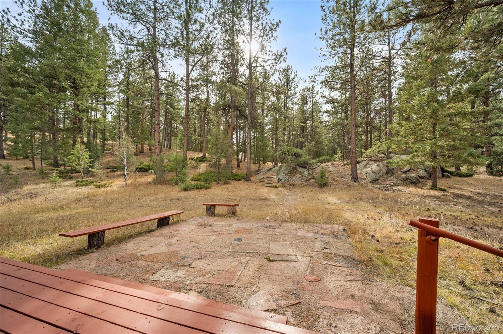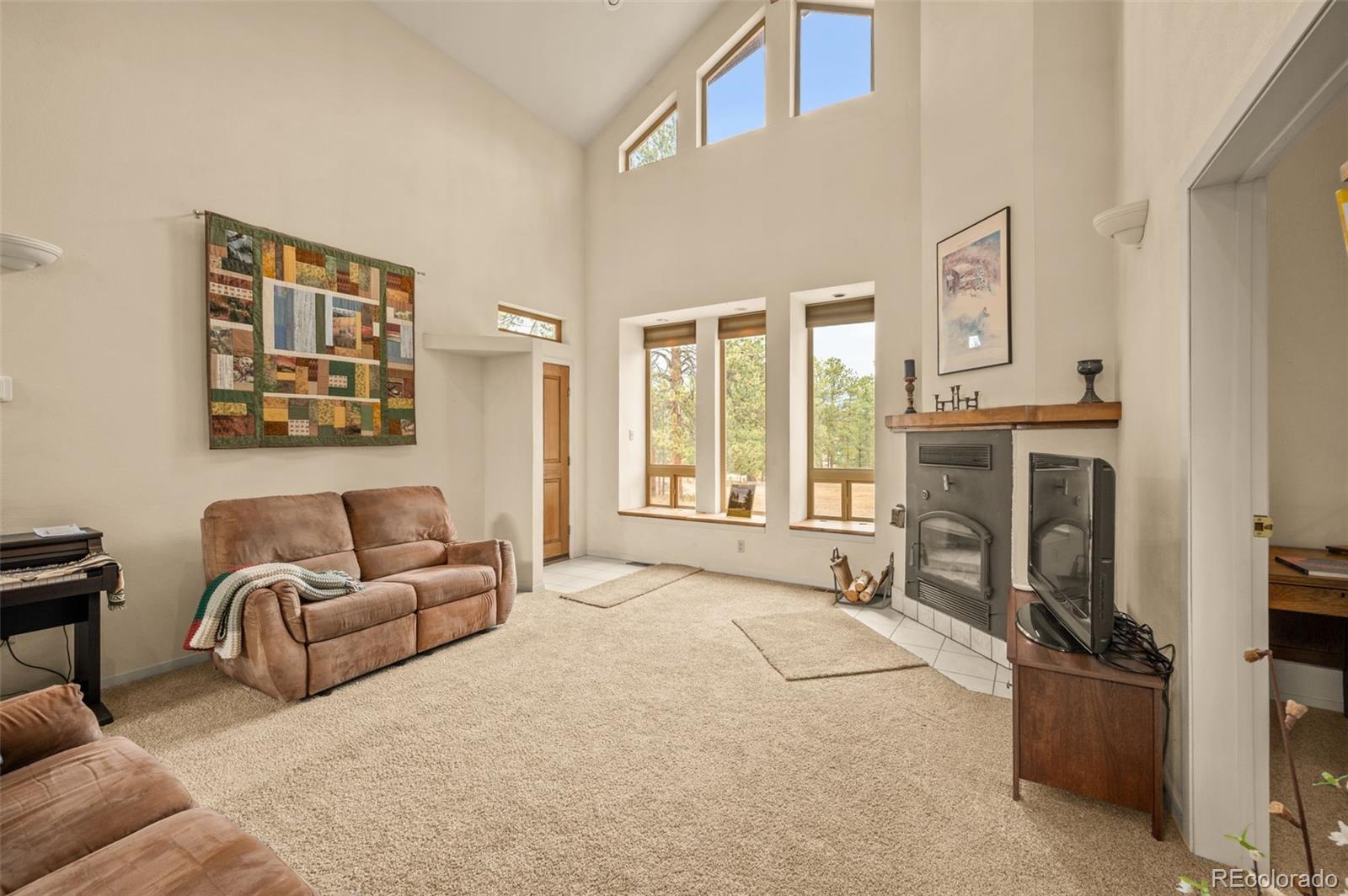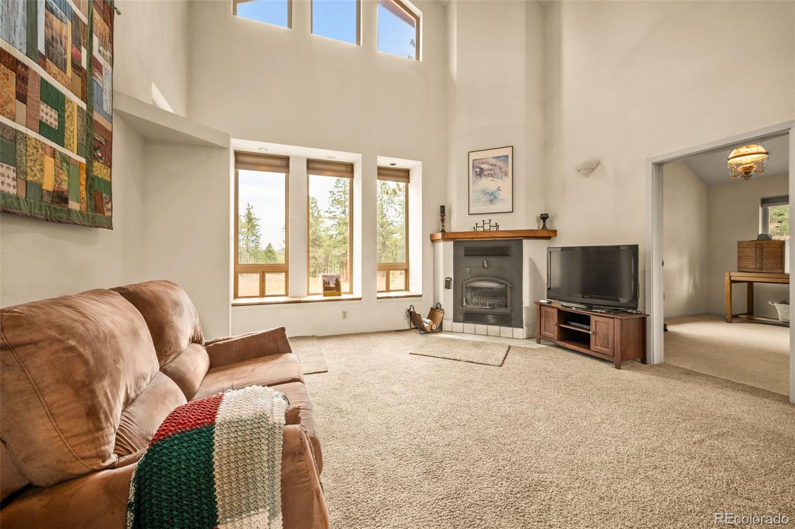 Welcome to Wagley Ranch, a rare 10-acre retreat in Spring Creek Ranch near Buffalo Creek. Surrounded by Pike–San Isabel National Forest with direct access to the Colorado Trail, this property offers privacy, scenery, and usable land with a blend of pasture and mature ponderosa pines. The home sits at the end of a wide meadow with views of Long Scraggy Peak and Cathedral Spires from generous front and rear decks. The 2-story, 5-bed, 3-bath home features a vaulted great room with full-height windows, a corner fireplace, and a bay window overlooking the meadow. Bedrooms and kitchen flank the great room, with stairs leading to a loft-style study and upper-level bedrooms over the attached oversized 2-car garage. The home connects directly to the barn for easy access through all structures. The impressive 24’ x 48’ two-story barn includes a 1,200 sq ft loft, three stalls opening to a corral and pasture, and a 12’ wide drive-through lane large enough for tractors or RVs. Ideal for horses, equipment, workshop space, or future creative use. The oversized garage offers even more storage and workspace. Community amenities include a stocked pond for fishing, canoeing, paddle boarding, picnics, and neighborhood events—all a short walk away. A rare opportunity to own acreage, views, and functional ranch infrastructure in a peaceful mountain setting