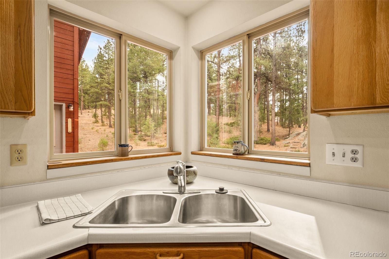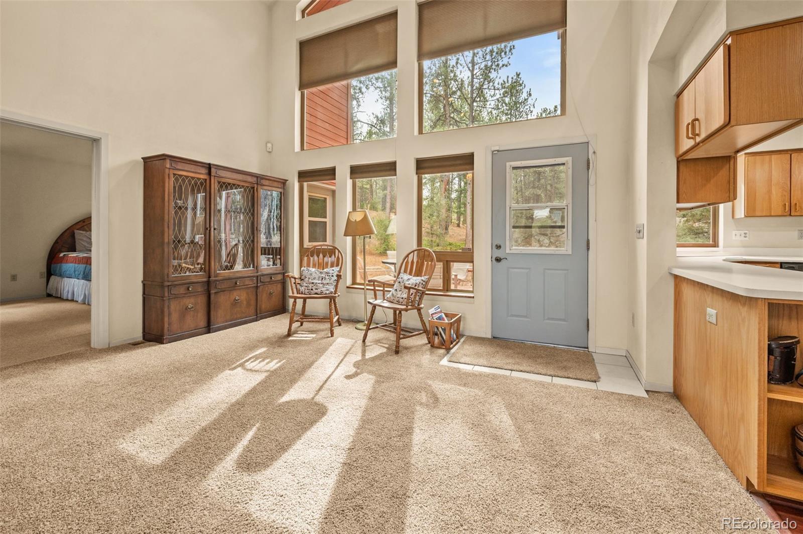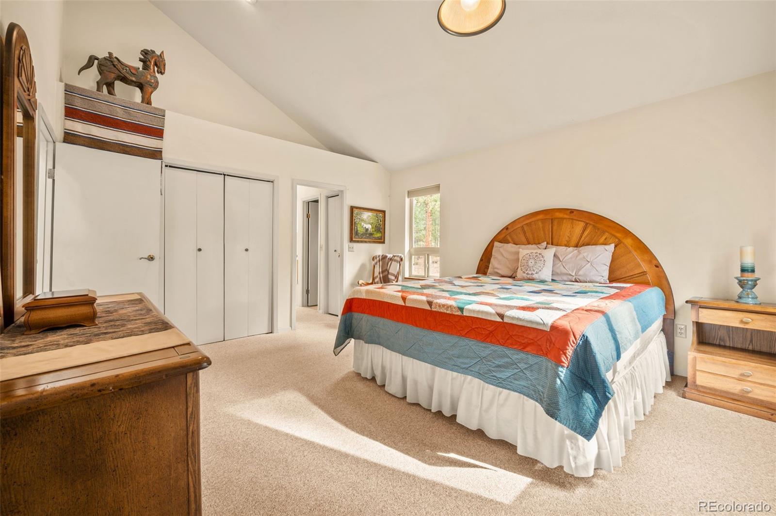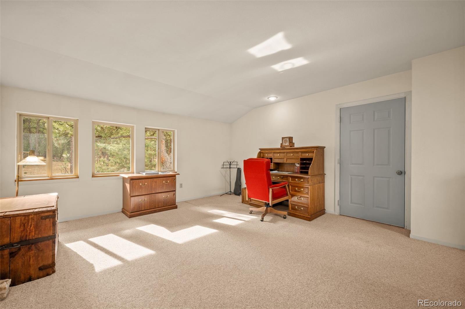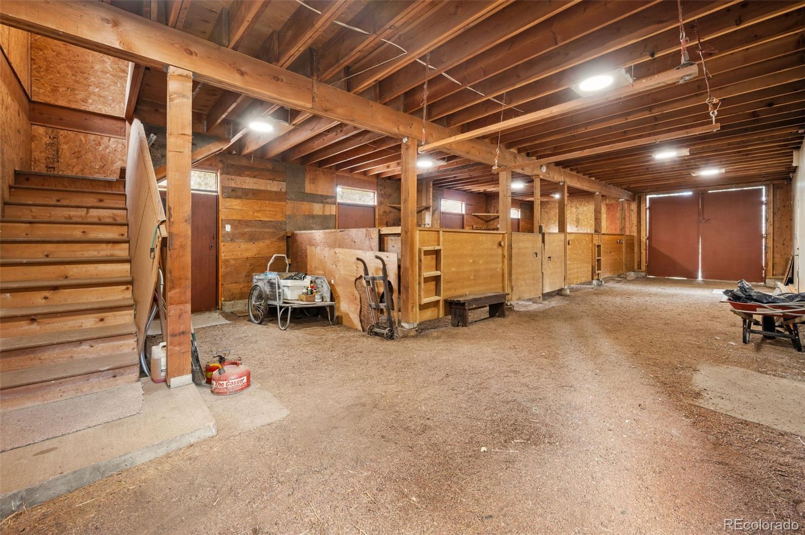 Welcome to Wagley Ranch, a rare 10-acre retreat in Spring Creek Ranch near Buffalo Creek. Surrounded by Pike–San Isabel National Forest with direct access to the Colorado Trail, this property offers privacy, scenery, and usable land with a blend of pasture and mature ponderosa pines. The home sits at the end of a wide meadow with views of Long Scraggy Peak and Cathedral Spires from generous front and rear decks. The 2-story, 5-bed, 3-bath home features a vaulted great room with full-height windows, a corner fireplace, and a bay window overlooking the meadow. Bedrooms and kitchen flank the great room, with stairs leading to a loft-style study and upper-level bedrooms over the attached oversized 2-car garage. The home connects directly to the barn for easy access through all structures. The impressive 24’ x 48’ two-story barn includes a 1,200 sq ft loft, three stalls opening to a corral and pasture, and a 12’ wide drive-through lane large enough for tractors or RVs. Ideal for horses, equipment, workshop space, or future creative use. The oversized garage offers even more storage and workspace. Community amenities include a stocked pond for fishing, canoeing, paddle boarding, picnics, and neighborhood events—all a short walk away. A rare opportunity to own acreage, views, and functional ranch infrastructure in a peaceful mountain setting