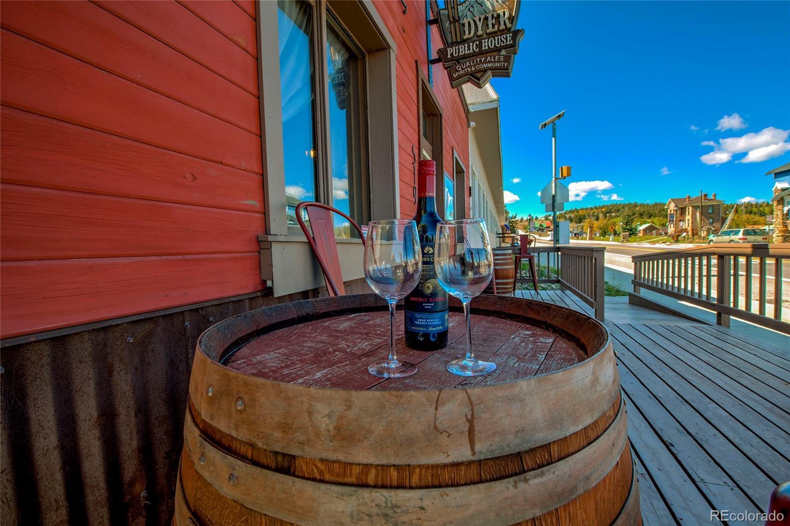 Prime Fairplay Location! This is a rare opportunity to own one of the most prominent properties in town, ideally situated on Main Street/Hwy 9 for maximum visibility. Recently renovated inside and out, this property offers a true turnkey opportunity to operate your own business while owning the real estate. Featuring high-end finishes and décor throughout, the space accommodates seating for approximately 60 guests, including a beautifully updated patio with a small stage for live music. Equipped with a full security system, this property combines style, functionality, and endless potential. A must-see investment!!