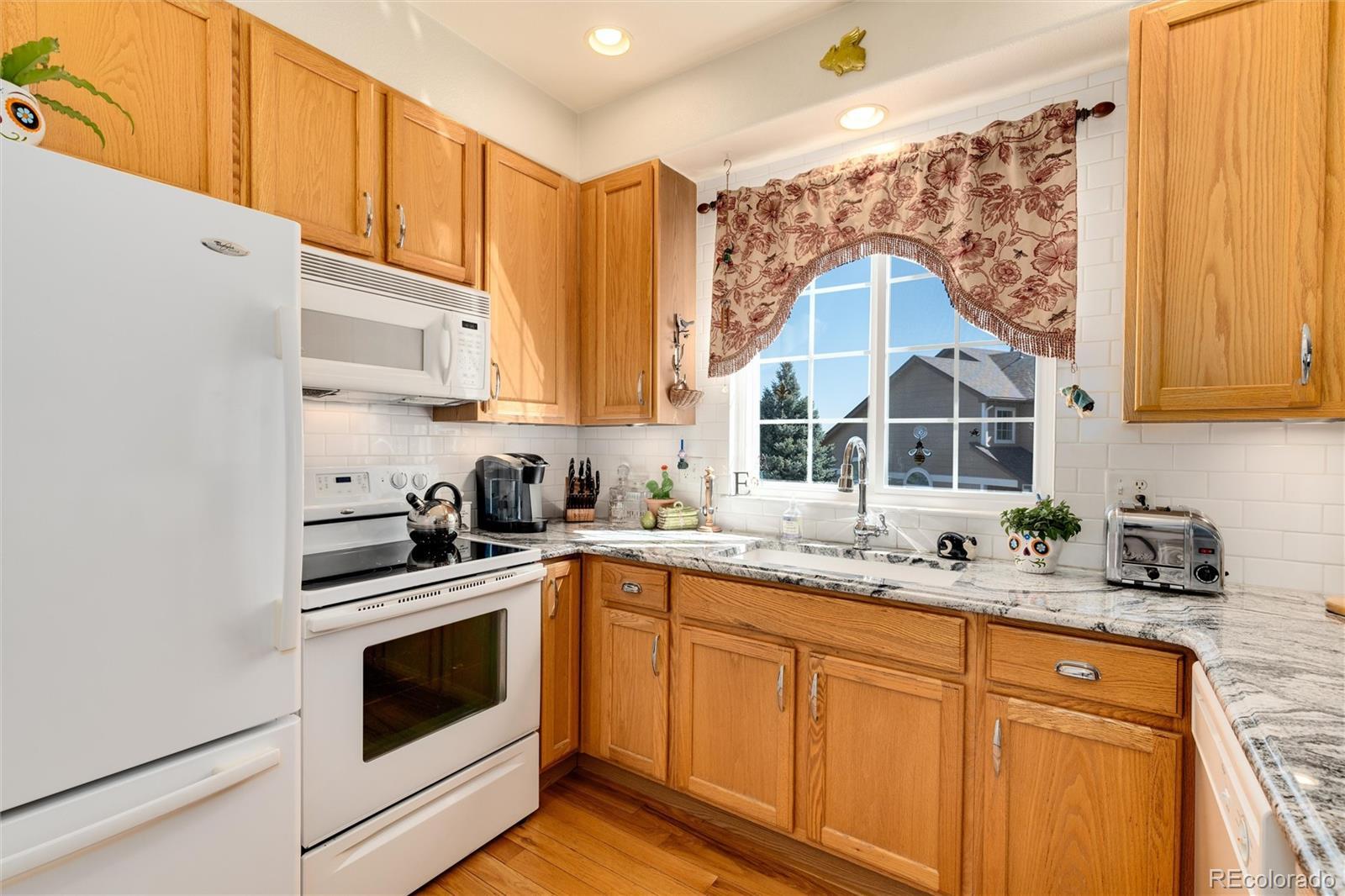 Lowest price in complex, Instant Equity!!! Back on market as sellers have found their dream home! END UNIT AND ONE OF ONLY 3 UNITS THAT FACE THE GRASSY FIELD OF OPEN SPACE!!! Step into this stunning end unit townhome, where elegance & modern upgrades blend seamlessly. Flooded with natural light, this home boasts all-new windows and a slider that enhance its bright & airy ambiance. The gourmet kitchen is a chef's delight, featuring sleek Granite countertops, quartz sink with Kohler faucet, subway tile backsplash, 2HP Sound insulated double blade disposal, undercabinet lighting & ample cabinet space. Whether you're hosting a dinner party or enjoying a quiet meal, this kitchen is sure to inspire culinary creativity. Retreat to the elegant primary suite, complete w/ luxurious en-suite bathroom with granite top vanity, porcelain sinks and upgraded faucets, upgraded lighting & a large walk-in closet. The 2nd bedroom perfect for guests or home office. Two bathrooms, morning routines are a breeze, offering convenience & comfort for every member of the household. But perhaps the most captivating feature of this home is the breathtaking view of the open space beyond. Imagine sipping your morning coffee on private patio, surrounded by lush greenery & tranquility. Additional upgrades include the following: All new E-Glass Energy efficient windows throughout, new patio sliding door, Insulated garage door, whisper quiet belt-drive wi-fi garage door opener, blown-in attic insulation, New HVAC system w/ whole house humidifier and electrostatic filtration, upgraded electrical panel, oak hardwood floors throughout the entire unit, 6 panel interior doors w/ brushed nickel hardware & upgraded lighting and ceiling fans. Enjoy the durability and beauty of gorgeous hardwood floors that flow throughout entire unit, providing a warm and inviting atmosphere. Don’t miss this opportunity to own a beautifully updated, move-in ready townhome that combines comfort, style & modern conveniences.