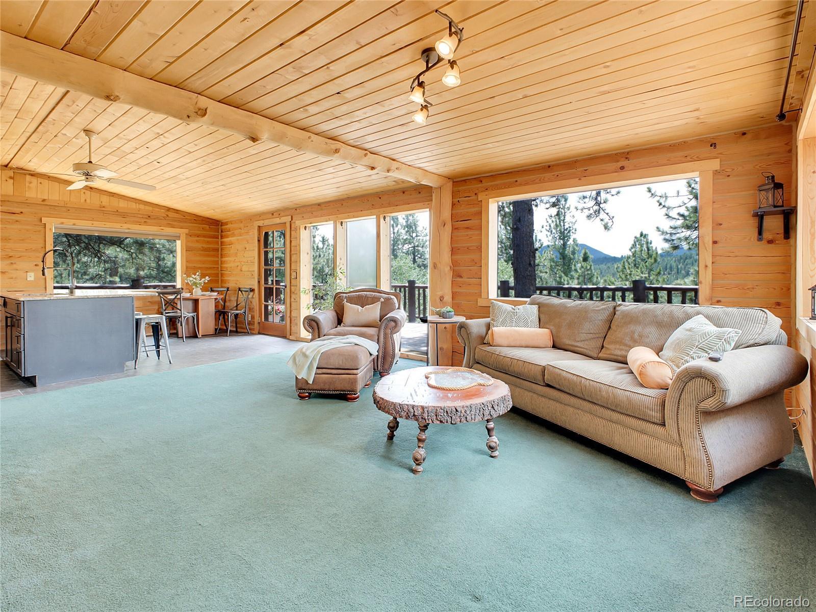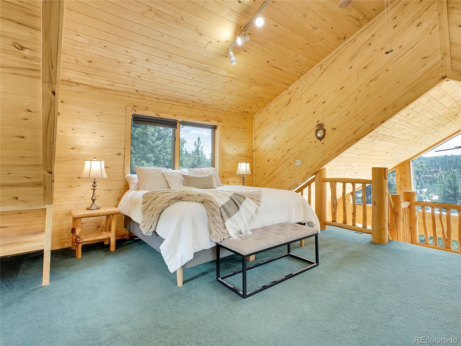 Back on the market due to Buyer's contingent property not selling. Hey there! Picture this: waking up to stunning mountain and forest views in your awesome log cabin retreat in Elk Creek Highlands, sitting on 2 acres of pure Colorado bliss. Check out the video at: https://v1tours.com/listing/58580/ This cozy spot comes with a spacious open living area, warm wooden vibes, and a killer kitchen island perfect for whipping up meals. Step out onto a huge deck to chill or host a BBQ, surrounded by towering pines and that serene mountain feel. Oh, and check out the massive 42'x36' garage/barn—perfect for stashing your gear, tinkering in a workshop, or whatever you’re into! Nearby, you’ve got Mount Blue Sky for epic hikes, Tanglewood trail plus many other nearby trails, Staunton State Park for outdoor fun, and the chill historic downtown Bailey to explore. Don’t let this gem slip away—hit us up for a tour and make it your new hangout!