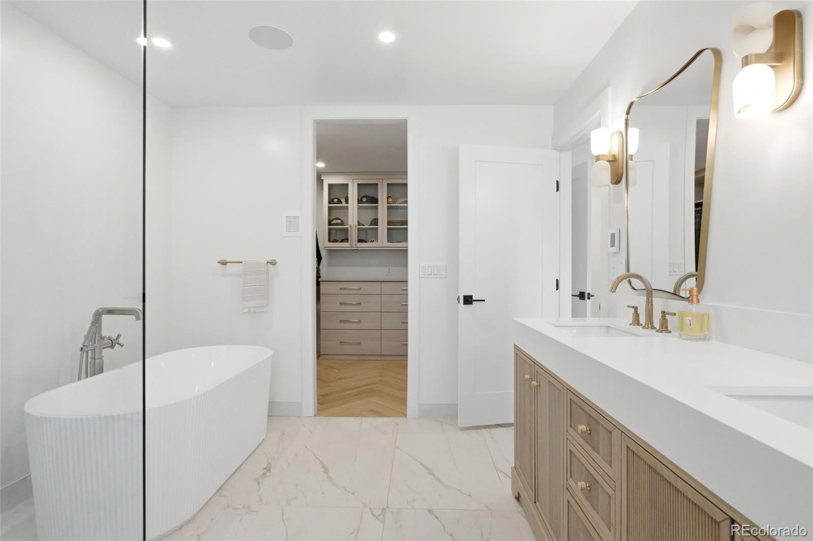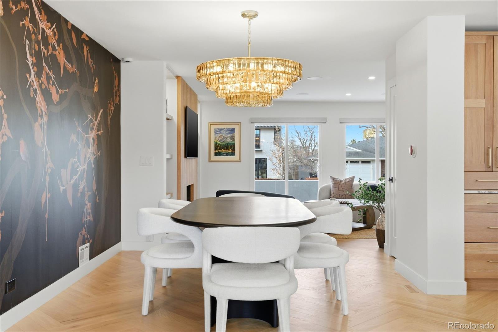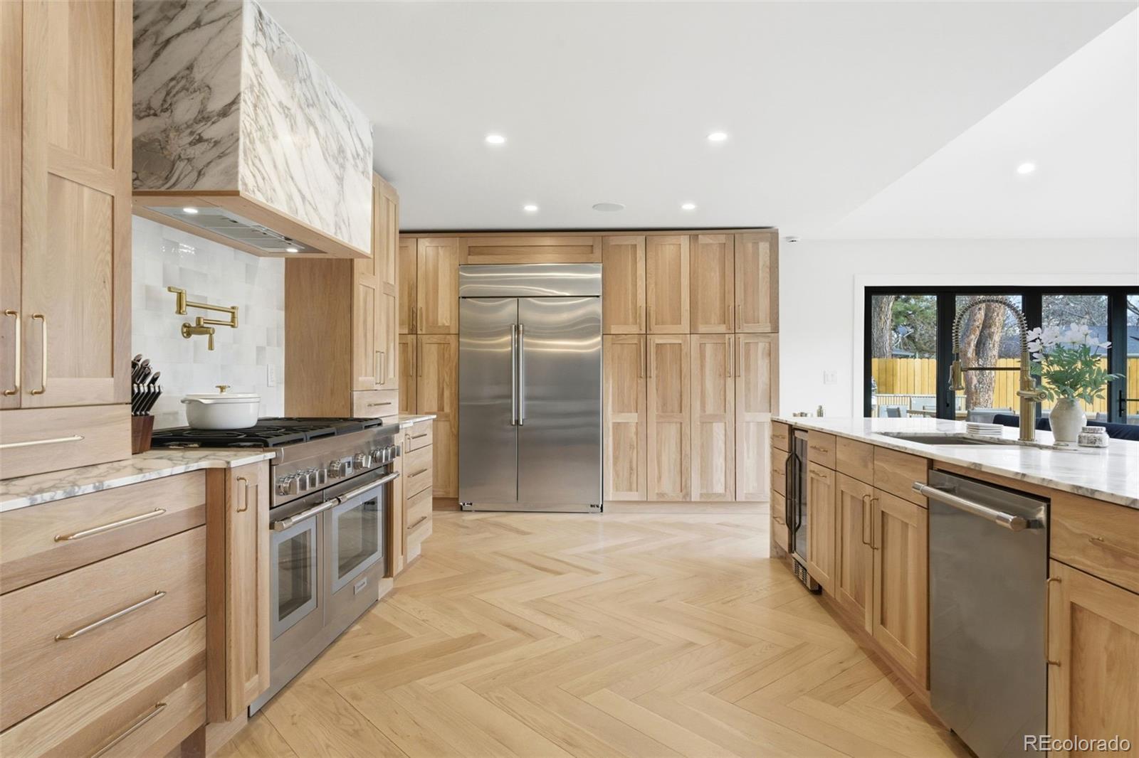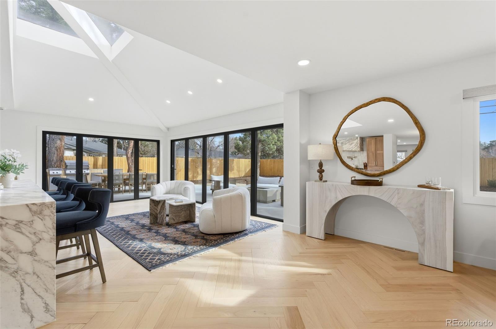 The ultimate Colorado lifestyle home in the coveted Stokes Place neighborhood. Set on an expansive 10,800-square-foot lot along serene, winding streets lined with mature trees, this fully remodeled modern residence offers a rare combination of privacy, sophistication, and seamless indoor-outdoor living—just minutes from Cherry Creek. Designed with meticulous attention to detail, the home showcases 28 feet of Nano doors that open effortlessly to the outdoors, creating an unparalleled entertaining experience. Stunning wide-plank white oak herringbone floors anchor the main level, complemented by two gas fireplaces and curated designer finishes throughout. The home includes an indoor/outdoor Sonos sound system, two Art tv's, and a Samsung TV. The thoughtfully reimagined floor plan features two luxurious primary suites on the main level, each appointed with custom finishes and spa-inspired baths, plus an additional guest suite in the fully finished basement. At the heart of the home, the chef’s kitchen impresses with custom Schroll white oak cabinetry, Calacatta Vagli marble countertops, and a Thermador range—blending elevated design with everyday functionality. With all-new electrical, plumbing, appliances, and integrated smart home upgrades, every element has been carefully considered to balance modern innovation with timeless elegance. Landscaping by Lifescape of Colorado. Located just five minutes from Cherry Creek, steps from Bonnie Brae Park, and with convenient access to Colorado Boulevard, this is a true urban retreat offering the best of Denver living.