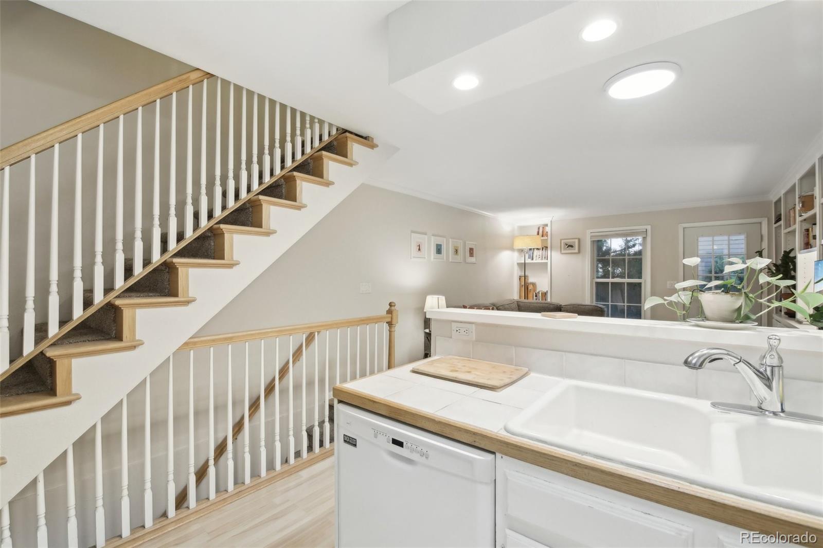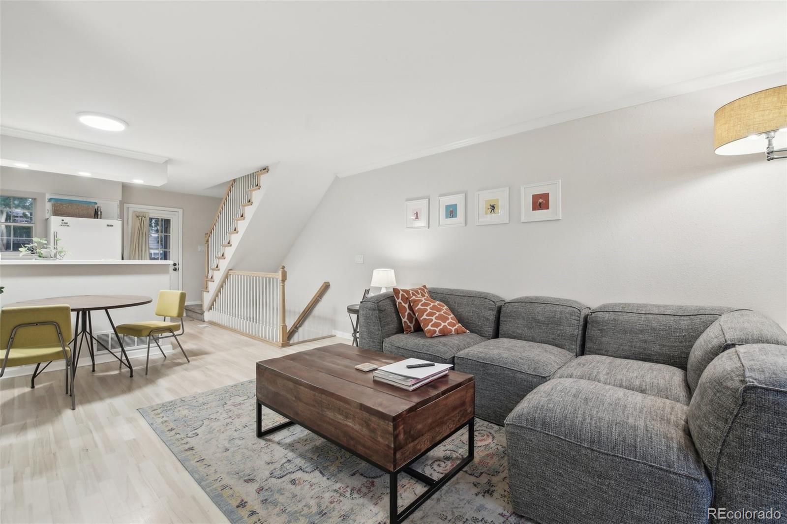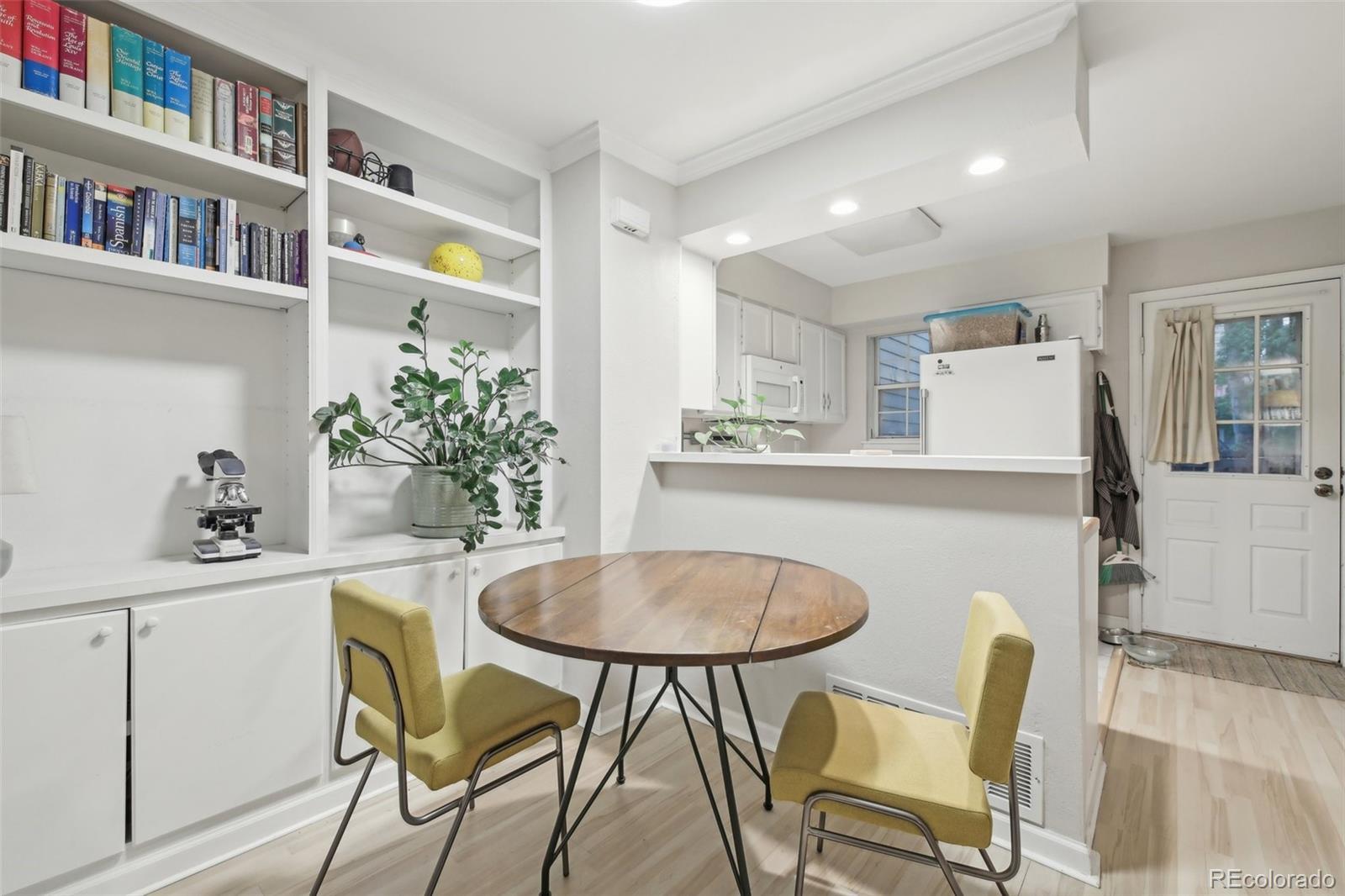 This stylish townhome offers space, upgrades, and a fantastic location. The light-filled living room features a stunning floor-to-ceiling built-in bookcase and upgraded LVP flooring throughout the main level. The open layout flows into a bright kitchen and out to a private back patio with an additional storage closet. Upstairs, the vaulted-ceiling main bedroom offers private access to a full bath. The finished basement includes a spacious rec room easily made into a third non conforming bedroom, complete with wet bar, utility room and a large second bathroom. Enjoy green landscaping and a reserved parking space, with easy access to major highways, shopping, dining, and more!