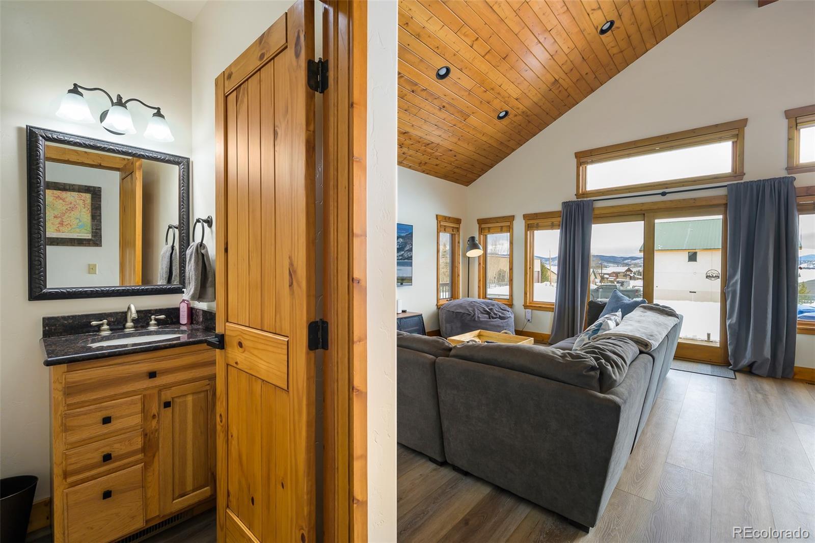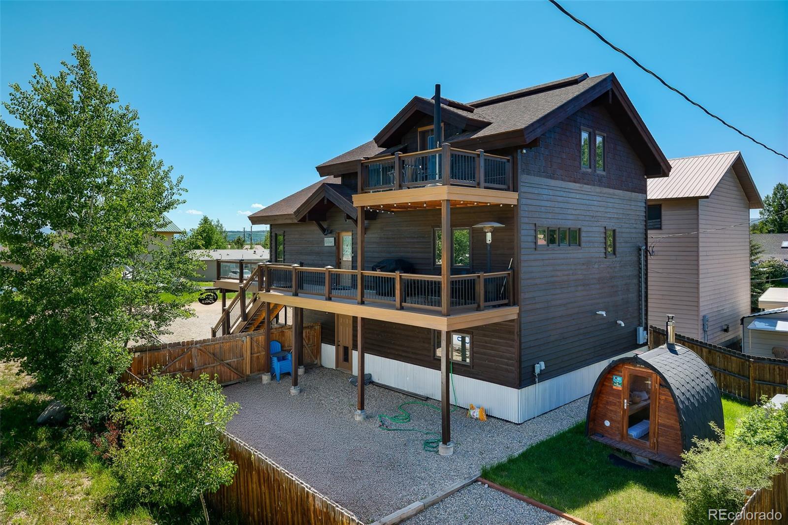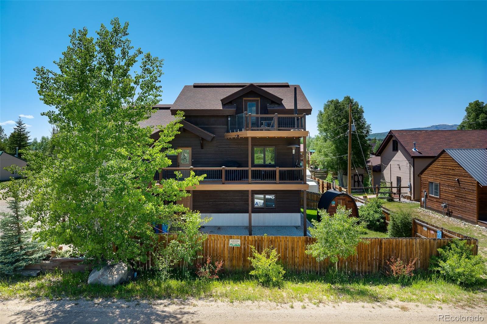 Escape to the mountains in this stylish 3-bedroom, 3.5-bath home located at the north end of Lake Granby, just a short drive from Grand Lake and Rocky Mountain National Park. With mountain scenery and peekaboo lake views, the home offers a quiet setting with a fresh, modern feel—ideal for full-time living or weekend retreats. Thoughtfully updated, the home features new flooring, fresh paint inside and out, and new decks that extend the living space outdoors. Inside, the open-concept main level offers a seamless flow between the living, dining, and kitchen areas, all anchored by large windows that bring the outdoors in. The small, fully fenced yard offers a relaxing space to unwind, complete with a fire pit for evening gatherings and a wood-burning outdoor sauna—perfect after a day of exploring or skiing. This home is turn-key and truly lock-and-leave ready, equipped with smart home technology that allows you to control key systems remotely, whether you're here year-round, visiting seasonally, or using it as a rental. With clean design, updated finishes, and a peaceful mountain setting, this home is ready to enjoy.