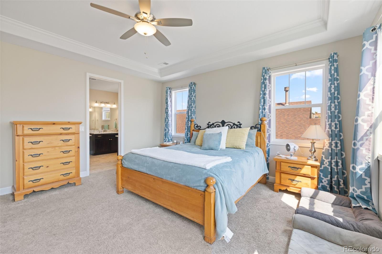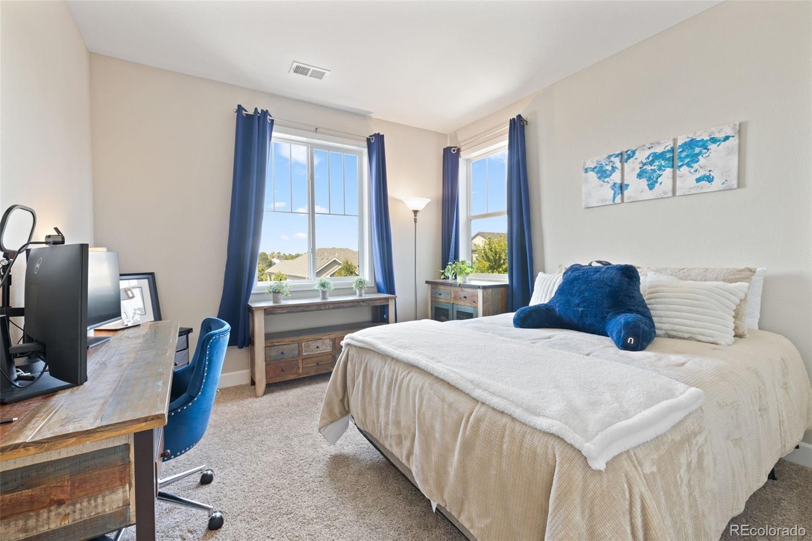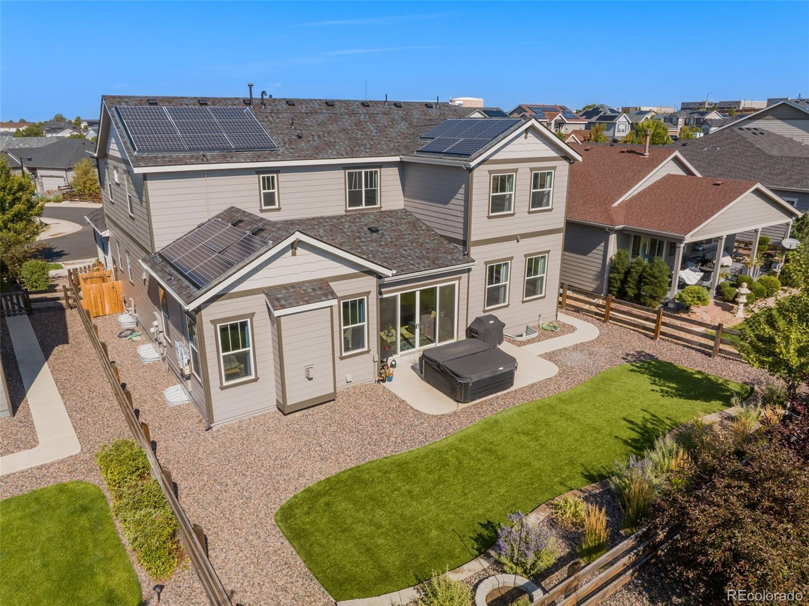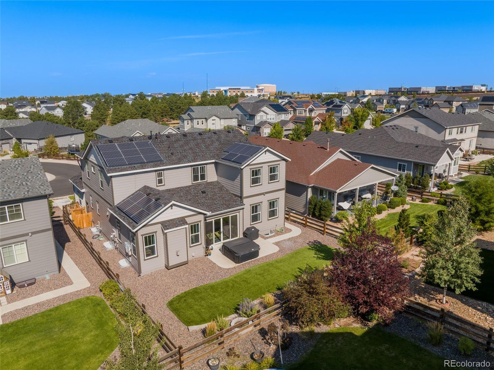 Welcome to this rare find in the highly sought-after Forest Trace neighborhood of Aurora! Nestled within the top-rated Cherry Creek School District, this 5-bedroom, 4-bath home is move-in ready and packed with upgrades that set it apart. Inside, you’ll find a thoughtfully designed layout featuring a main-floor guest suite, perfect for multigenerational living or visiting friends. The heart of the home flows seamlessly from the kitchen into the dining and living spaces, enhanced by a finished sunroom—a unique feature offering year-round natural light and versatile living options. Upstairs, retreat to the massive primary suite, complete with a spa-like bath and generous walk-in closet. Additional highlights include solar panels for energy efficiency, a working hot tub for relaxation, and five spacious bedrooms providing flexibility for home offices, hobbies, or growing families. Enjoy the best of Aurora living with an unbeatable location: walk to Southlands Mall for shopping, dining, and entertainment, or tee off at nearby Saddle Rock Golf Course, Heritage Eagle Bend Golf Club, and Blackstone Country Club—all less than 10 minutes away. Quick access to E-470 makes commuting and travel effortless. Don’t miss the chance to own a home that combines comfort, efficiency, and convenience in one of Aurora’s premier communities.