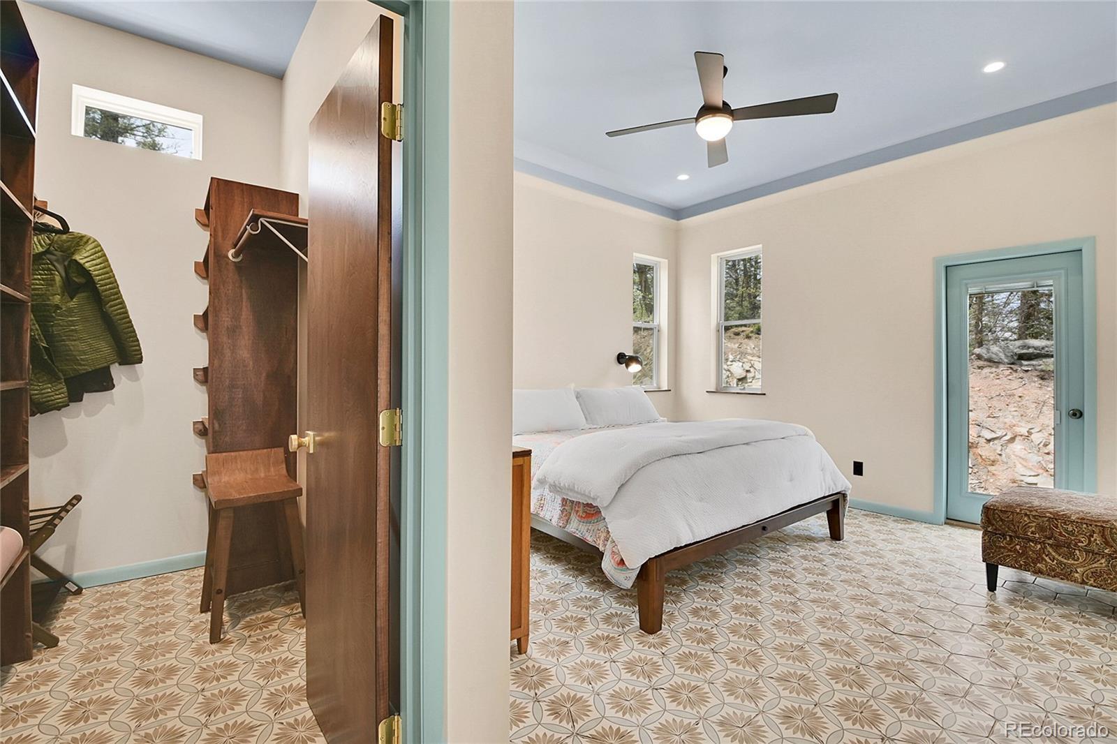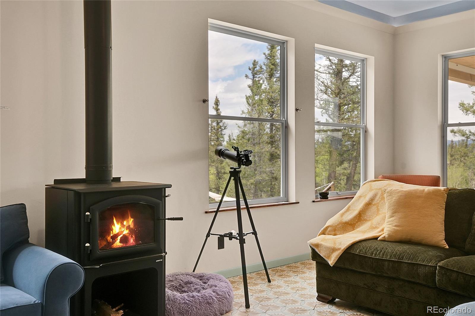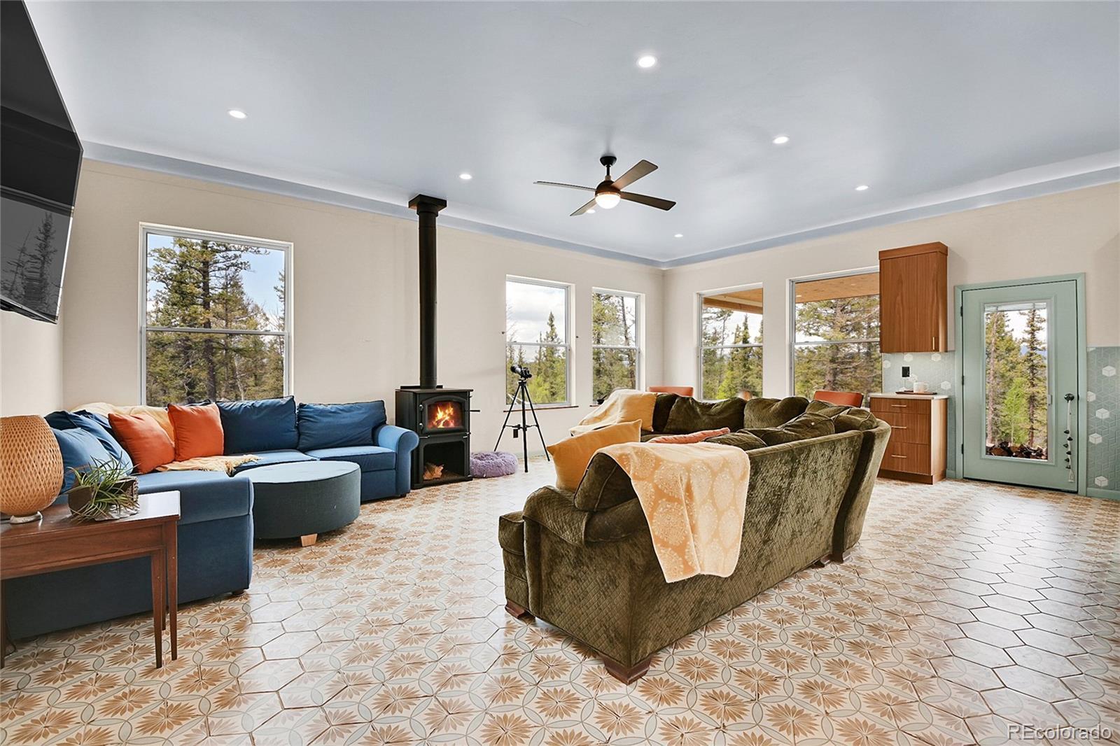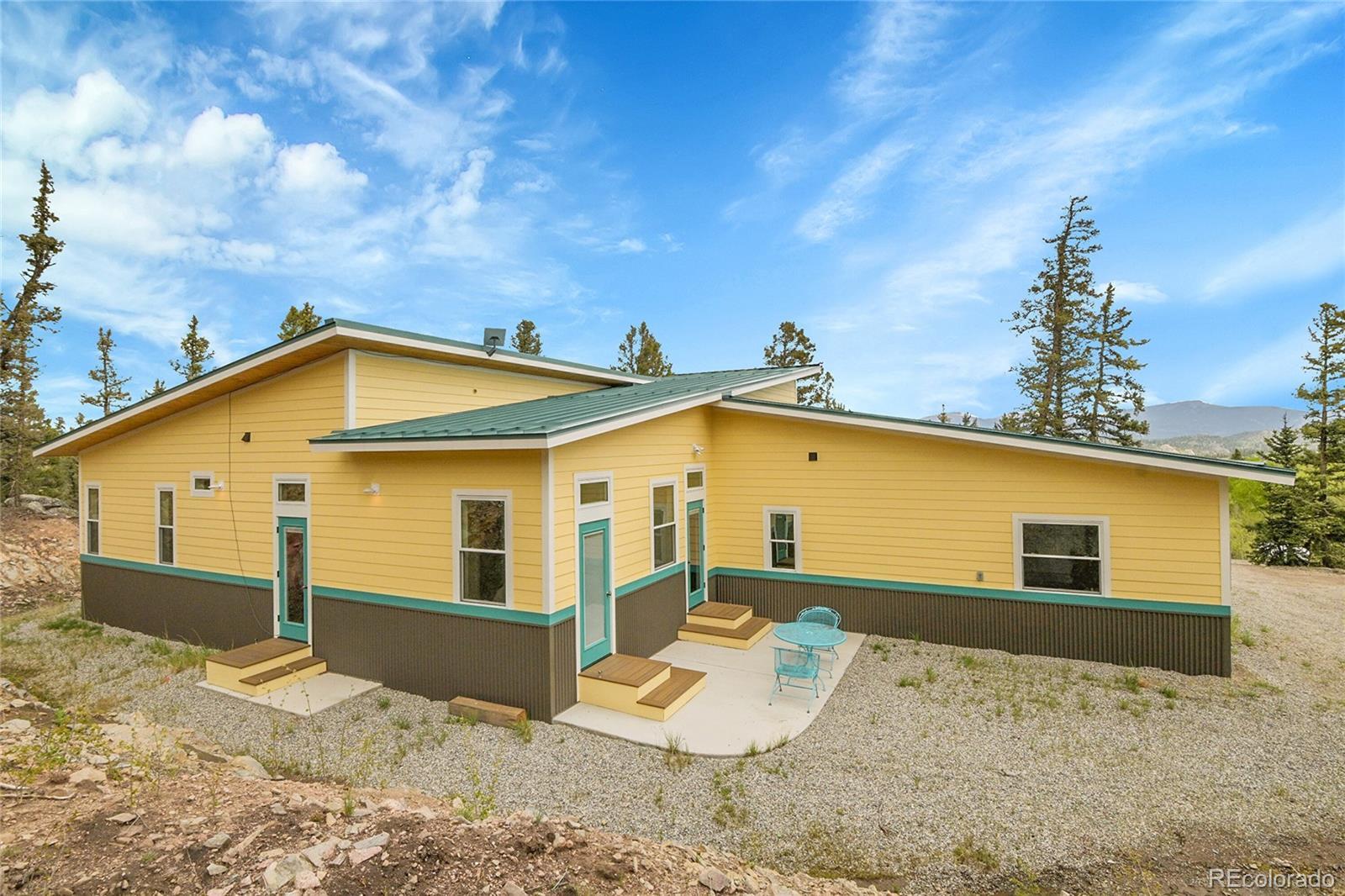 Welcome to a custom mid-century modern ranch, completed in 2023, on over two private acres in Indian Mountain (Como/Jefferson). Designed for connection and long-term value, this home dissolves the boundary between indoors and out. The home features soaring 10-foot ceilings and expansive windows. Seven exterior doors provide each of the three bedrooms, plus a dedicated office, with its own private entry and patio—ensuring both natural flow and personal retreat. Warmth radiates from in-floor heating throughout, including the garage, while a wood-burning stove adds comfort. Thoughtful details elevate the space: custom walnut cabinetry, brass fixtures, designer porcelain tile, and indirect cove lighting. A 50-year standing seam roof with tongue-and-groove soffits ensures enduring quality. The primary suite boasts a spa-inspired bath with a soaking tub, separate shower, private toilet closet, and a generous walk-in closet. Two additional bedrooms (each with queen beds) offer flexible space. The septic system is designed for longevity. Outdoor living is seamless with a secluded fire pit. The property includes a furnished 192 sq. ft. bunkhouse for guests. An oversized finished garage includes a full bath, and a shed provides ample storage for mountain gear. With reliable satellite internet and two private offices, remote work blends with mountain life. You are minutes from the Indian Mountain Recreation Area, Pike National Forest, trails, and the community center. Highway 285 offers easy access to Fairplay, Breckenridge, Denver, and Colorado Springs. Offered in turn-key, move-in ready condition, the home allows you to settle in with ease. Furnishings are available for purchase separately but are not included in the sale price. Buyers will need to apply for a short-term rental license, and the sellers are happy to assist. This is more than a property; it is a sanctuary tucked into nature, inviting you to live a grounded and connected life.