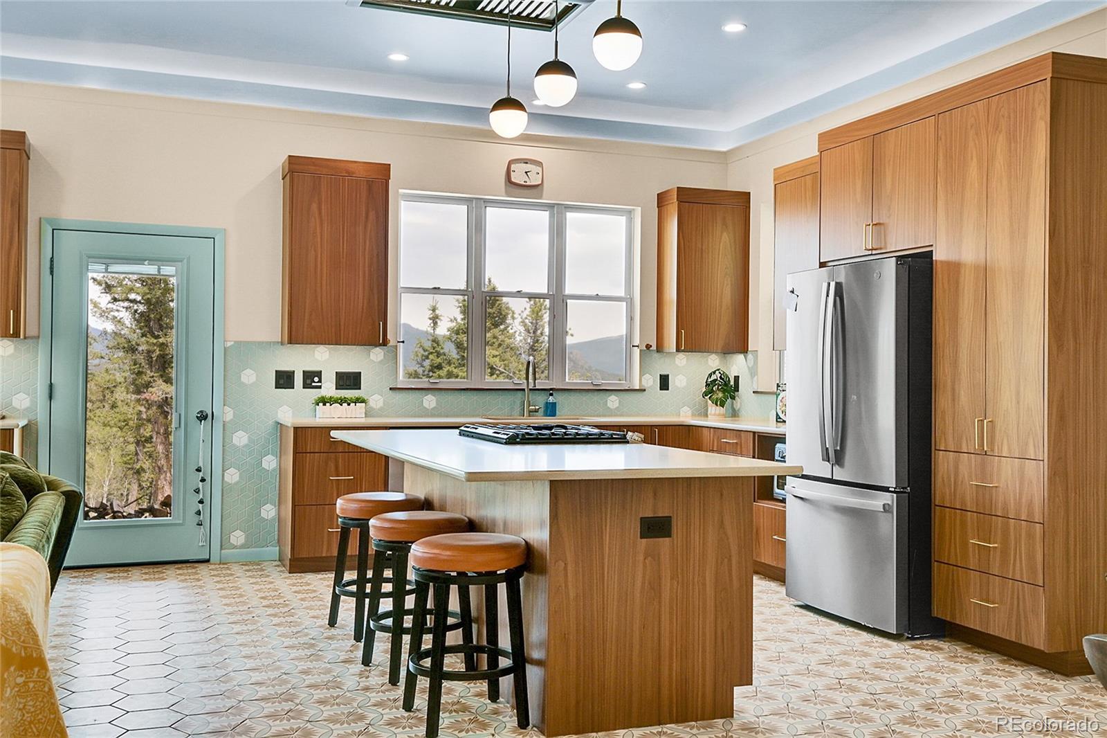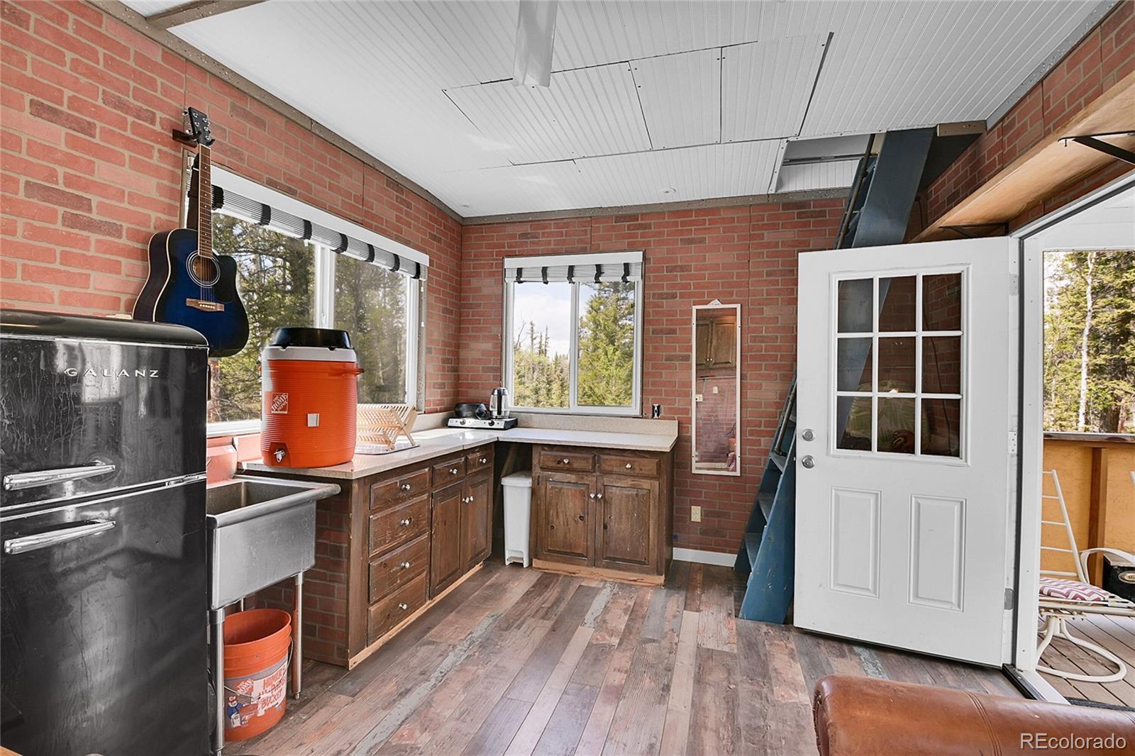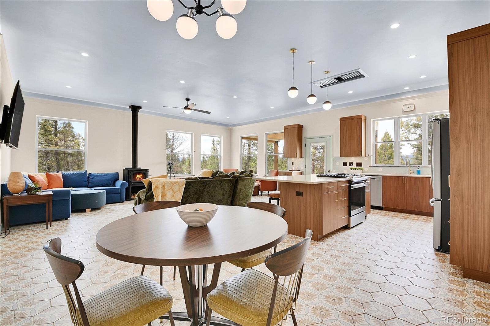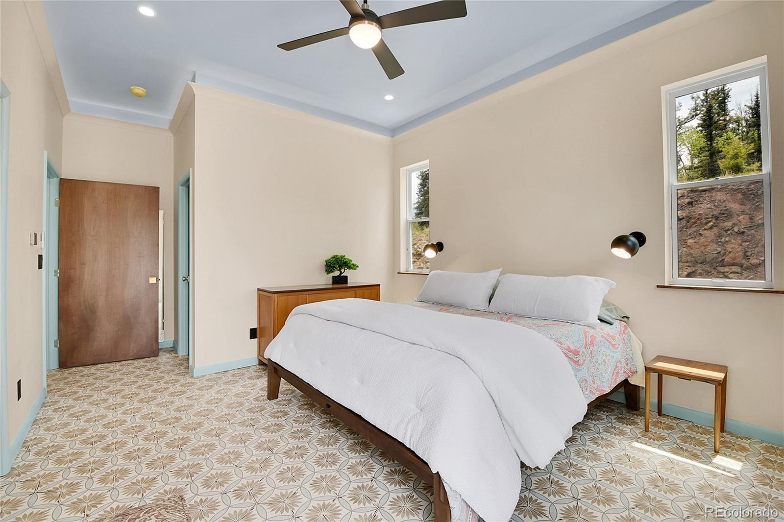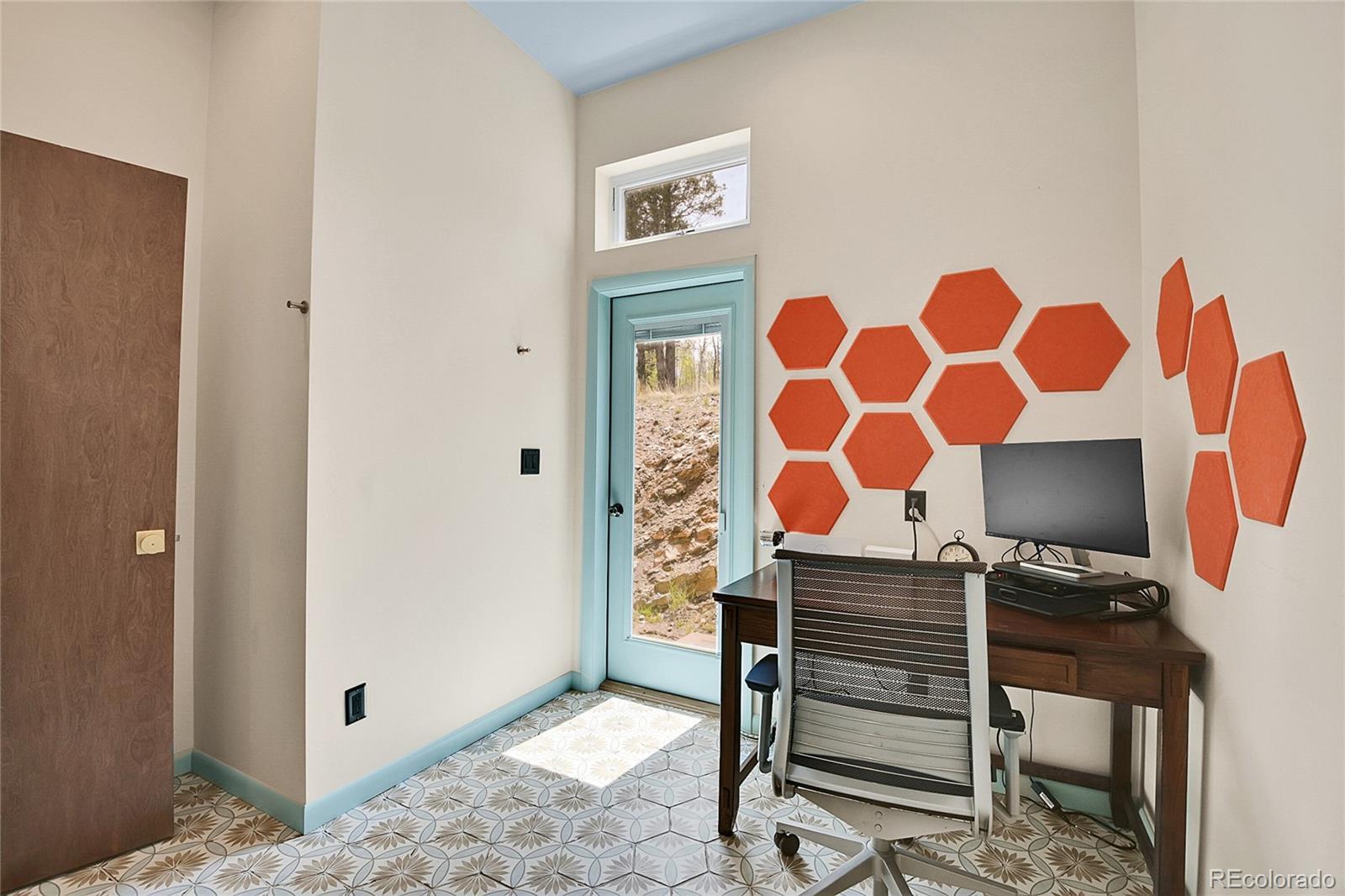 Welcome to a custom mid-century modern ranch, completed in 2023, on over two private acres in Indian Mountain (Como/Jefferson). Designed for connection and long-term value, this home dissolves the boundary between indoors and out. The home features soaring 10-foot ceilings and expansive windows. Seven exterior doors provide each of the three bedrooms, plus a dedicated office, with its own private entry and patio—ensuring both natural flow and personal retreat. Warmth radiates from in-floor heating throughout, including the garage, while a wood-burning stove adds comfort. Thoughtful details elevate the space: custom walnut cabinetry, brass fixtures, designer porcelain tile, and indirect cove lighting. A 50-year standing seam roof with tongue-and-groove soffits ensures enduring quality. The primary suite boasts a spa-inspired bath with a soaking tub, separate shower, private toilet closet, and a generous walk-in closet. Two additional bedrooms (each with queen beds) offer flexible space. The septic system is designed for longevity. Outdoor living is seamless with a secluded fire pit. The property includes a furnished 192 sq. ft. bunkhouse for guests. An oversized finished garage includes a full bath, and a shed provides ample storage for mountain gear. With reliable satellite internet and two private offices, remote work blends with mountain life. You are minutes from the Indian Mountain Recreation Area, Pike National Forest, trails, and the community center. Highway 285 offers easy access to Fairplay, Breckenridge, Denver, and Colorado Springs. Offered in turn-key, move-in ready condition, the home allows you to settle in with ease. Furnishings are available for purchase separately but are not included in the sale price. Buyers will need to apply for a short-term rental license, and the sellers are happy to assist. This is more than a property; it is a sanctuary tucked into nature, inviting you to live a grounded and connected life.