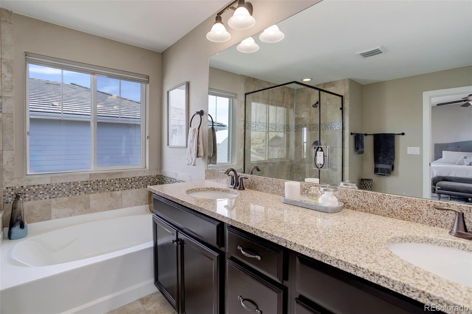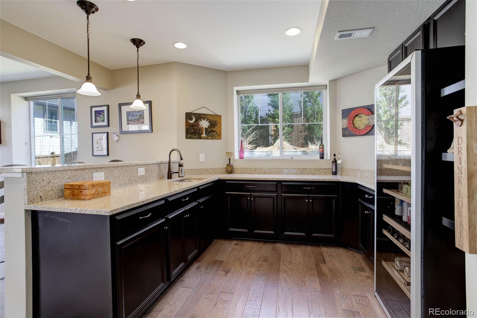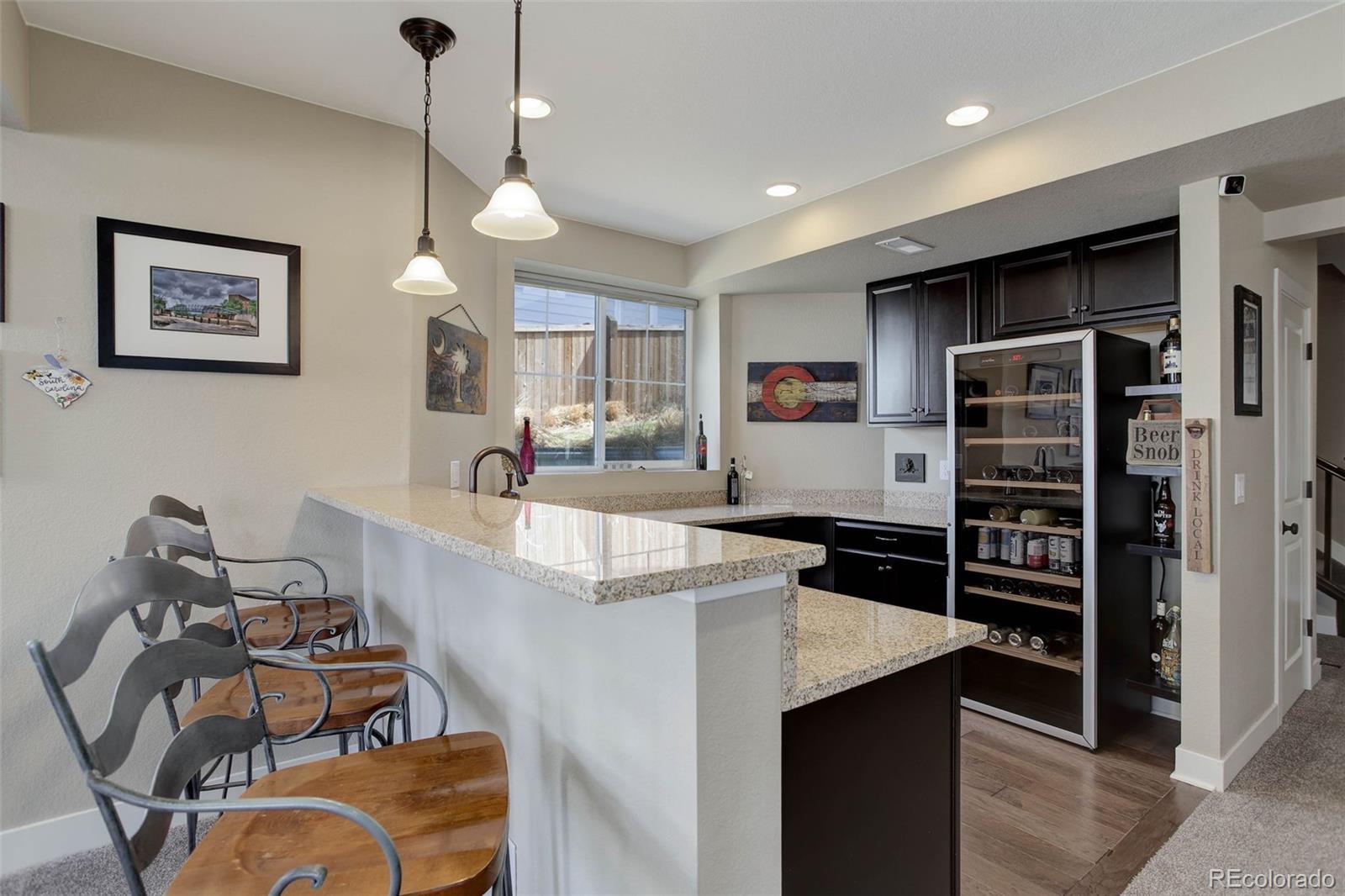 Luxury, Convenience, and Community – Your Perfect Move Awaits. Now is your chance to own this beautifully upgraded home just minutes from downtown Parker. Enjoy the best of both worlds – a quiet location that is near vibrant community activities, local shops, and restaurants. Live at the heart of Parker’s welcoming lifestyle, with easy access to parks, trails, and year-round events. This residence is ideal for first-time homebuyers, those ready to move up to a more luxurious living experience or for those looking to downsize without sacrificing features or amenities. The low-maintenance design and lock-and-leave convenience let you travel or enjoy your time worry-free with minimal effort to maintain the self-sustaining perennial landscaping. Step inside to discover custom upgrades throughout, including a stunning gourmet kitchen perfect for chefs and entertainers, a versatile loft that adapts to your needs, and a luxurious primary suite designed for ultimate comfort and relaxation. The finished walk-out basement offers even more flexibility, featuring an amazing wet bar, spacious bedroom, and full bathroom—perfect for guests, multi-generational living, or a private retreat. The extra-long garage with pristine epoxy flooring provides plenty of space for vehicles and storage. Outdoor living is elevated with an upgraded covered deck complete with an outdoor TV—ideal for gatherings or quiet evenings—plus a lower patio featuring a relaxing hot tub for year-round enjoyment. This is a great opportunity in a prime Parker location—schedule your private tour today and ask about the full list of features and upgrades so you'll know all the extras that enhance your lifestyle! See supplements for complete list of upgrades and features.