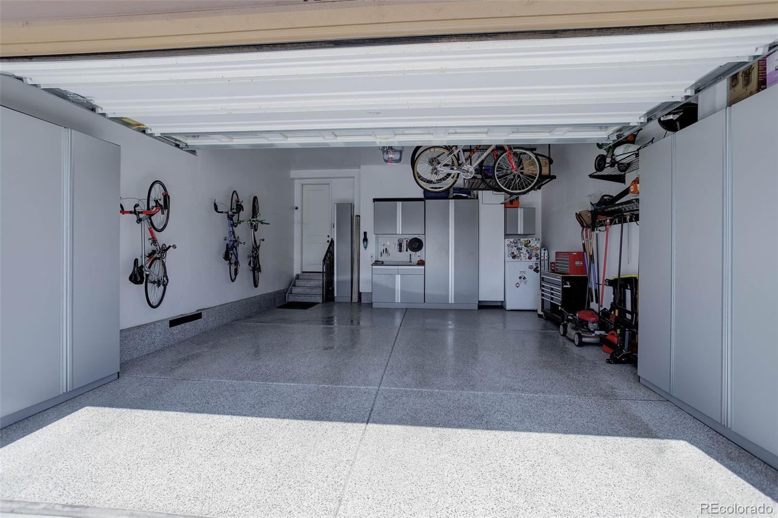 Dry Walled, Finished Garage, Floor Coating, Lighted, Oversized, Storage