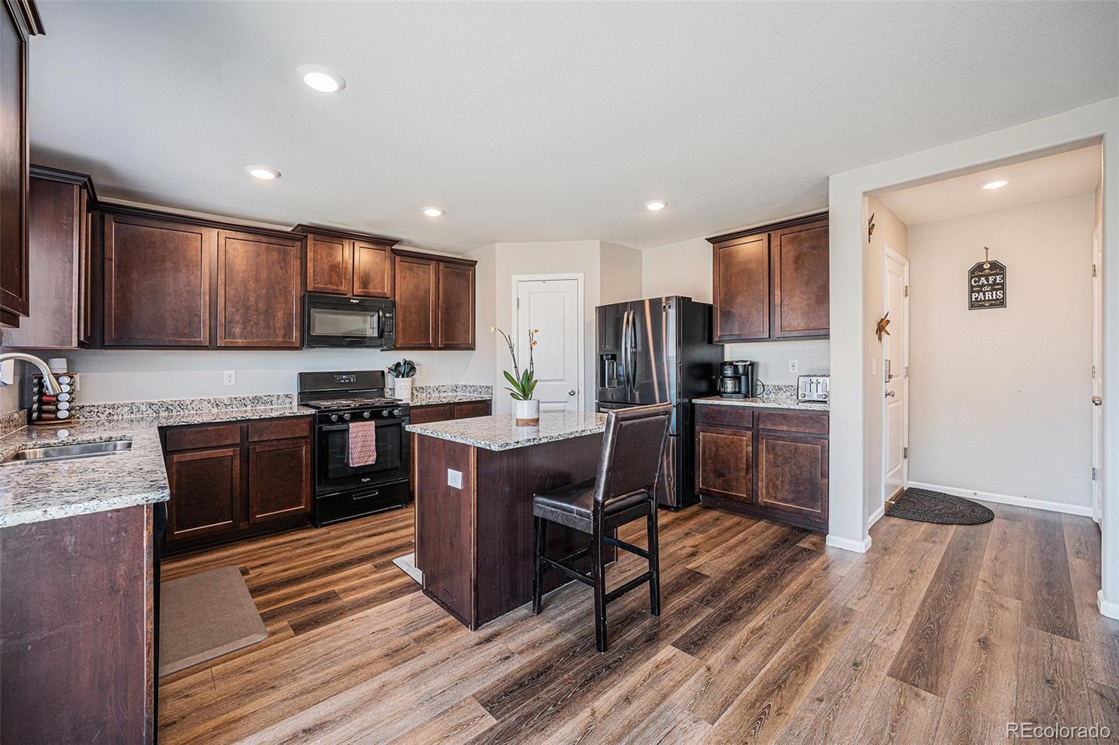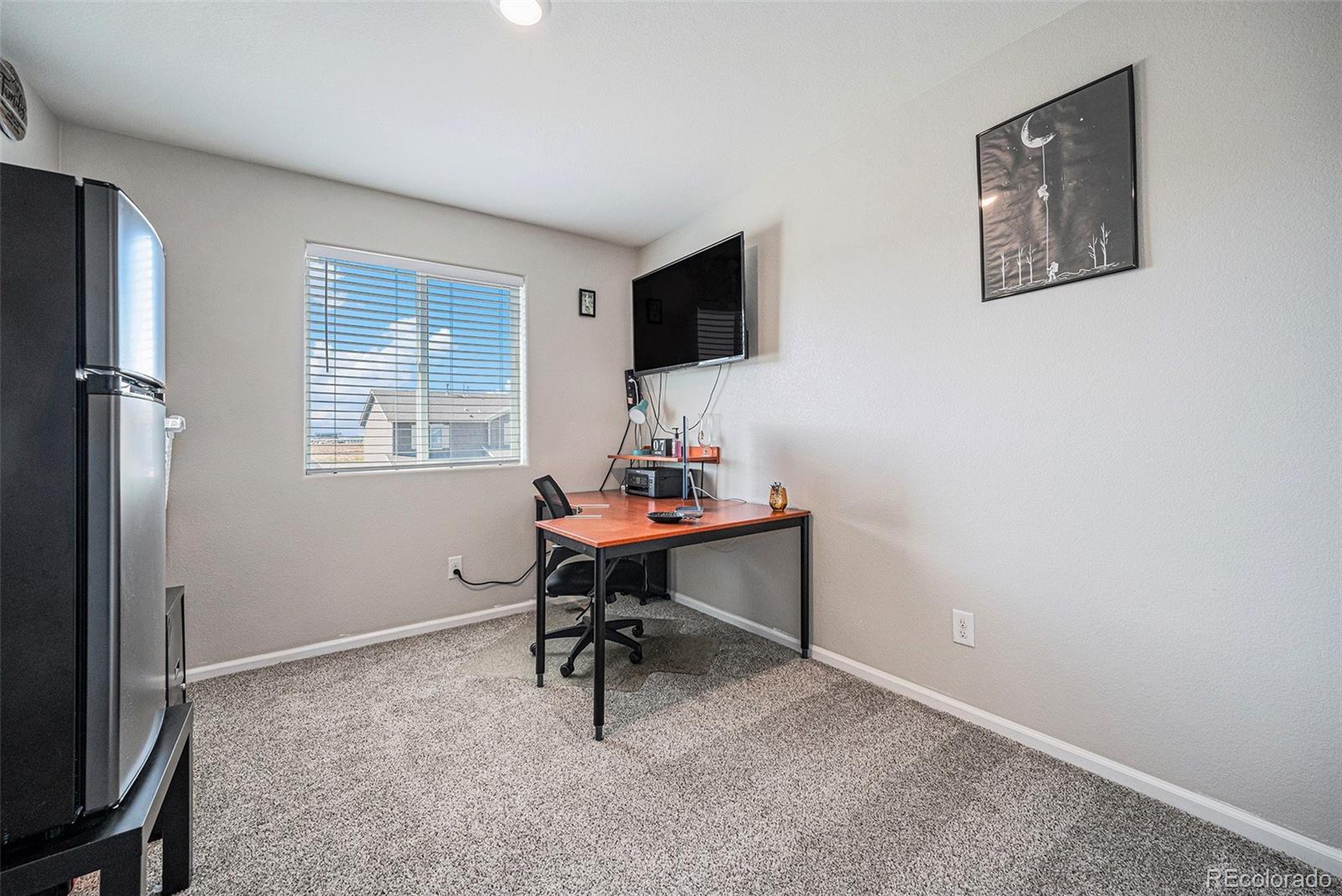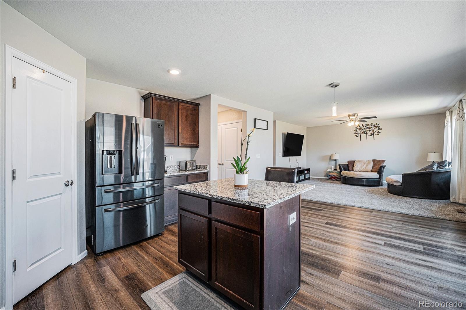 Welcome to this stunning 2019-built home offering 4 bedrooms, 3 bathrooms, and a thoughtfully designed layout perfect for today’s lifestyle. From the moment you step inside, you’ll notice the fresh upgrades, including plush new carpet and pad (2023), fresh paint throughout (2025), and an updated pantry with added storage options (2025). The gourmet kitchen features gorgeous granite countertops, a spacious island, and an open connection to the dining and living areas, creating a balanced flow ideal for entertaining. A main floor office provides the perfect work-from-home space, while the open-concept living room is bright and inviting. Upstairs, all bedrooms are conveniently located along with a versatile loft that can serve as a second living area or playroom. The luxurious primary suite boasts a large soaker tub, dual sinks, and a walk-in closet so spacious it could be a room of its own. The laundry room is also upstairs for easy access. Enjoy a quick commute to Denver, Buckley Space Force Base, and Denver International Airport. Located in a rapidly growing area, this home offers the perfect blend of small-town charm and modern convenience—making it an incredible opportunity in a thriving community.