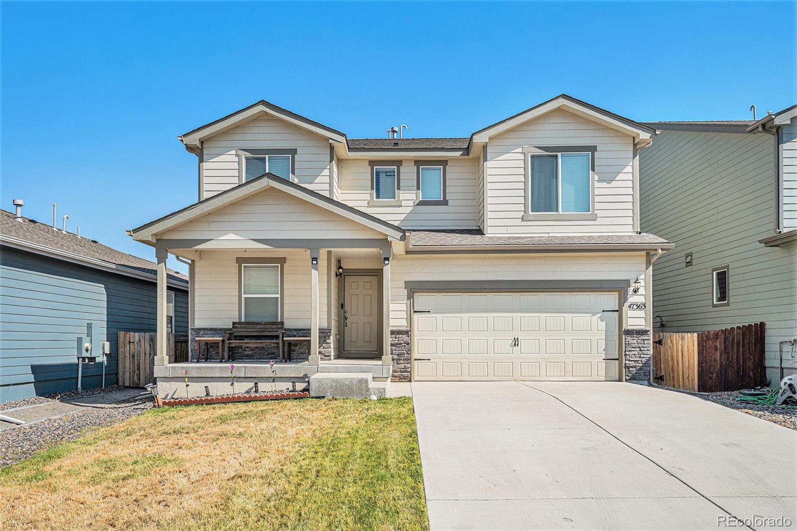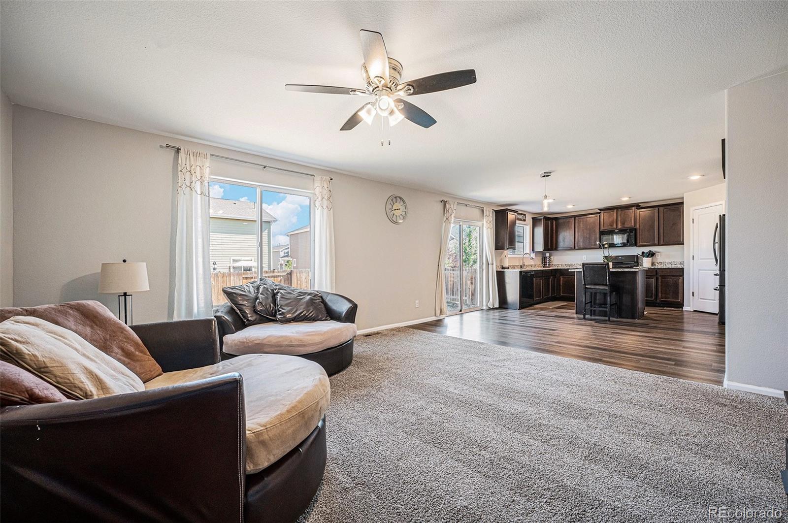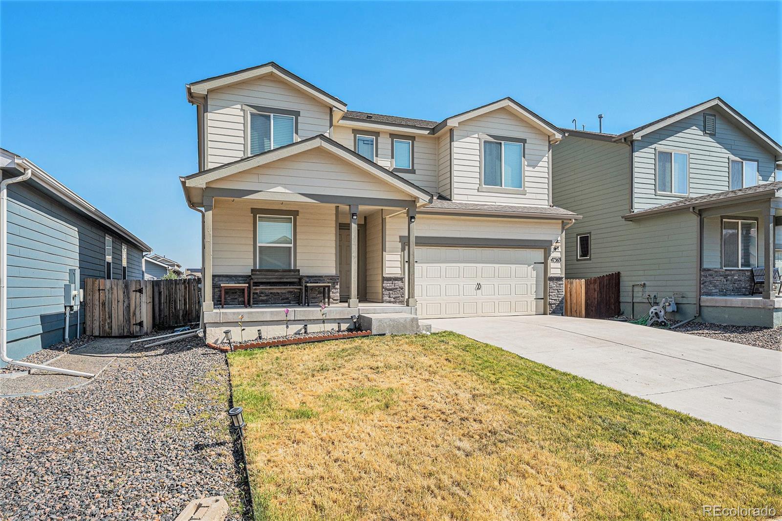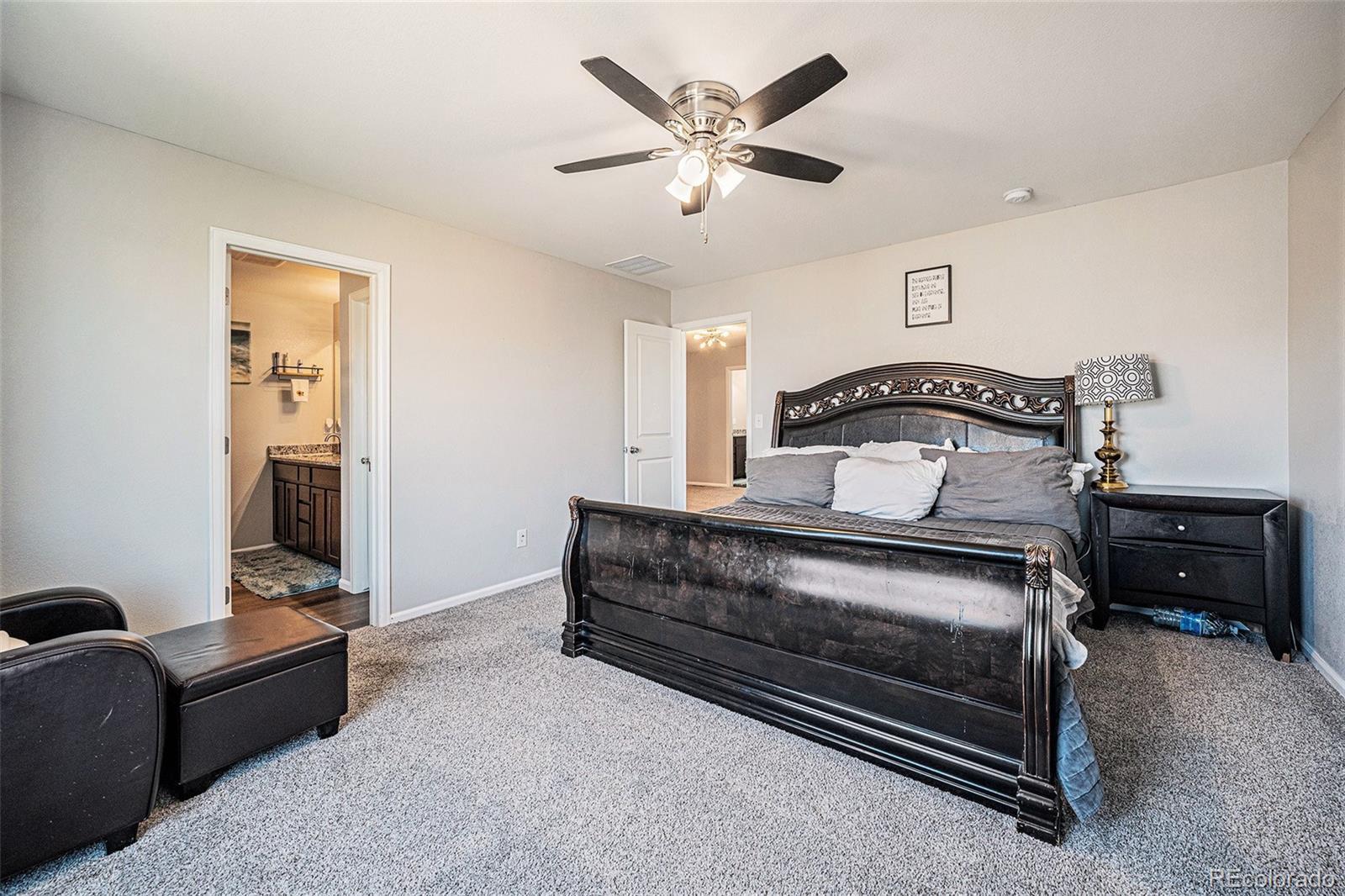 Welcome to this stunning 2019-built home offering 4 bedrooms, 3 bathrooms, and a thoughtfully designed layout perfect for today’s lifestyle. From the moment you step inside, you’ll notice the fresh upgrades, including plush new carpet and pad (2023), fresh paint throughout (2025), and an updated pantry with added storage options (2025). The gourmet kitchen features gorgeous granite countertops, a spacious island, and an open connection to the dining and living areas, creating a balanced flow ideal for entertaining. A main floor office provides the perfect work-from-home space, while the open-concept living room is bright and inviting. Upstairs, all bedrooms are conveniently located along with a versatile loft that can serve as a second living area or playroom. The luxurious primary suite boasts a large soaker tub, dual sinks, and a walk-in closet so spacious it could be a room of its own. The laundry room is also upstairs for easy access. Enjoy a quick commute to Denver, Buckley Space Force Base, and Denver International Airport. Located in a rapidly growing area, this home offers the perfect blend of small-town charm and modern convenience—making it an incredible opportunity in a thriving community.