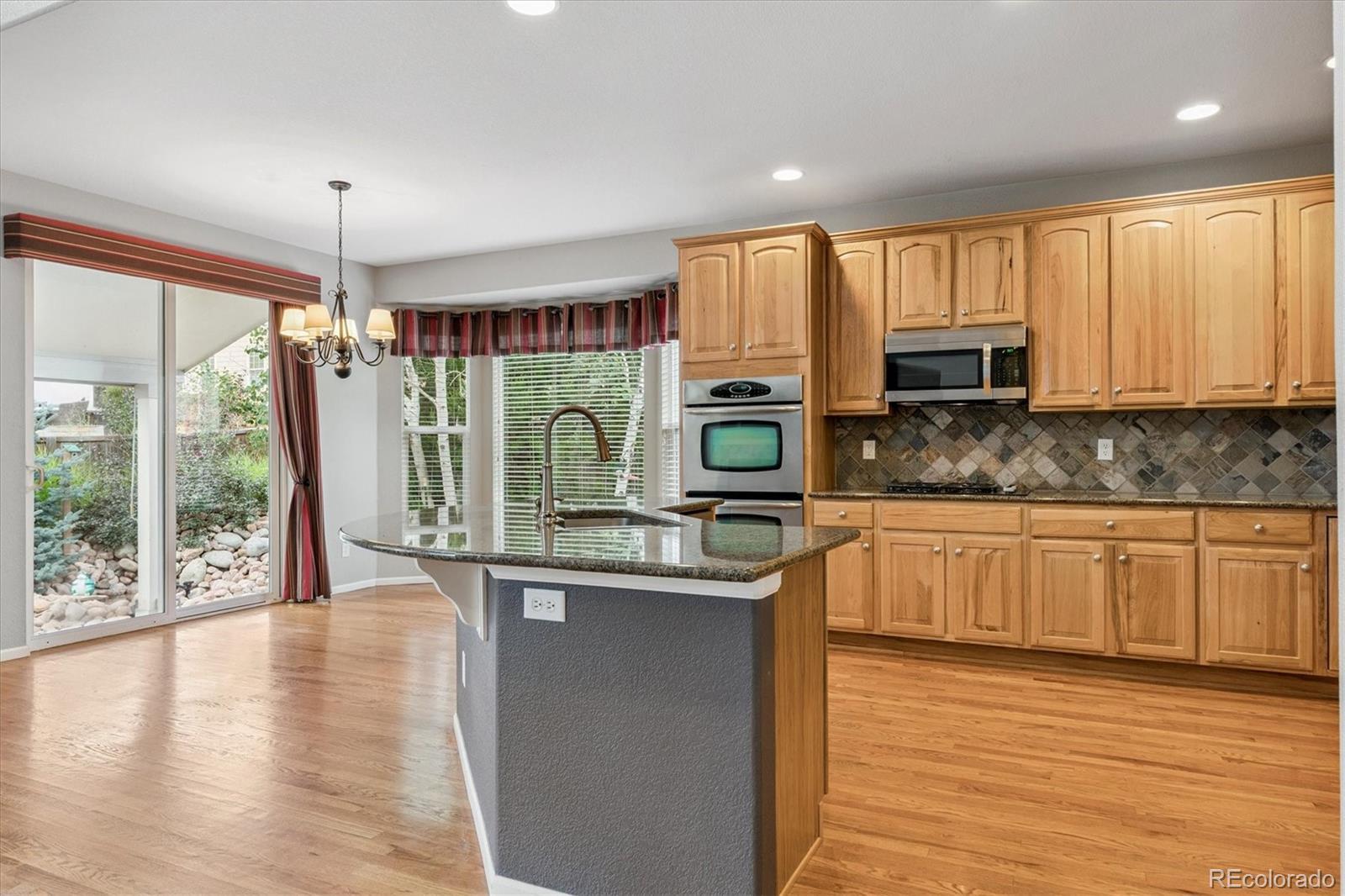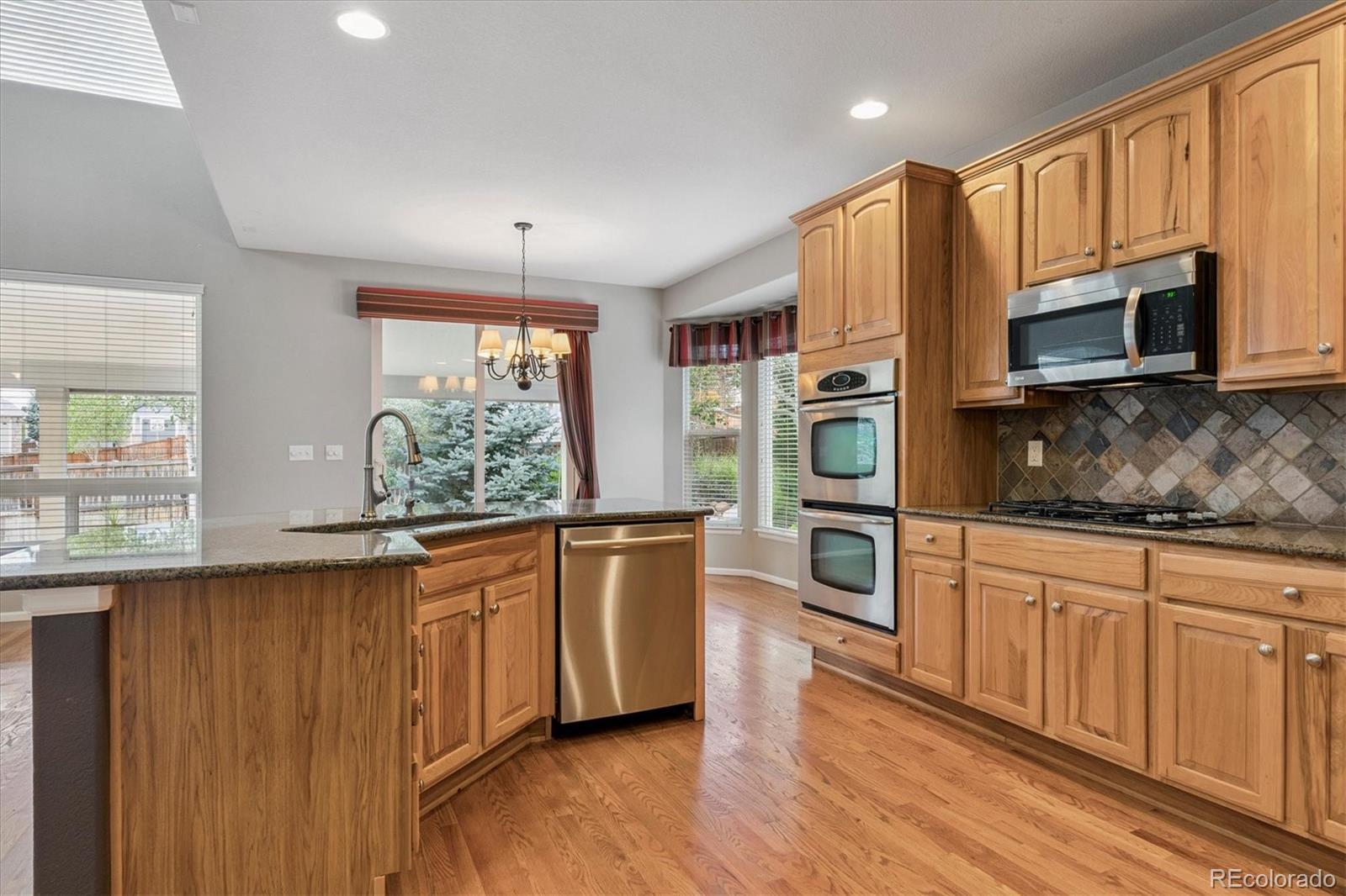 Opportunity knocks! Price reduced! Make this home truly yours and find yourself in a sought-after, peaceful, quiet location in Castle Rock, but just 25 minutes to the Denver Tech Center! From the moment you step inside, you’ll find an open and inviting layout designed for both everyday living and memorable entertaining. The main level features formal living and dining rooms, an open kitchen and family room, and a main floor study or bedroom with a full bath, ideal for guests or multi-generational living. The heart of the home is the gourmet kitchen, complete with double ovens, a gas cooktop, slab granite counters, stainless steel appliances, and an oversized island with an eat-up bar. A huge walk-in pantry provides exceptional storage, while high ceilings and hardwood floors add spaciousness and elegance. Upstairs, the expansive primary suite offers a spa-like retreat with a custom walk-in closet, dual vanities, and a large soaking tub with a separate shower. Separated by the bridge walkway, three additional bedrooms and a full bath complete the upper level, providing plenty of space for family or guests. Step outside to your private backyard oasis, featuring a large, covered patio with upgraded stamped concrete, lush landscaping, a garden area, and a peaceful water feature, perfect for enjoying Colorado evenings year-round. While inside, the 2-zone HVAC provides comfort on any level, in any season. The yard also includes unique touches that make this property truly stand out. With 5 bedrooms and 3 full baths, this home offers flexibility for today’s modern lifestyle. Located in a sought-after Sapphire Pointe, residents enjoy community amenities including a pool, playground, tennis courts, and trails. With easy access to major highways and just minutes from vibrant downtown Castle Rock for you'll find dining, shopping, and outdoor adventures. A must-see and a best value combining great spaces, style in a peaceful, quiet location!