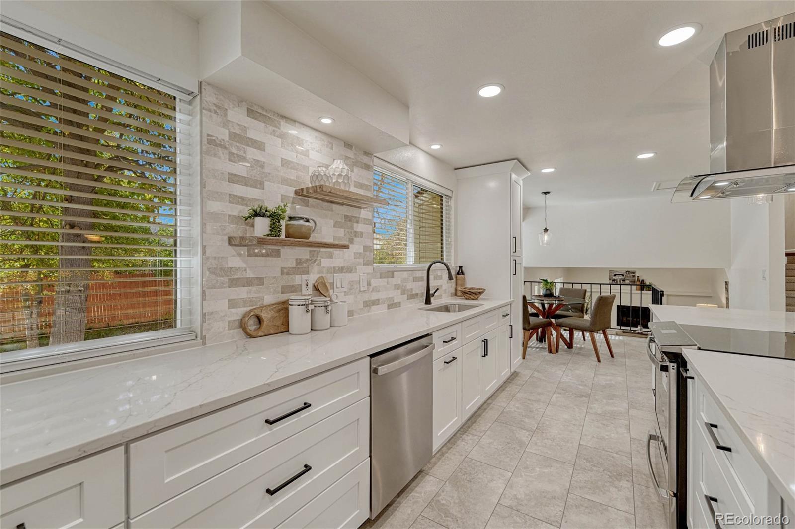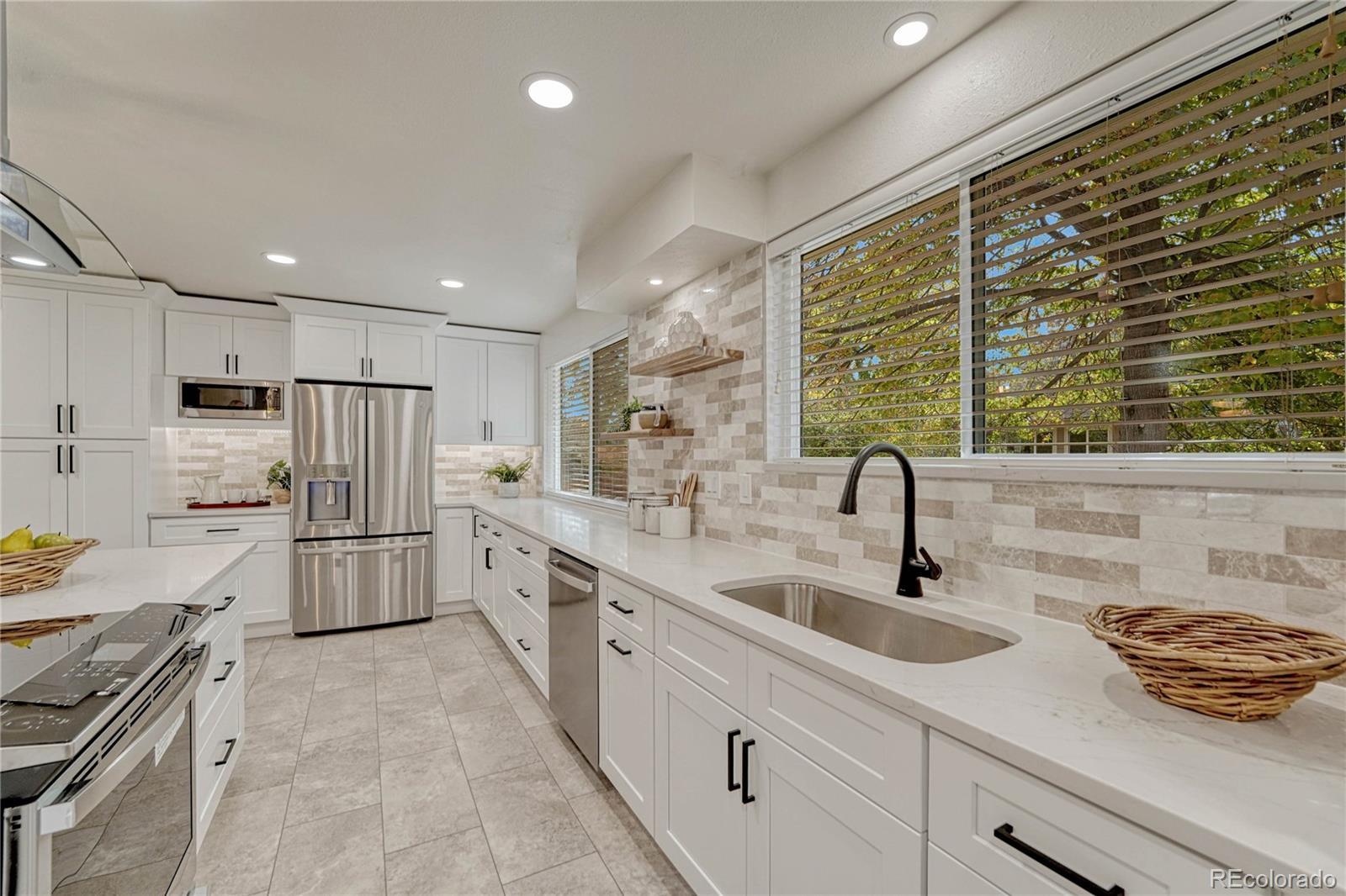 FULLY REMODELED and priced right!!! Beautifully remodeled home in a desirable Centennial location with no HOA. Perfect blend of a family home that is also great for entertaining! NEW kitchen with a HUGE Full Slab QUARTZ island and wet bar that will accommodate large gatherings as well as family dinners! High End GE Profile appliances. NEW roof, NEW gutters, NEW windows, NEW interior paint, NEW carpet and flooring, NEW bathrooms and vanities with custom tile, NEW High-End light fixtures, NEW concrete in driveway, front walkway, garage, and back patio. Finished daylight basement for media room or kids play area. Fully fenced backyard with mature landscaping, trees, and two storage sheds. Lots of love and noticeable detail has gone into the remodeling! The property is conveniently located with easy access to C470 for DTC or Downtown commute. Don't miss your chance to call The Highlands home with this truly one-of-a-kind property!