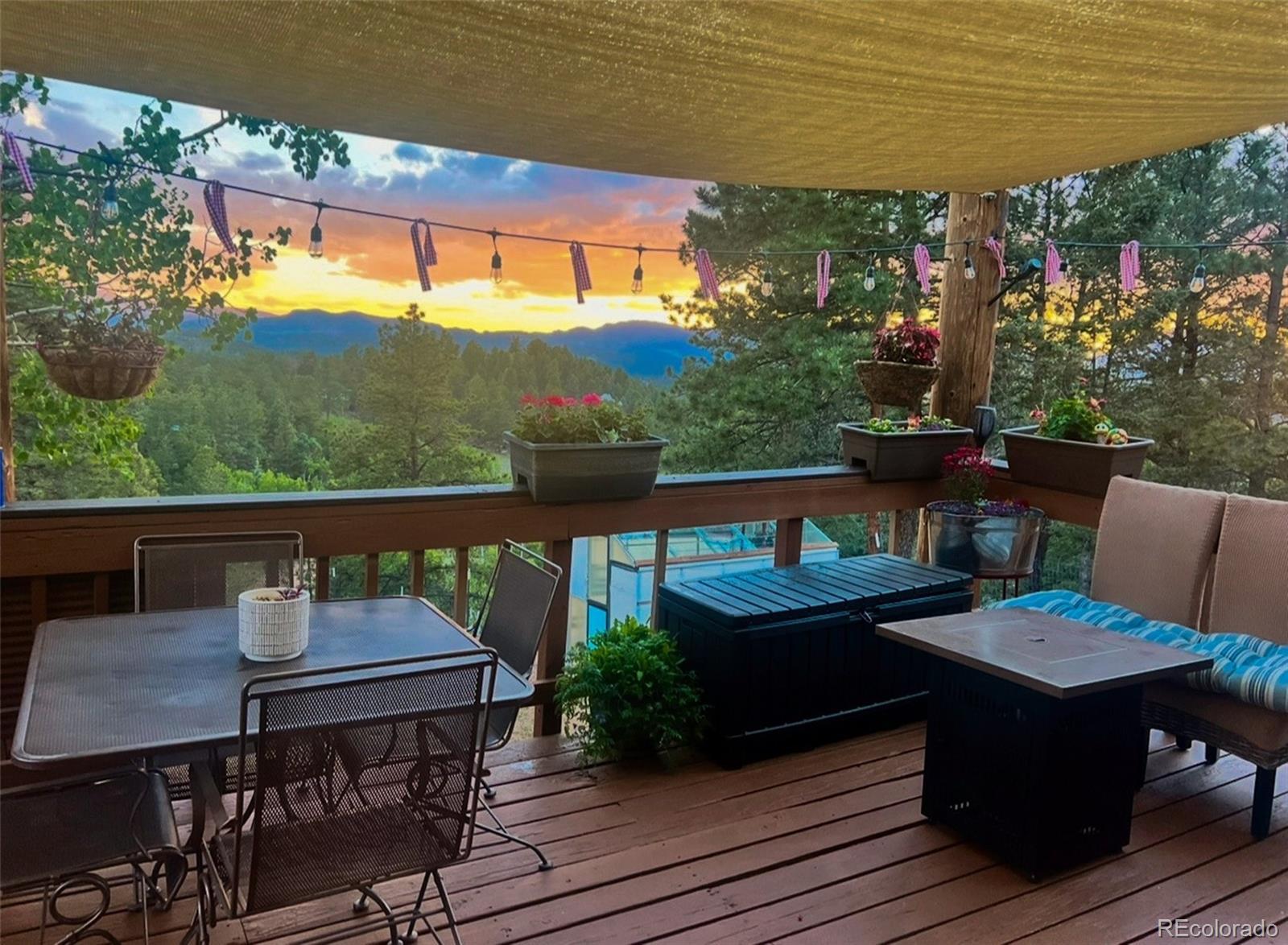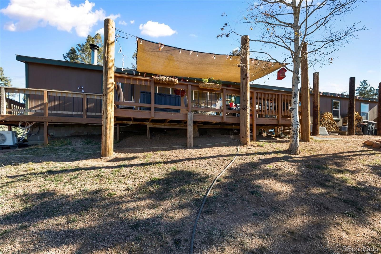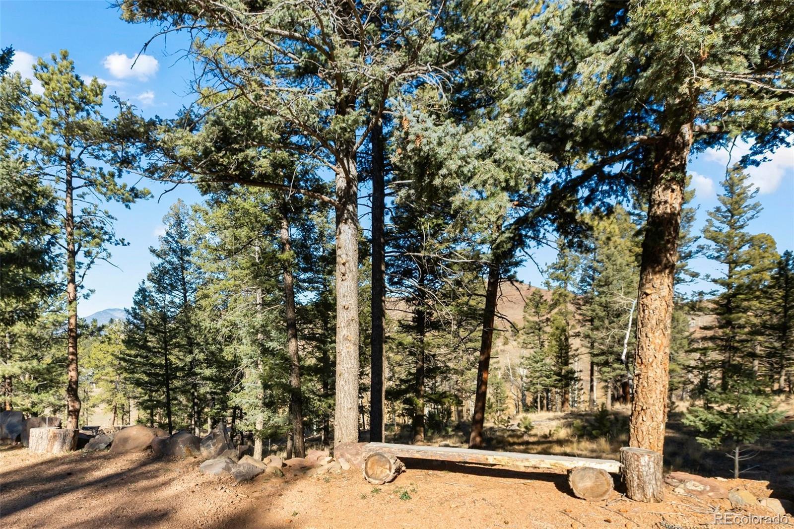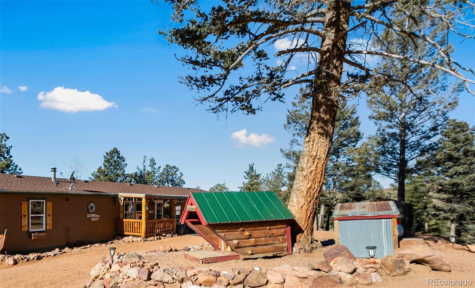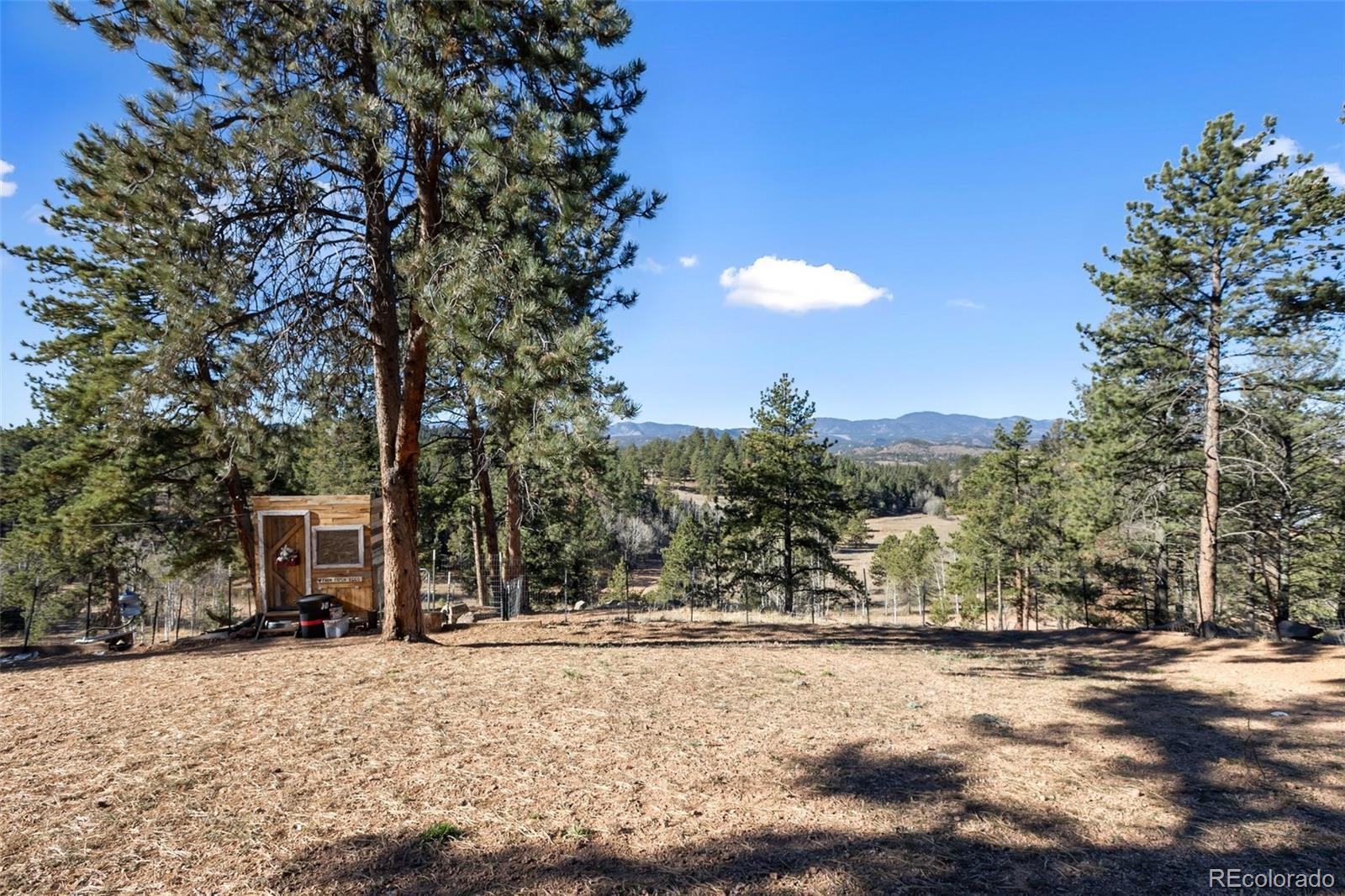 Serene mountain escape set-up with almost 5 acres, located just moments away from National Forest access trails for endless hiking, & recreating! Situated among the trees in a peaceful, tranquil setting and just 25 minutes from Woodland Park, 5 minutes from Highway 24, & only 1 hour to snow skiing, & just 10 minutes to trophy trout fishing in Eleven Mile Canyon! Spacious one level living w/ living area and family room areas, the home has been remodeled in 2020 w/ a "country charm", including a new free-standing wood-burning stove in the family room set in a masonry stacked rock hearth, w/ sheet metal backing; Beetle kill knotty pine tongue and groove; barn wood shiplap accent walls and doors; Mini split A/C and heater in family room; large owners suite adorned w/ electric wall fireplace, attached to 5pc bath w/ a freestanding soaking tub, and two walk-in closets; Kitchen includes stainless appliances, & Butcher block and granite countertops; dining area is surrounded by sheet metal chair rail; Re-roofed in 2018; new rustic redwood covered deck; new exterior paint; covered rear wraparound deck w/ awning & new deck spindles, overlooking views to the South and Western sunsets; Additional features include new electrical service to house; new 24' x 50' pole barn/shop w/ an attached studio apartment living quarters w/ shiplap walls, wood ceilings, and 3/4 bath; 2 heated chicken coops; livestock fenced area with electricity and water running to the pen; greenhouse; Lookout at "Pride Rock" w/ firepit, and electrical in place, in addition to a seating area; RV parking, and beautifully maintained and fire mitigated 5 acres, with a circular driveway; 2/3 of the yard is fenced on the perimeter; Septic was pumped Fall 2024. Voluntary HOA; This property is set-up as a small ranchette and ready for your livestock, pets, and the whole family! Comfortably set-up for a wonderful mountain escape! Adjacent vacant land parcel is also available for sale under MLS #3229859.