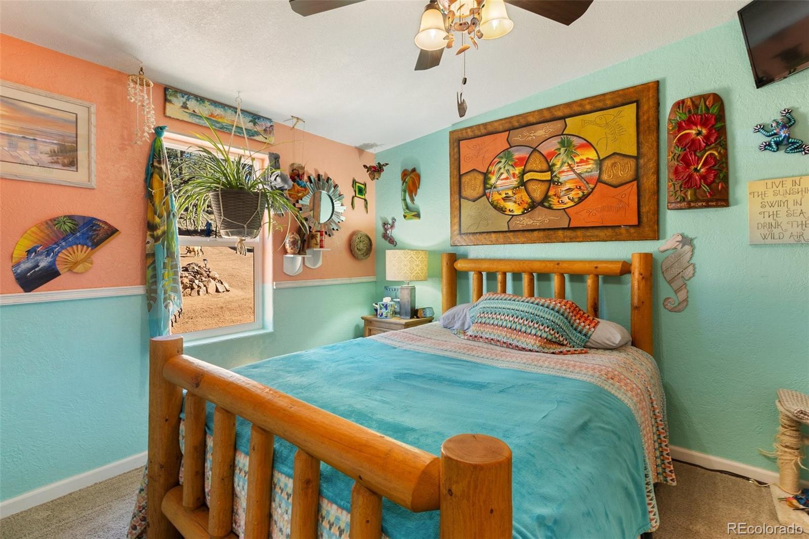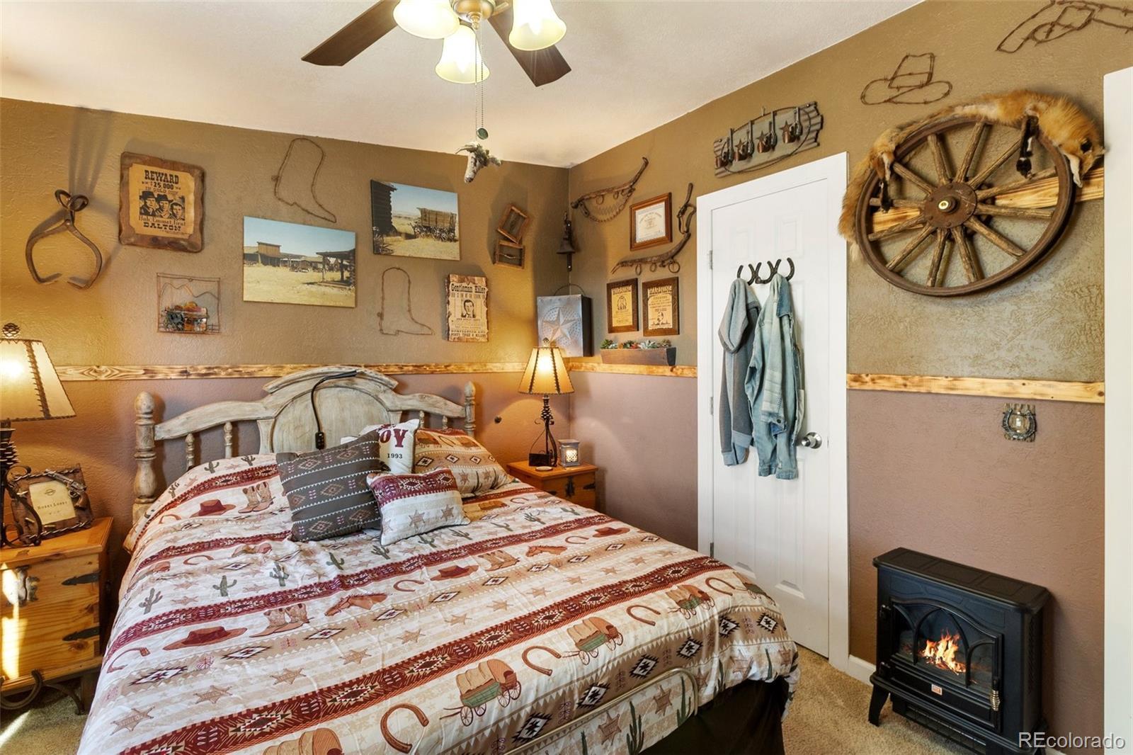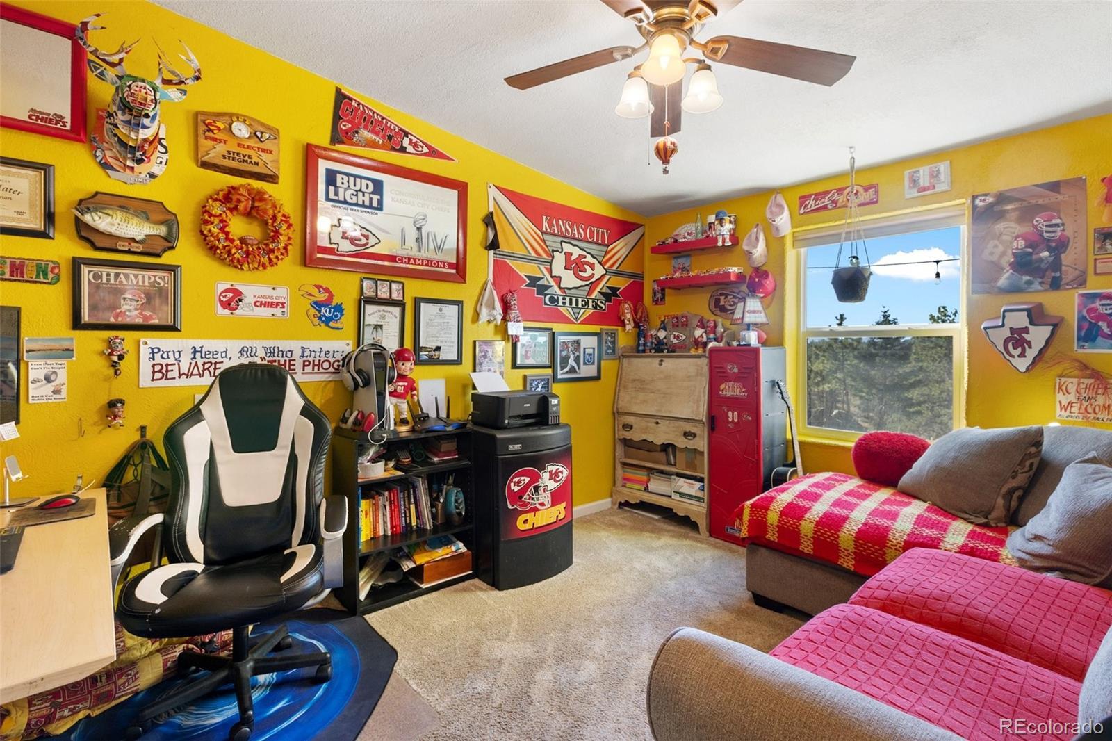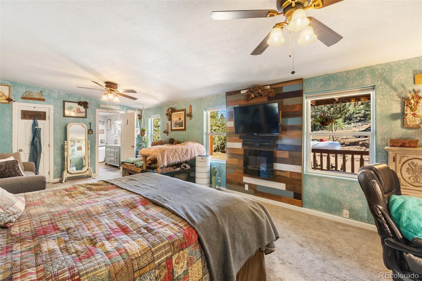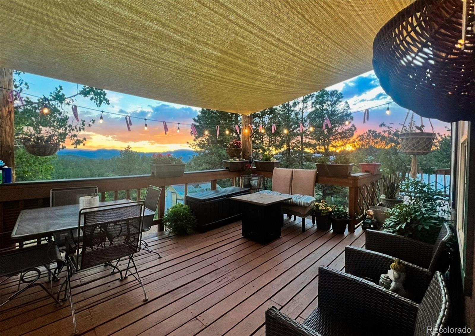 Serene mountain escape set-up with almost 5 acres, located just moments away from National Forest access trails for endless hiking, & recreating! Situated among the trees in a peaceful, tranquil setting and just 25 minutes from Woodland Park, 5 minutes from Highway 24, & only 1 hour to snow skiing, & just 10 minutes to trophy trout fishing in Eleven Mile Canyon! Spacious one level living w/ living area and family room areas, the home has been remodeled in 2020 w/ a "country charm", including a new free-standing wood-burning stove in the family room set in a masonry stacked rock hearth, w/ sheet metal backing; Beetle kill knotty pine tongue and groove; barn wood shiplap accent walls and doors; Mini split A/C and heater in family room; large owners suite adorned w/ electric wall fireplace, attached to 5pc bath w/ a freestanding soaking tub, and two walk-in closets; Kitchen includes stainless appliances, & Butcher block and granite countertops; dining area is surrounded by sheet metal chair rail; Re-roofed in 2018; new rustic redwood covered deck; new exterior paint; covered rear wraparound deck w/ awning & new deck spindles, overlooking views to the South and Western sunsets; Additional features include new electrical service to house; new 24' x 50' pole barn/shop w/ an attached studio apartment living quarters w/ shiplap walls, wood ceilings, and 3/4 bath; 2 heated chicken coops; livestock fenced area with electricity and water running to the pen; greenhouse; Lookout at "Pride Rock" w/ firepit, and electrical in place, in addition to a seating area; RV parking, and beautifully maintained and fire mitigated 5 acres, with a circular driveway; 2/3 of the yard is fenced on the perimeter; Septic was pumped Fall 2024. Voluntary HOA; This property is set-up as a small ranchette and ready for your livestock, pets, and the whole family! Comfortably set-up for a wonderful mountain escape! Adjacent vacant land parcel is also available for sale under MLS #3229859.