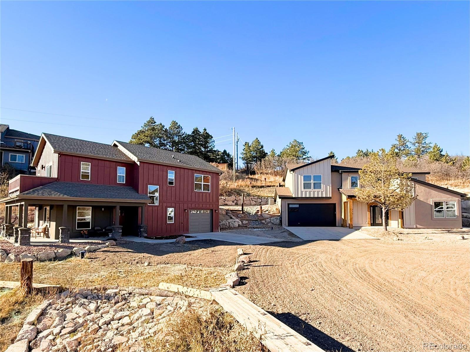 AN AMAZING PRICE FOR NEW CONSTRUCTION IN PALMER LAKE! This NEW home has all of the Premium Upgrades included from stylish finishes to the 0.19 corner cul-de-sac lot with Front Range views. The kitchen is outfitted with hardwood cabinetry, granite countertops, and ALL appliances. You don't have to pay extra for stylish finishes such as LVP flooring, wider baseboards, matte black hardware and lighting, tiled showers, ceiling fans and custom closets - its all included! The main level features an open concept kitchen & living room, powder room, and an oversized (26'x13') & finished one-car garage. The covered front porch wraps around from the front door to the dining room, offering plenty of outdoor living & entertaining space. Adding to the privacy of this almost quarter-acre corner lot is the dedicated drainage easement to the south side of the lot. The upper level hosts all three bedrooms including a primary suite with attached bathroom, walk-in closet, and private balcony with beautiful Front Range views. The laundry room is also conveniently located on the upper level. A full bathroom with door separating the sink/vanity and two secondary bedrooms round out the upper level. One of the secondary bedrooms has its own private door to the backyard, providing a peaceful place to spend time in nature without having to leave your home. This brand new home includes a stone retaining wall to the back and grass starting in the front/side yards, providing some landscaping and added curb appeal. The board & batten exterior with stucco & stone accents provide wonderful and timeless curb appeal. Elephant Rock Acres is an area of both new and existing homes, carefully crafted and developed by the Tri-Lakes local, family owned & operated builder, Ehrhardt Construction. No HOA, metro district, or covenants! This is one of the last lots in this wonderful little neighborhood, don't miss your chance to make Elephant Rock Acres your home! QUICK CLOSE/POSSESSION POSSIBLE!