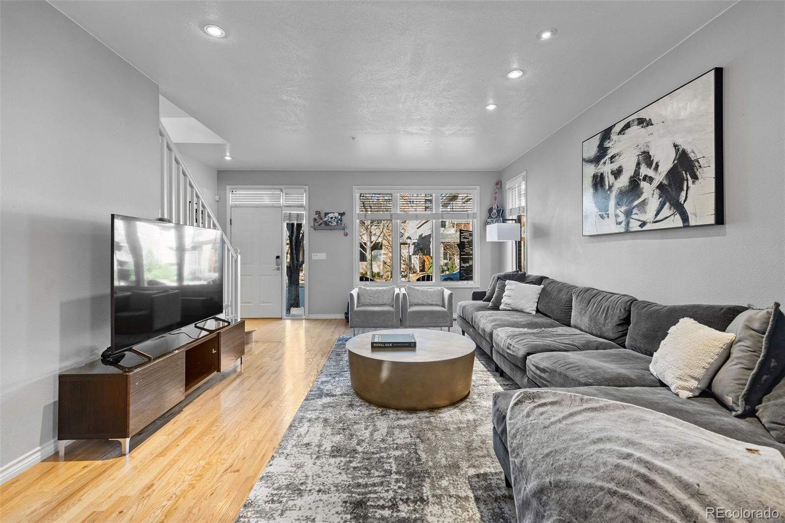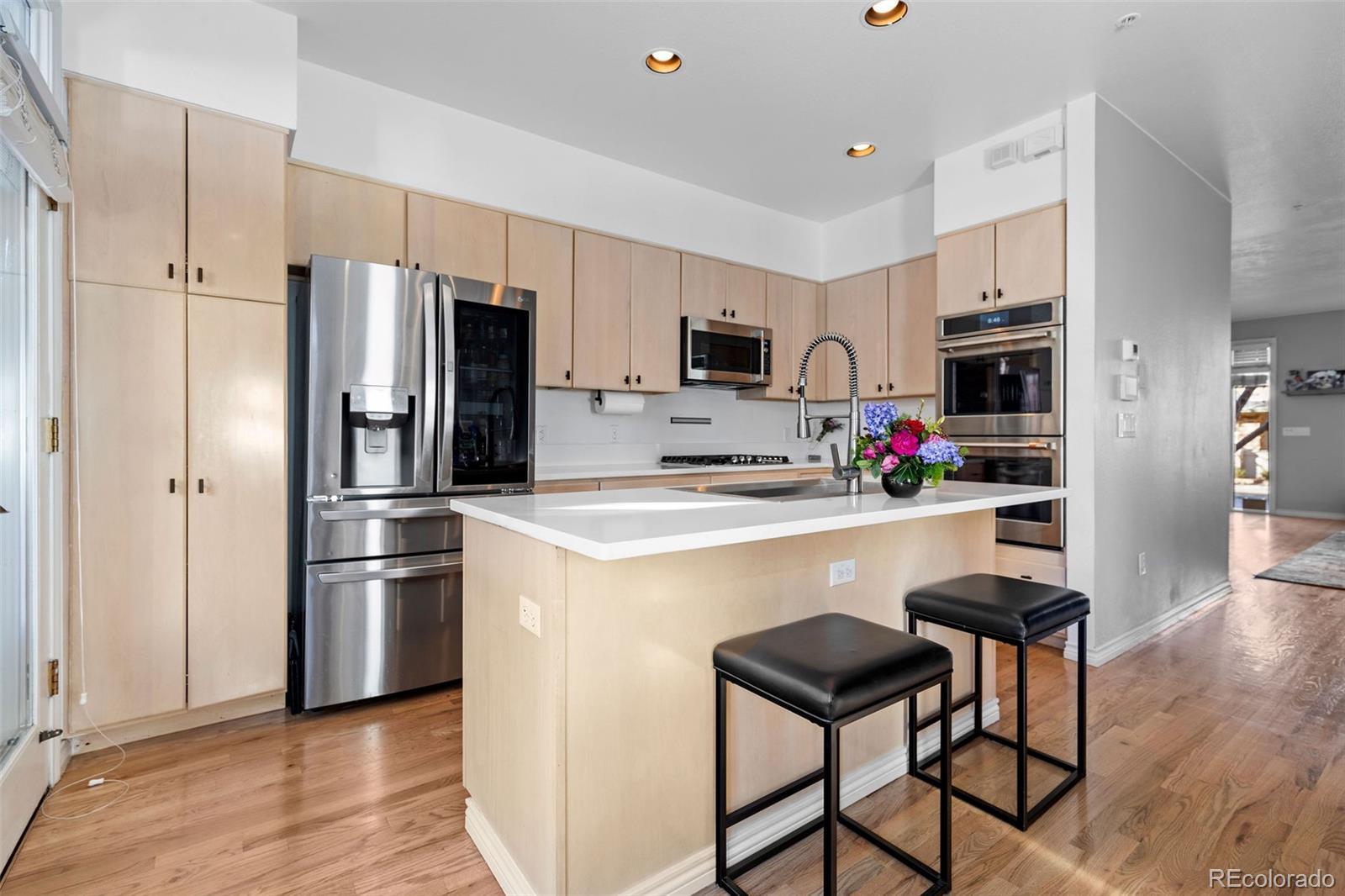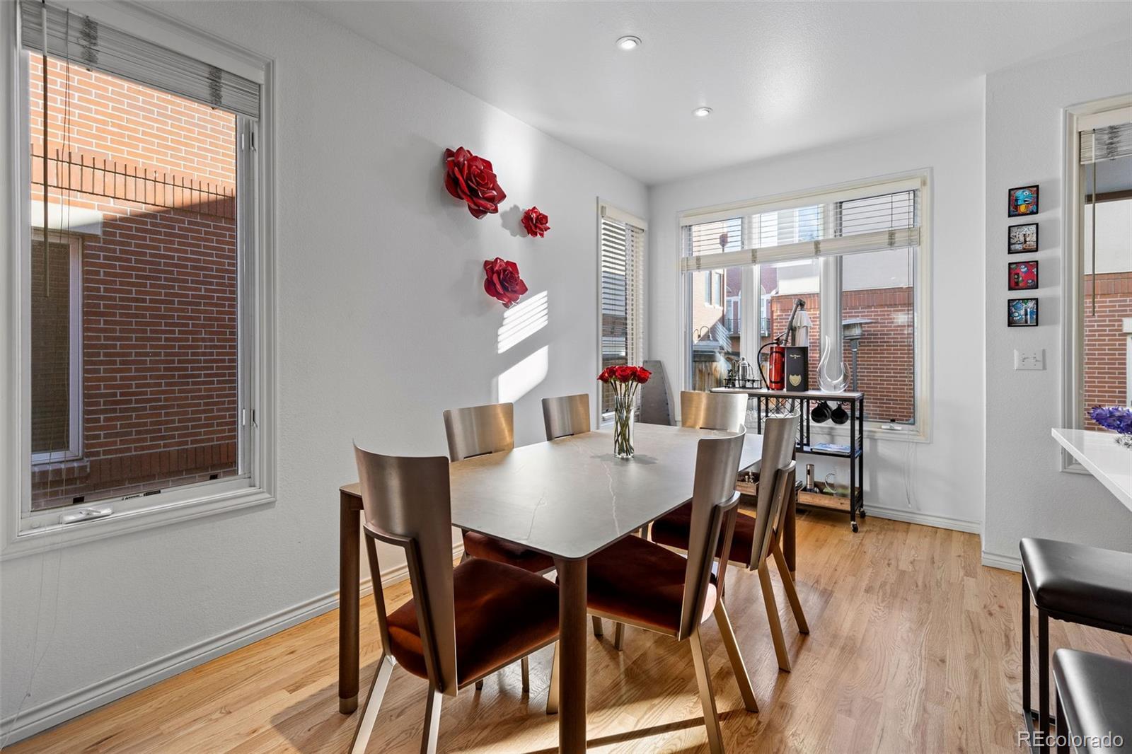 Set in the heart of Cherry Creek, this coveted end-unit brownstone offers a thoughtfully designed layout, quality finishes, and direct access to a private two-car garage, all within walking distance to neighborhood shops and restaurants. The main level is open and functional, with hardwood floors and a double-sided fireplace connecting the living room and kitchen. The kitchen is updated with quartz countertops, a center island, and new stainless-steel appliances. Just outside, a private flagstone patio with landscape lighting creates an easy outdoor extension of the living space. The second level includes a secondary bedroom and a three-quarter bath with a glass-enclosed shower, along with a spacious primary suite featuring its own balcony and a well-appointed bath with marble finishes and a soaking tub. The third floor loft provides flexible space for a home office, media room, gym, or additional lounge. East- and west-facing decks offer open city views and great natural light throughout the day. The finished basement adds even more versatility with a second living area, a full bath, and a conforming bedroom, ideal for guests or extended stays. The HOA handles exterior and grounds maintenance, water, trash and recycling, snow removal, and front landscaping, making for low-maintenance living in one of Denver’s most sought-after neighborhoods. In a prime location, you can walk to the world-renowned Cherry Creek shopping center, multiple parks, Gates Tennis Courts and award-winning restaurants, this home is ready for its next owner!