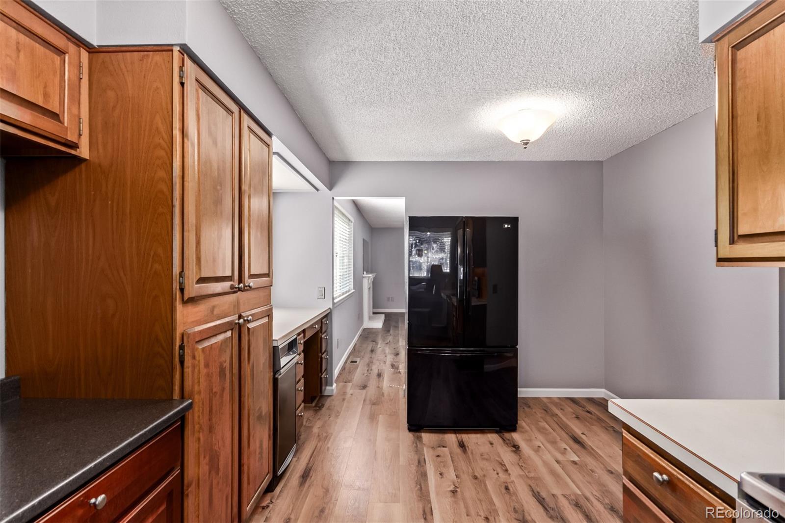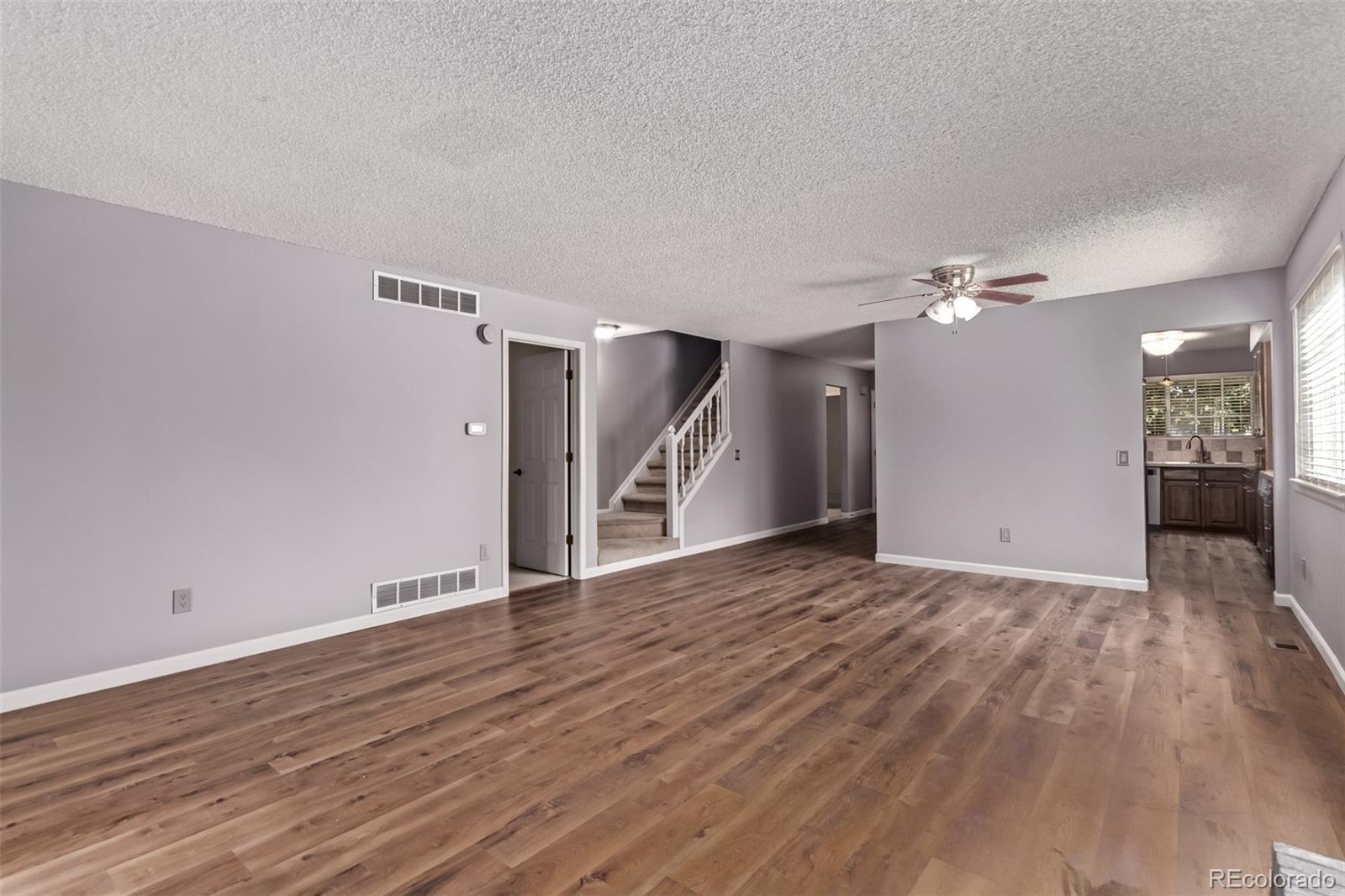 Welcome to The Settlement in Ken Caryl—where space and community come together. This 4 bedroom, 4 bathroom home features the largest floor plan in the complex and is ideally situated to enjoy all the amenities Ken Caryl has to offer, including open space, scenic hiking trails, pools, tennis courts, a fitness center, and more. Step inside from the covered front porch to find brand-new flooring throughout the main level’s living spaces. The expansive layout includes a large family room with a cozy wood-burning fireplace, a dining area, a dedicated office, and a rare grandfathered-in sunroom filled with natural light. The main level also features a full bathroom and a spacious primary suite with two closets and a private bathroom. Upstairs offers two additional bedrooms with vaulted ceilings and skylights, and a recently remodeled full bathroom. The walk-out basement adds even more living space with a recreation room, a wet bar, a bedroom or additional office, a ¾ bathroom, a workshop, a laundry room, and abundant storage. A two-car garage completes this exceptional home in one of the area's most sought-after neighborhoods. Step outside to the backyard in the private and fully fenced backyard.