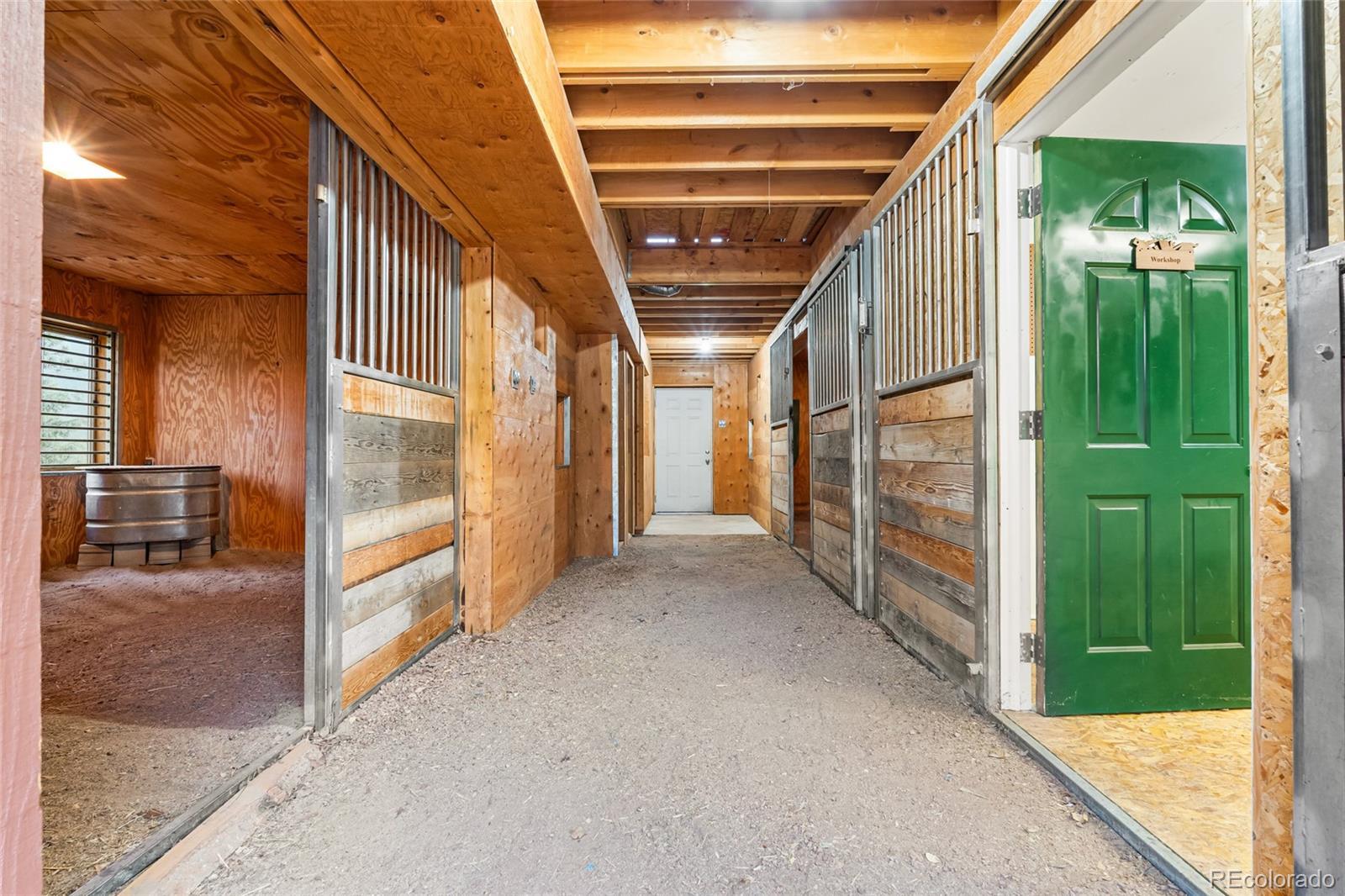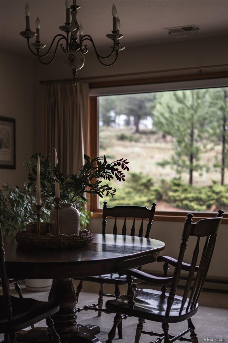 A horse lover's dream in the coveted Woodside Park neighborhood, this rare five-bedroom ranch captures the essence of mountain living with timeless craftsmanship and thoughtful care. This home was overbuilt to stand the test of time and has been meticulously maintained by its second owners. From the Italian tile, detailed moldings, mahogany-trimmed doorways to the rock accent walls and generous layout, every feature speaks to quality and pride of ownership. The main level offers a large welcoming entry, beautifully updated bathrooms, a kitchen with handsome updated counters, backsplash, flooring, and a large bay window that makes way for the view and expansive living areas designed for gathering. The master bedroom includes a sitting area with a gas fireplace. The garden level basement includes additional large bedrooms, bathroom, and a living space with a tiled bar. Step outside to three level private acres with open mountain views off the deck, a hot tub and fire pit on a flagstone patio and a volleyball court, which all make unwinding easy in every season. For equestrian enthusiasts, the property delivers the lifestyle so many seek. A two-story barn includes two horse stalls, workshop, and a tack room with an upstairs framed for a future studio apartment and hay storage. Outside the loafing shed and lunge ring provide room to train and care for horses at home. The cherry on top is decreed water rights through the Woodside Augmentation Plan. The neighborhood itself is a quiet sanctuary inhabited by abundant wildlife with a fishing pond to enjoy and an equestrian haven offering residents miles of private trails and a riding arena. Rarely does a ranch-style home of this size and caliber become available in Woodside Park, a community where residents enjoy mountain serenity coupled with the convenience of being just 5 minutes from Highway 285.