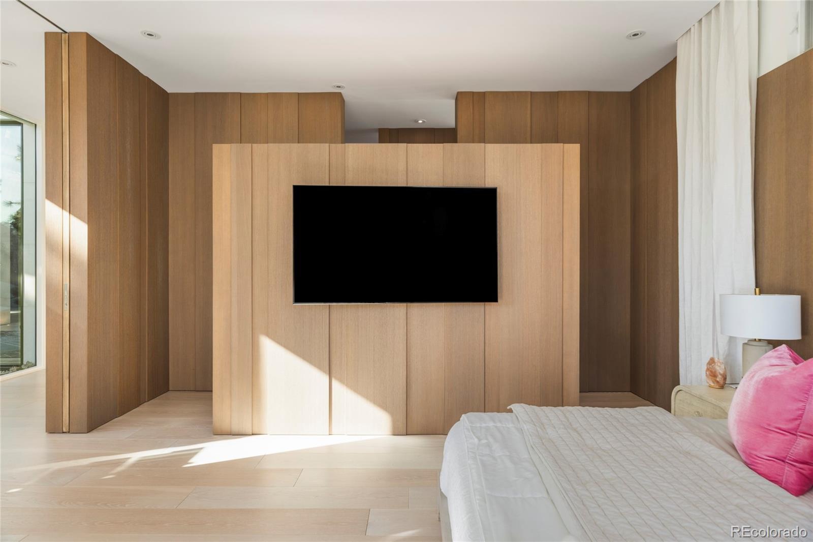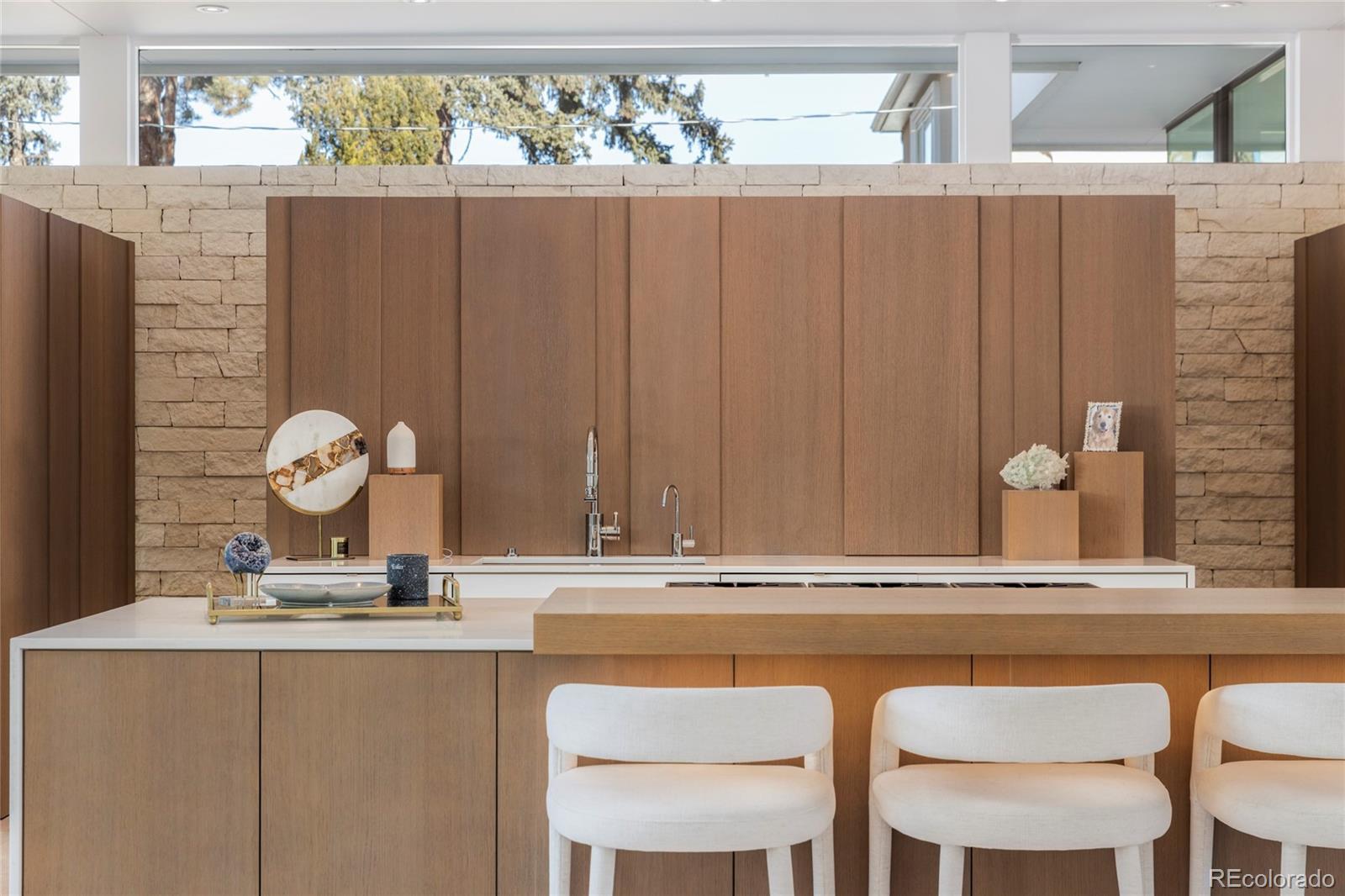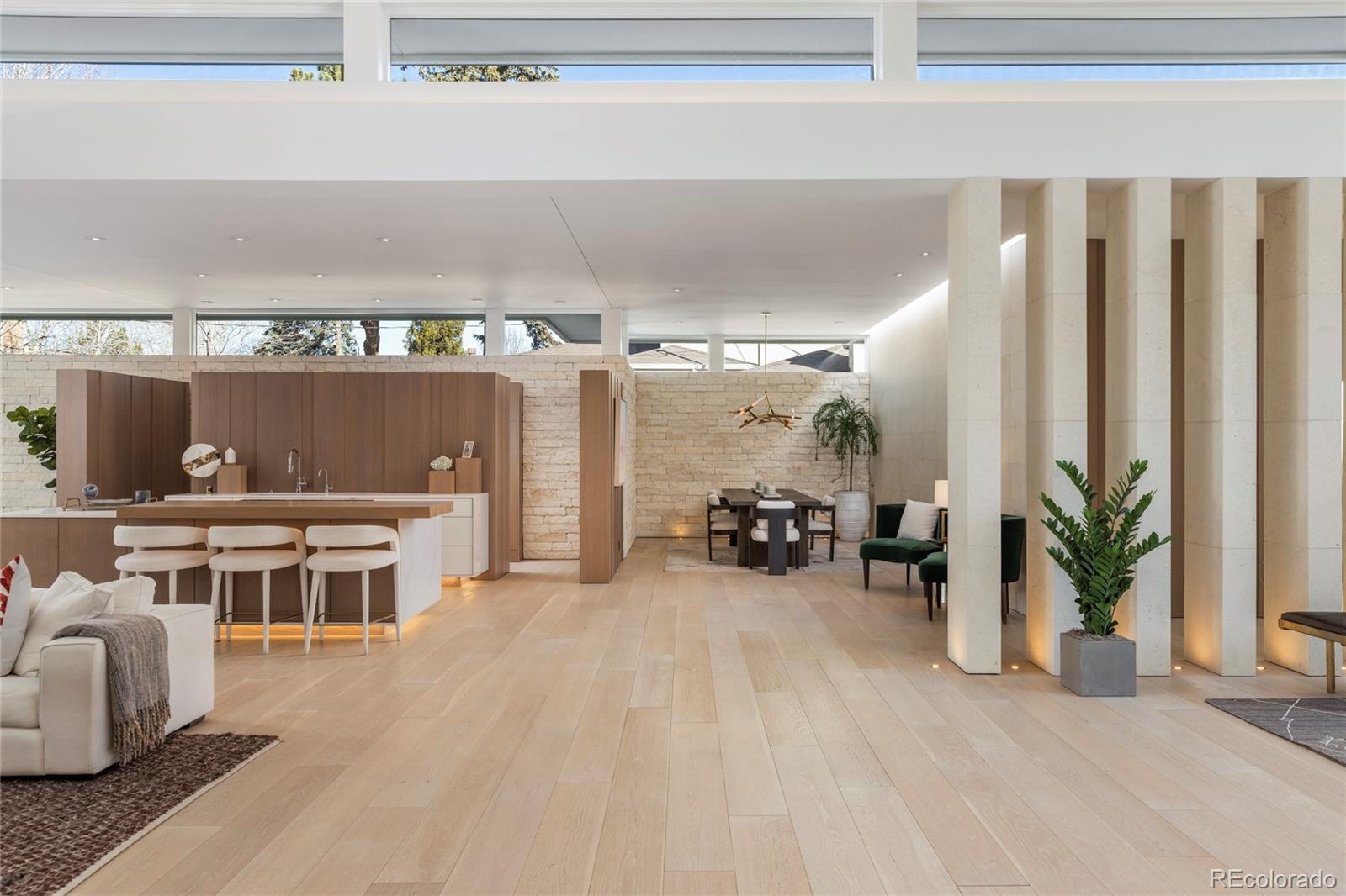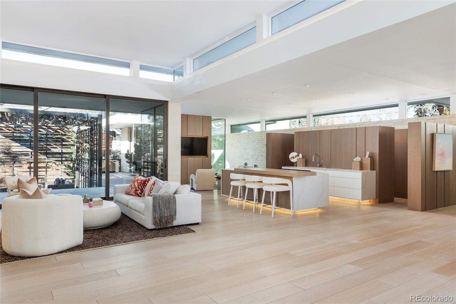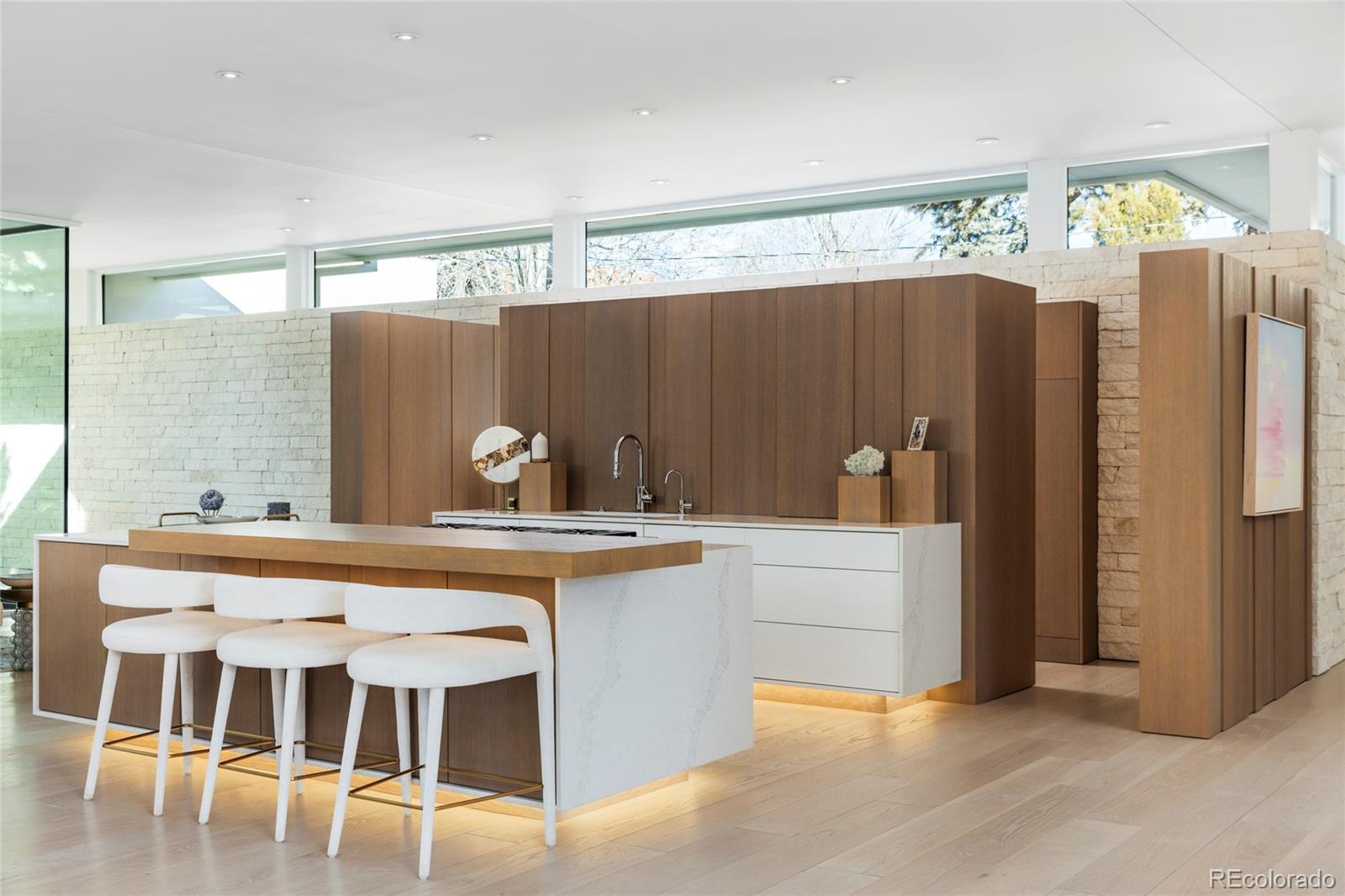 Step into this jaw-dropping modern ranch style home that redefines effortless luxury. Upon opening the 10' glass pivot door, you experience pure sophistication and luxury finishes throughout. The open floor plan creates a seamless flow between living room, dining room, and kitchen all surrounded by a wall of windows that flows into the backyard creating fabulous indoor/outdoor living. The interior is blasted with natural light, clean architectural lines and a thoughtfully restrained palette allowing the beauty of organic materials—warm wood, natural stone, and subtle textures—to take center stage. Spoil yourself in the elegant main floor primary suite with the spa inspired bathroom. You will also find the other 2-bedroom suites on the main floor. Head to the lower level that transforms leisure into an art form, with custom bookshelves, a refined lounge area, custom stunning bar, wine room, fitness studio and 2 secluded guest suites that offers ultimate in comfort. This home is so special - you just have to see all that it has to offer!! The uncomplicated design: refined, organic, and effortlessly gorgeous—a home created for those who appreciate beauty that feels as good as it looks.