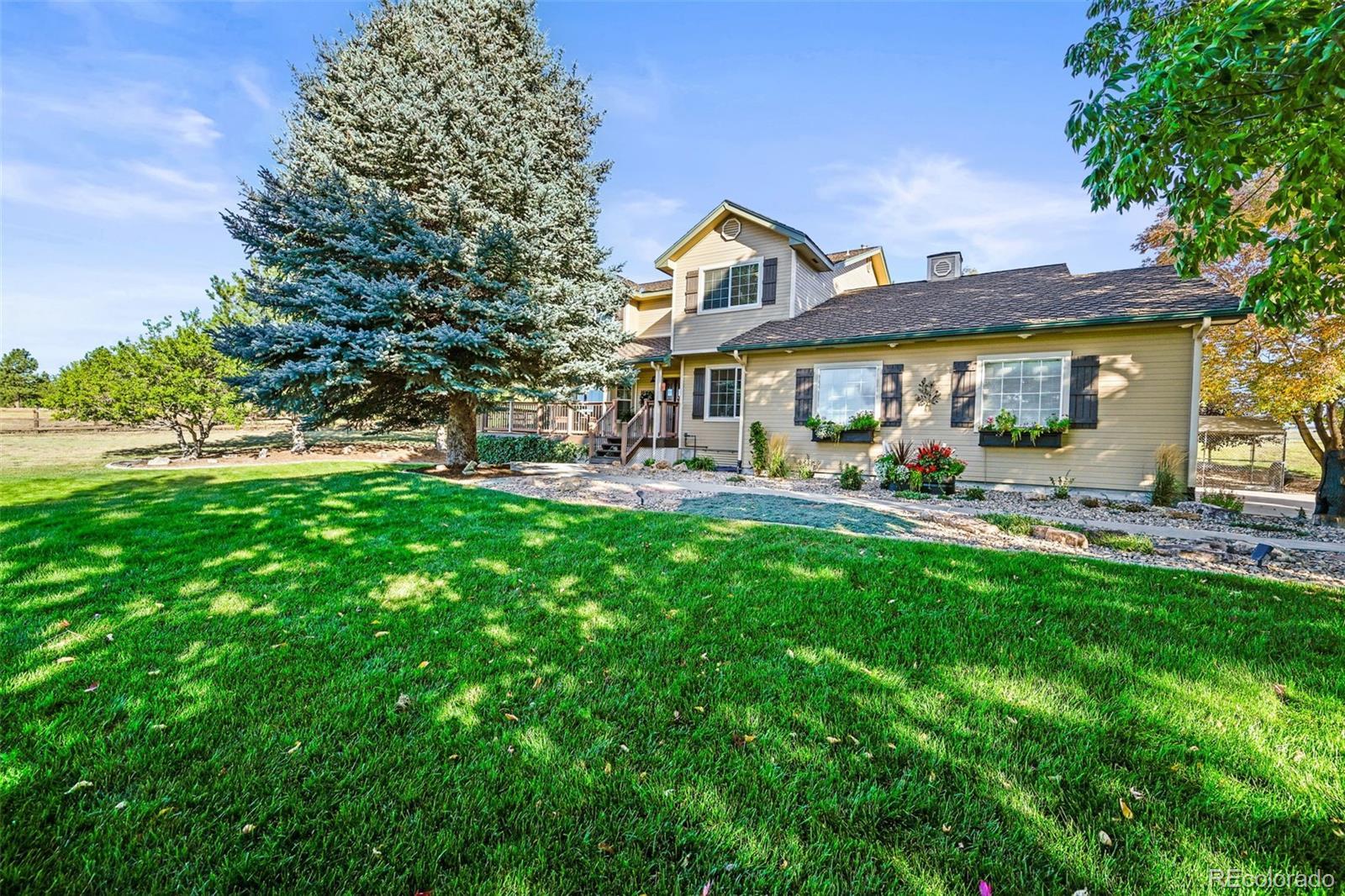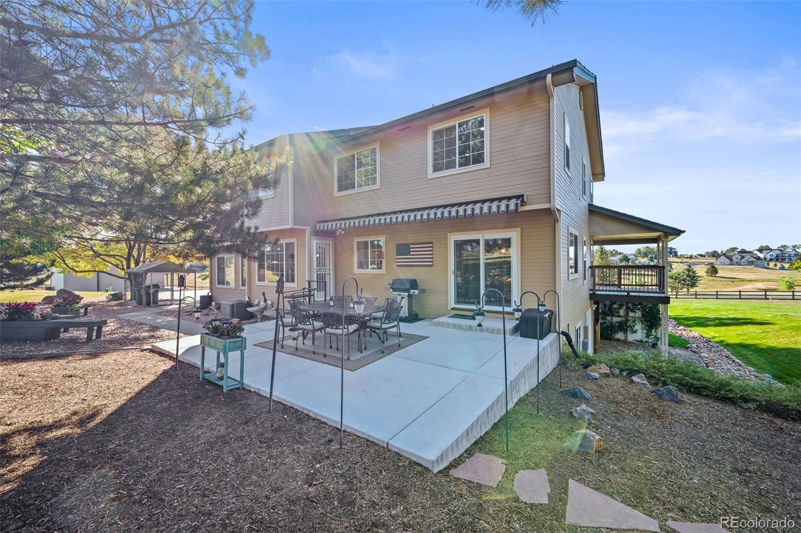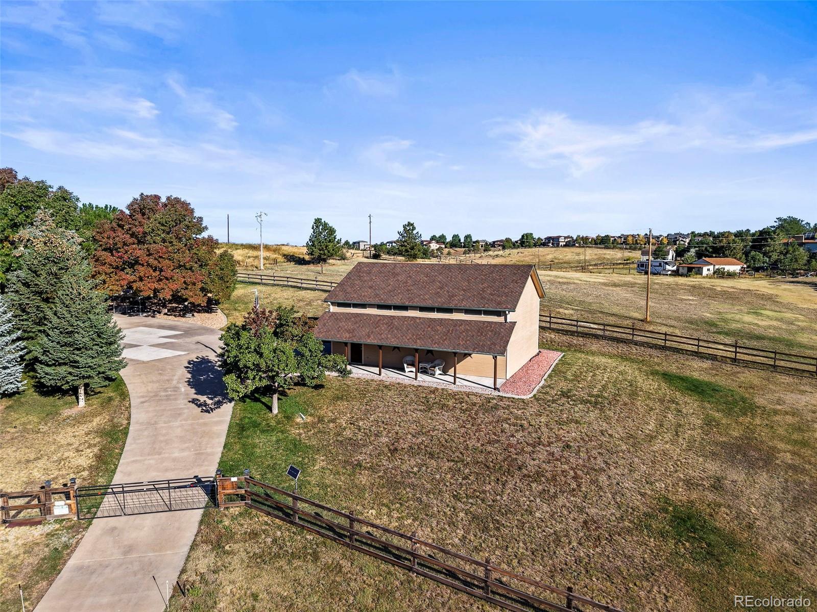 Absolutely gorgeous, updated home on 1.88 acres w/ 3 car attached garage PLUS 1200 sq ft outbuilding (w/ concrete, 220v electricity & oversized 14"x12" overhead door). This is one of the special homes that is meticulously maintained inside & out...things are just done right! Outdoor living around every corner including wrap around front deck, 24"x18" concrete patio w/ retractable awning in the backyard & 40"x8" covered concrete patio off of the outbuilding. Fully fenced & gated 1.88 gently rolling acres w/ mature landscaping & 25"x11" fenced garden area! Horses allowed! When you are done playing outside...step inside the fantastic, custom built, 2-story home offering over 3200 "finished" sq ft including 4 beds (w/ optional 5th) PLUS main floor study! The recently remodeled gourmet kitchen features beautiful new 42" custom Medallion cabinetry including pull-out drawers & rollout shelves, slab soap stone countertops, center island w/ butcher block counter finished in Expresso w/ accent cabinet color & overhanging pot rack. Kitchen is rounded out w/ Kitchenaid double oven, farmhouse sink & coffee bar w/ wine storage! Nearly the entire main floor offers inviting hardwood flooring & don't over-look the convenience of main floor laundry! The vaulted family room w/ gas log fireplace offers the perfect place to kick up one's feet, relax, & take in the big game! Upstairs features a generously sized primary bedroom w/ walk-in closet & remodeled 5-piece bathroom w/ soaking tub, shower with floor to ceiling tile, double sinks topped w/ granite & new cabinetry...stunning! 3 generously sized secondary bedrooms & 2 adding baths round out the 2nd floor! The finished walk-out basement offers flexibility in use w/ large great room, 3/4 bath & plenty of storage! Dog run! Cherry Creek Schools, quick E-470 HWY access & 15 min commute to Denver Tech Center, Inverness Business Park & Meridian Business Park. This home is just SPECIAL in so many ways....better hurry, or it'll be gone!