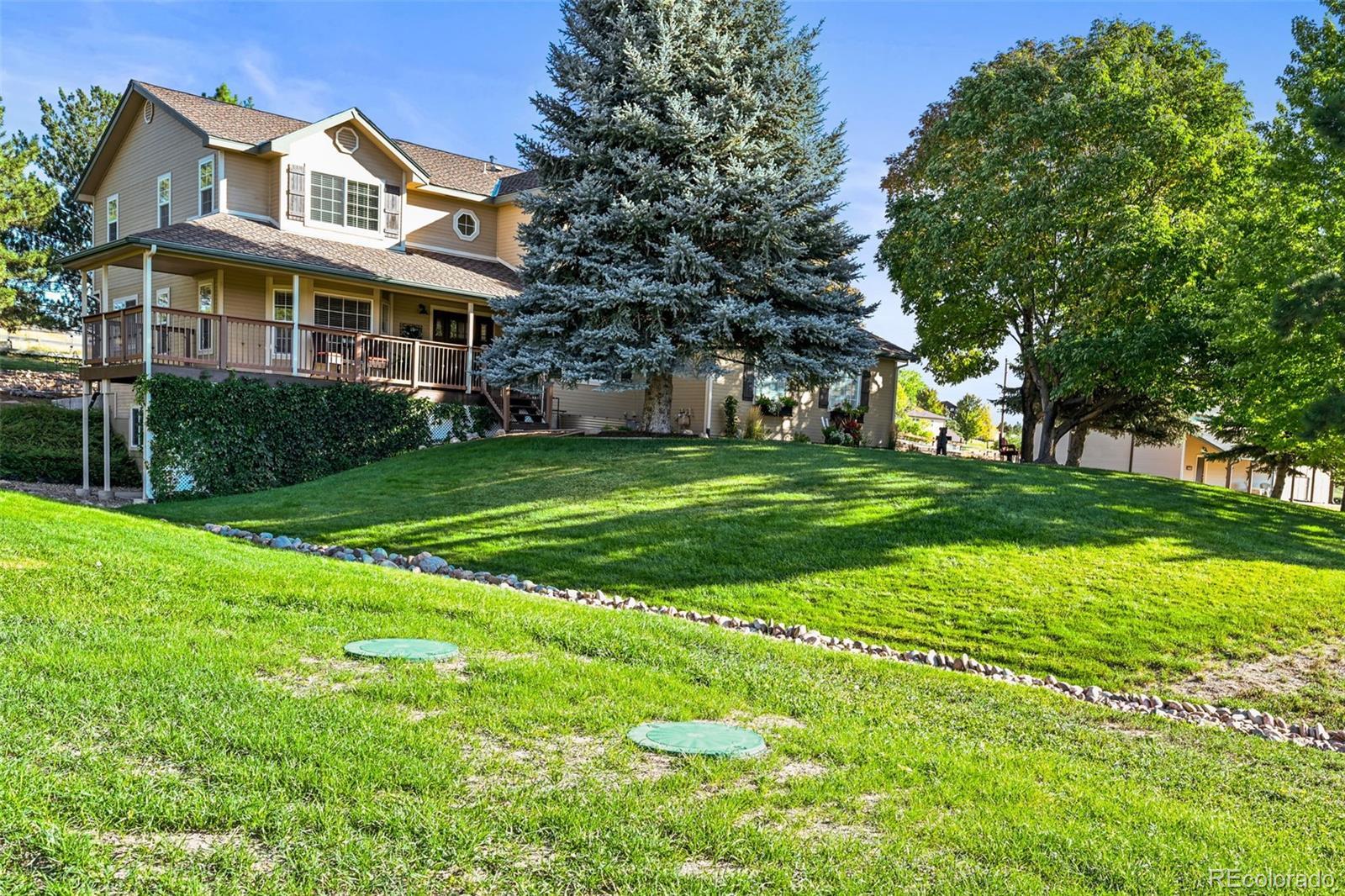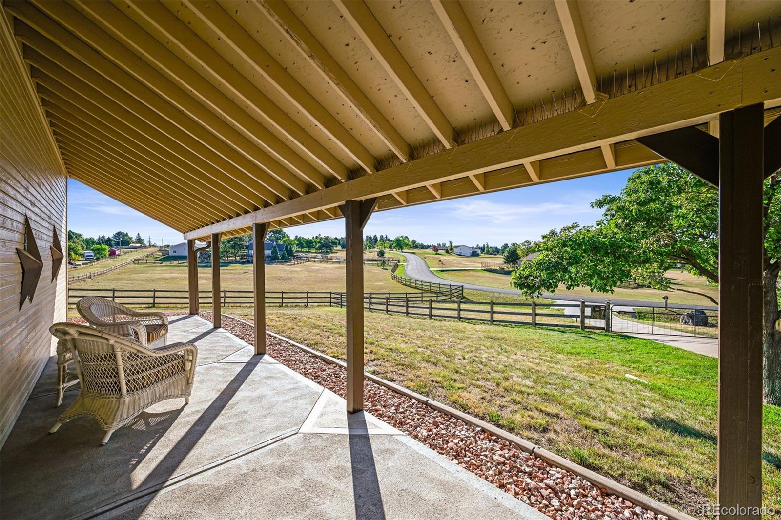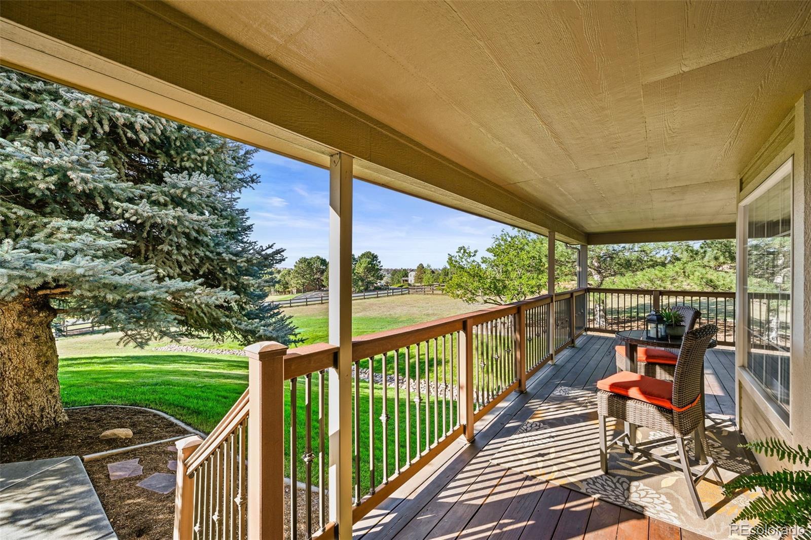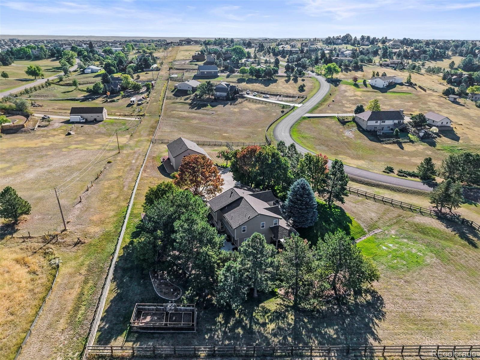 Absolutely gorgeous, updated home on 1.88 acres w/ 3 car attached garage PLUS 1200 sq ft outbuilding (w/ concrete, 220v electricity & oversized 14"x12" overhead door). This is one of the special homes that is meticulously maintained inside & out...things are just done right! Outdoor living around every corner including wrap around front deck, 24"x18" concrete patio w/ retractable awning in the backyard & 40"x8" covered concrete patio off of the outbuilding. Fully fenced & gated 1.88 gently rolling acres w/ mature landscaping & 25"x11" fenced garden area! Horses allowed! When you are done playing outside...step inside the fantastic, custom built, 2-story home offering over 3200 "finished" sq ft including 4 beds (w/ optional 5th) PLUS main floor study! The recently remodeled gourmet kitchen features beautiful new 42" custom Medallion cabinetry including pull-out drawers & rollout shelves, slab soap stone countertops, center island w/ butcher block counter finished in Expresso w/ accent cabinet color & overhanging pot rack. Kitchen is rounded out w/ Kitchenaid double oven, farmhouse sink & coffee bar w/ wine storage! Nearly the entire main floor offers inviting hardwood flooring & don't over-look the convenience of main floor laundry! The vaulted family room w/ gas log fireplace offers the perfect place to kick up one's feet, relax, & take in the big game! Upstairs features a generously sized primary bedroom w/ walk-in closet & remodeled 5-piece bathroom w/ soaking tub, shower with floor to ceiling tile, double sinks topped w/ granite & new cabinetry...stunning! 3 generously sized secondary bedrooms & 2 adding baths round out the 2nd floor! The finished walk-out basement offers flexibility in use w/ large great room, 3/4 bath & plenty of storage! Dog run! Cherry Creek Schools, quick E-470 HWY access & 15 min commute to Denver Tech Center, Inverness Business Park & Meridian Business Park. This home is just SPECIAL in so many ways....better hurry, or it'll be gone!